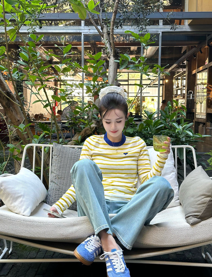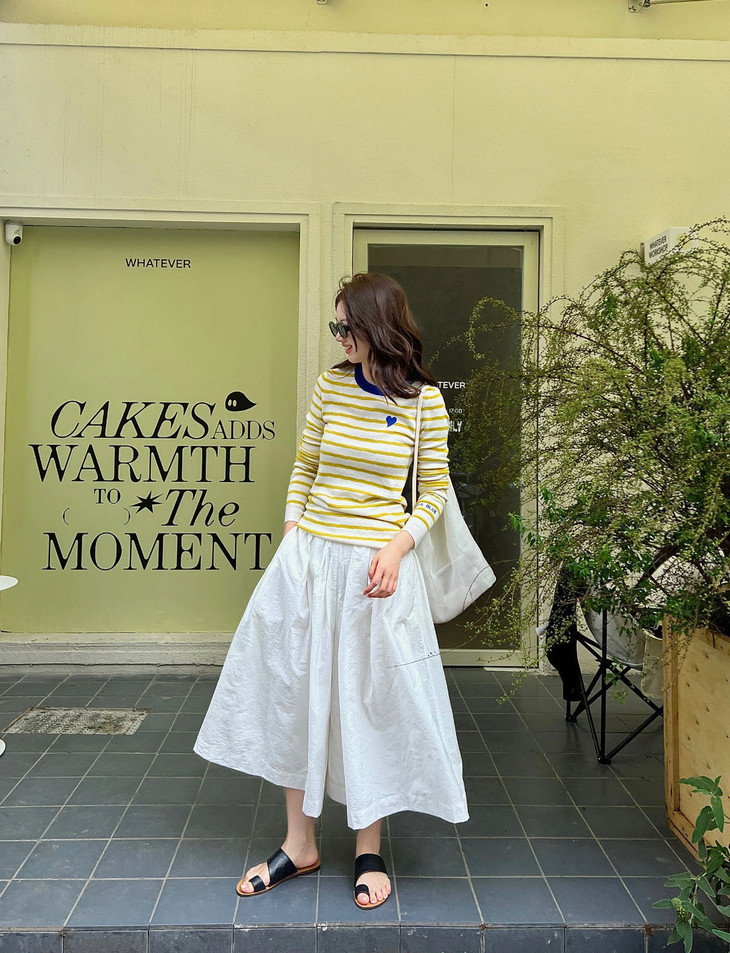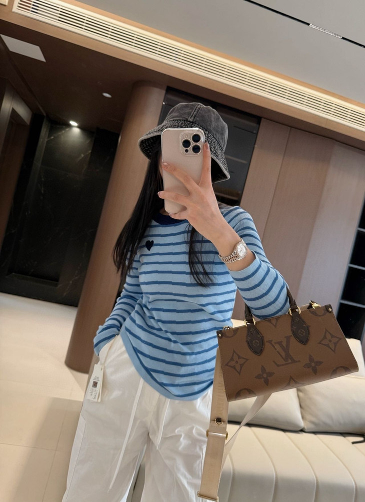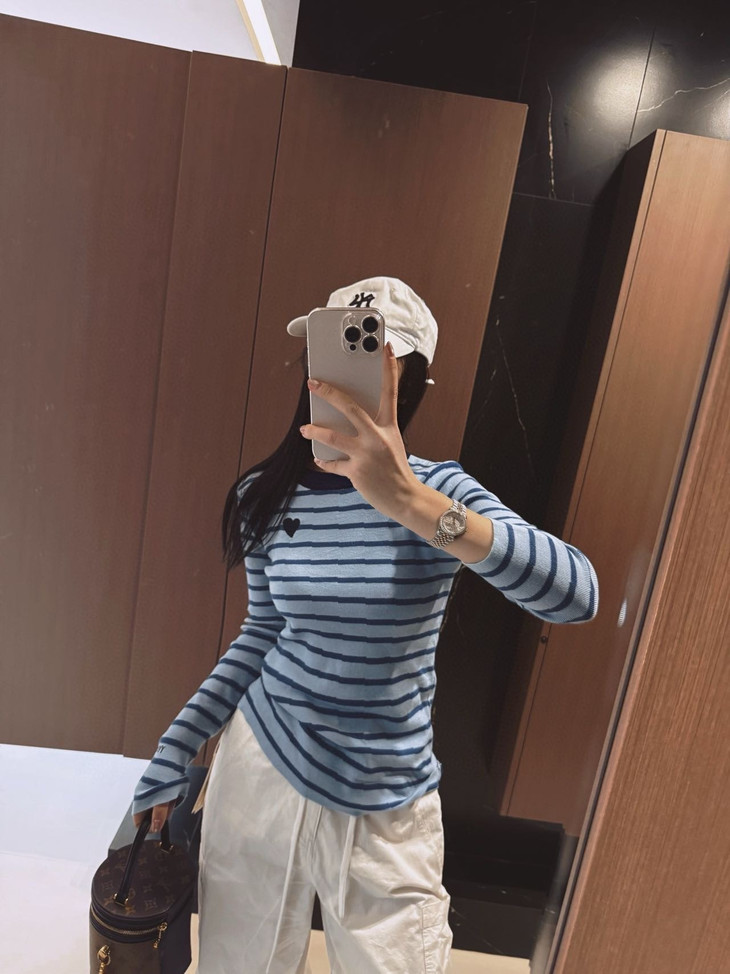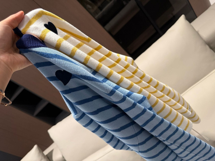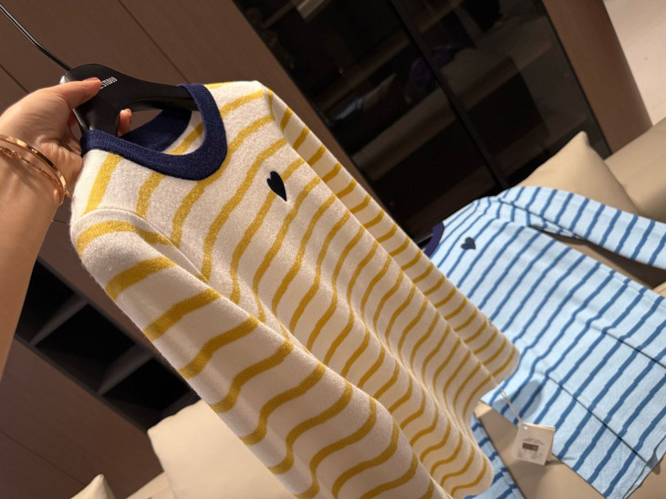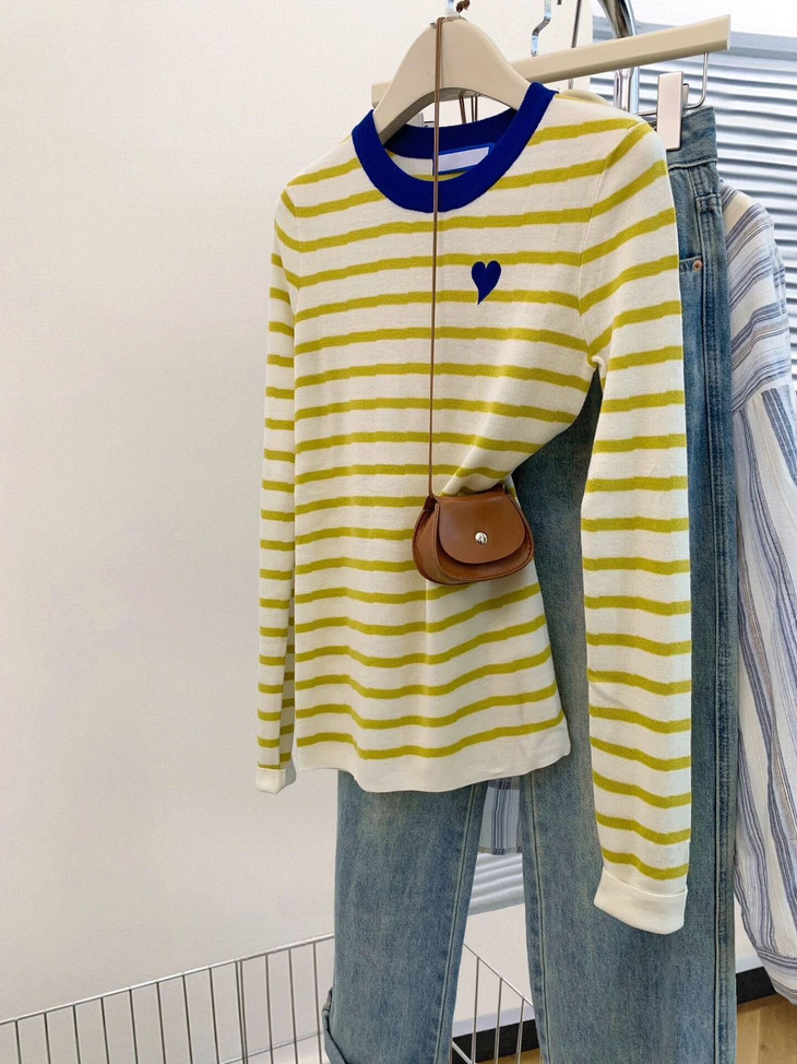 爱心双色条纹针织衫⭐️出口韩国订单 限量1000件无利润活动💎 初秋的松弛感的条纹衫,只看一眼就已命定的感觉 ~ 蓝白条纹像海风拂面~姜黄白条如阳光倾洒 90%的回头率都藏在“漫不经心”的慵懒里~ 📣🔥听好!♨️💰🉐限量1000件‼️1000件‼️冲吧!认准实拍
