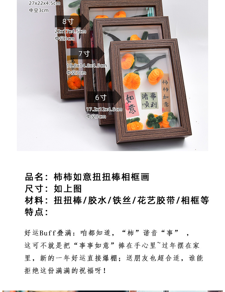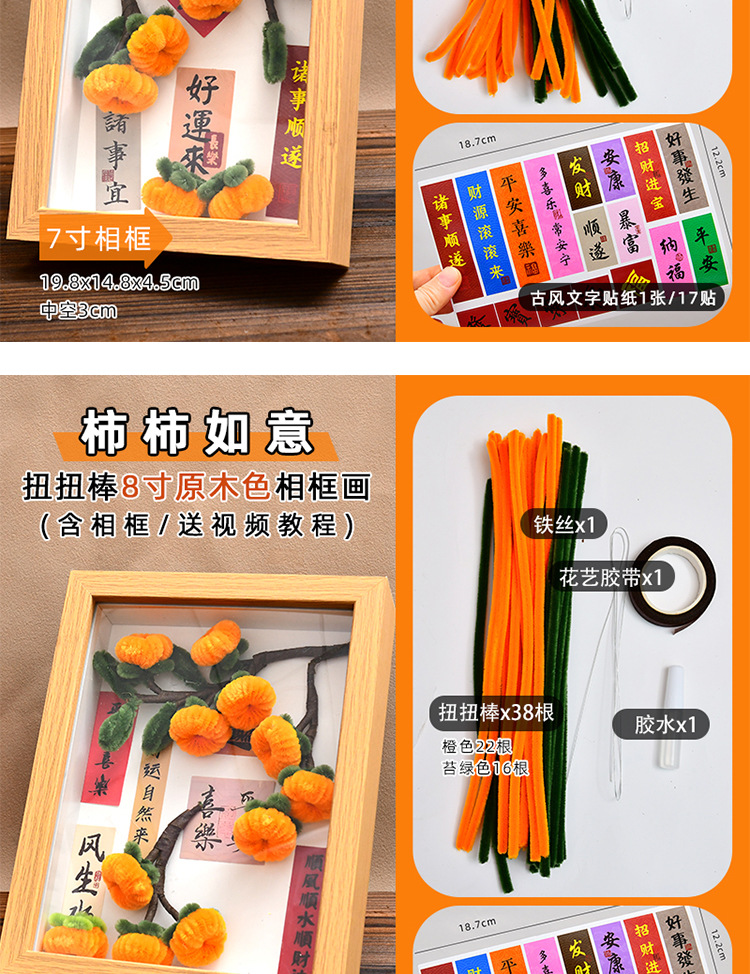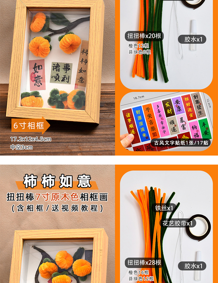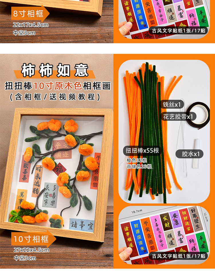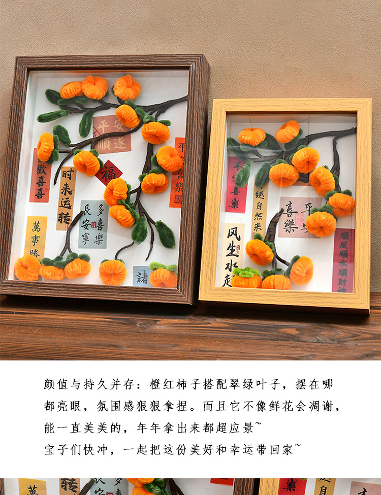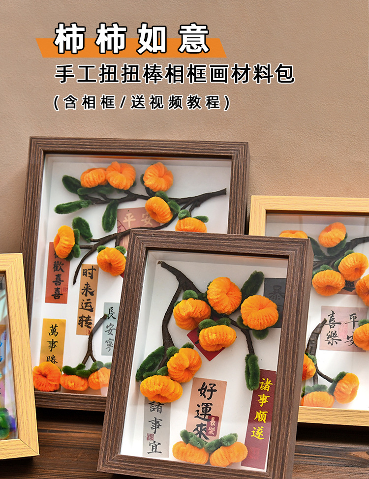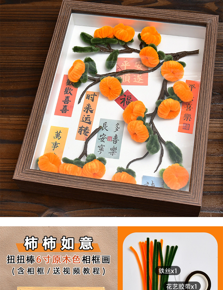 赠送视频教程【柿柿如意❗️DIY扭扭棒相框】元旦春节手工diy材料包扭扭棒柿柿如意相框过年柿子花束摆件新年摆件礼物,氛围感拉满~rd