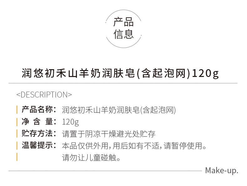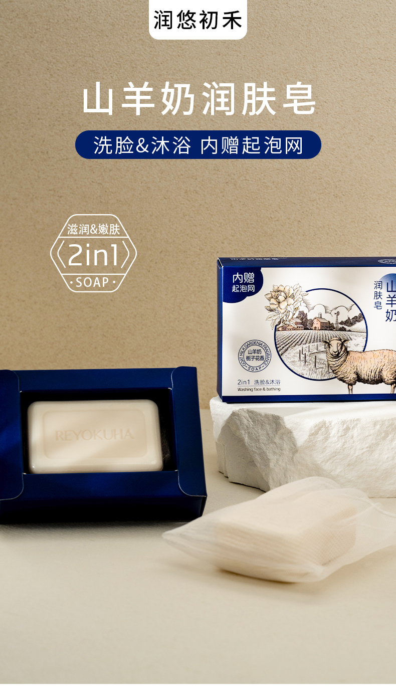 润悠初禾山羊奶润肤皂(含起泡网)120g (240951)