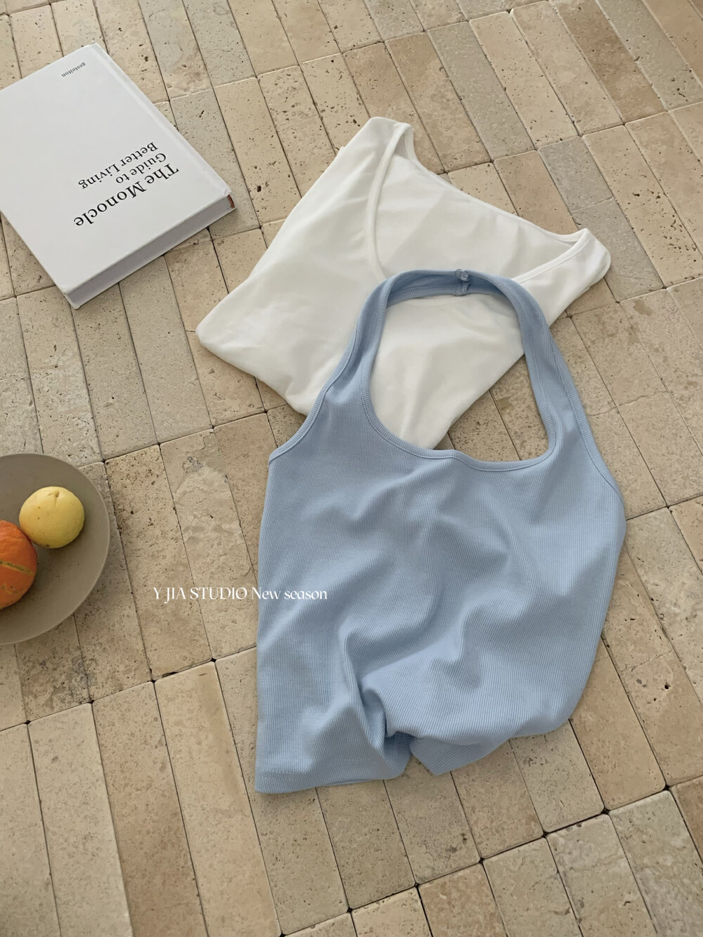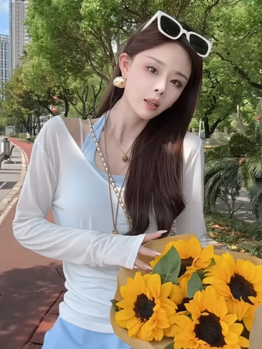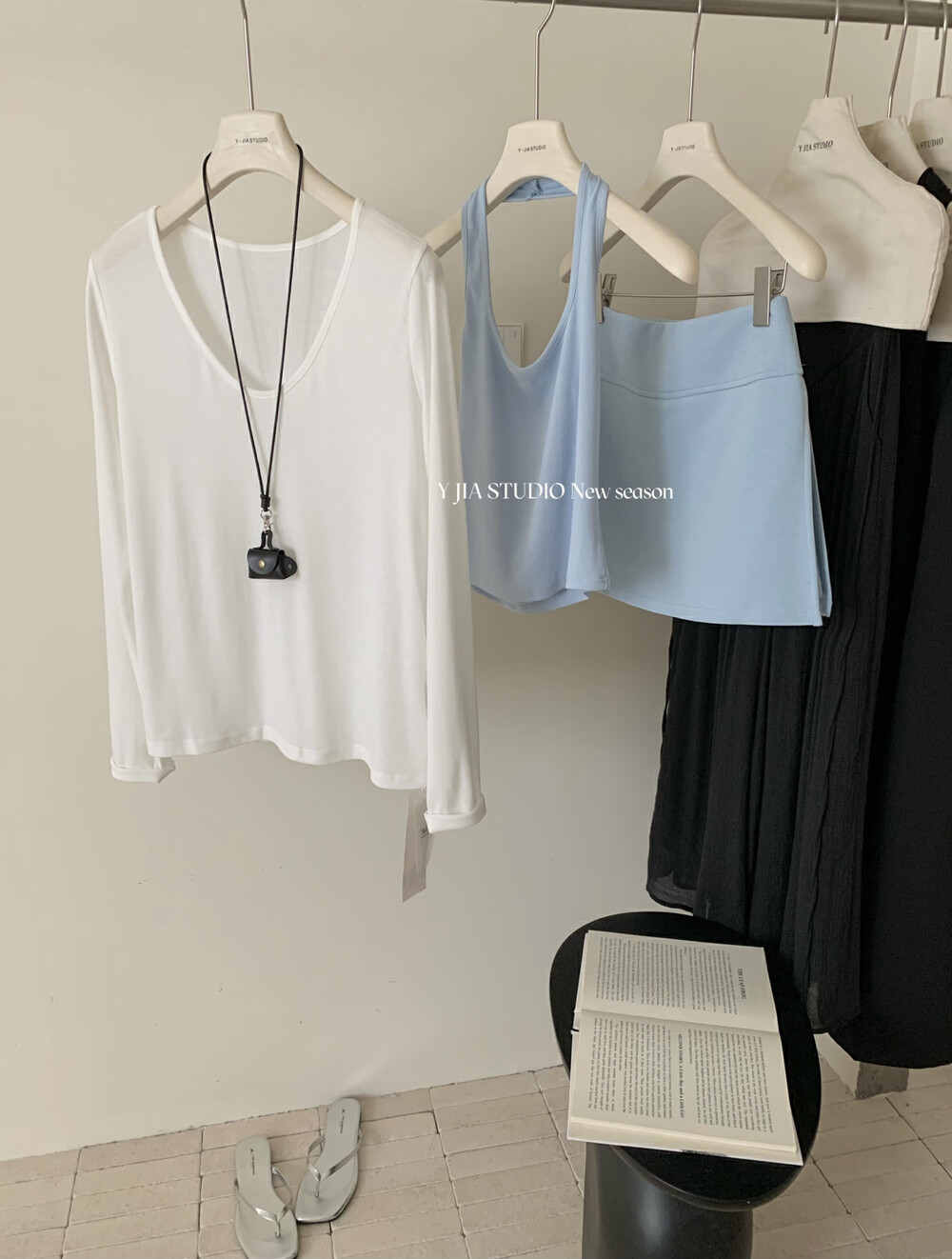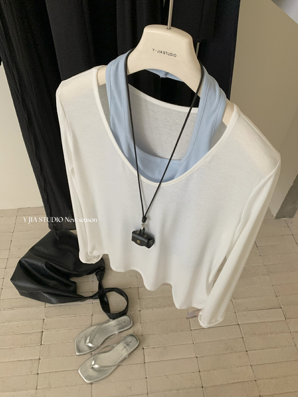 【GZ】无忧购纯欲宽松百搭防晒罩衫T恤+辣妹挂脖露背背心+设计感假两裤裙套装6881#(截单后3-5天发货)
