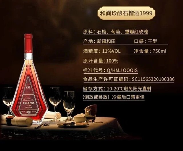 新疆和阗红酒石榴酒1999(干型)750mL/瓶