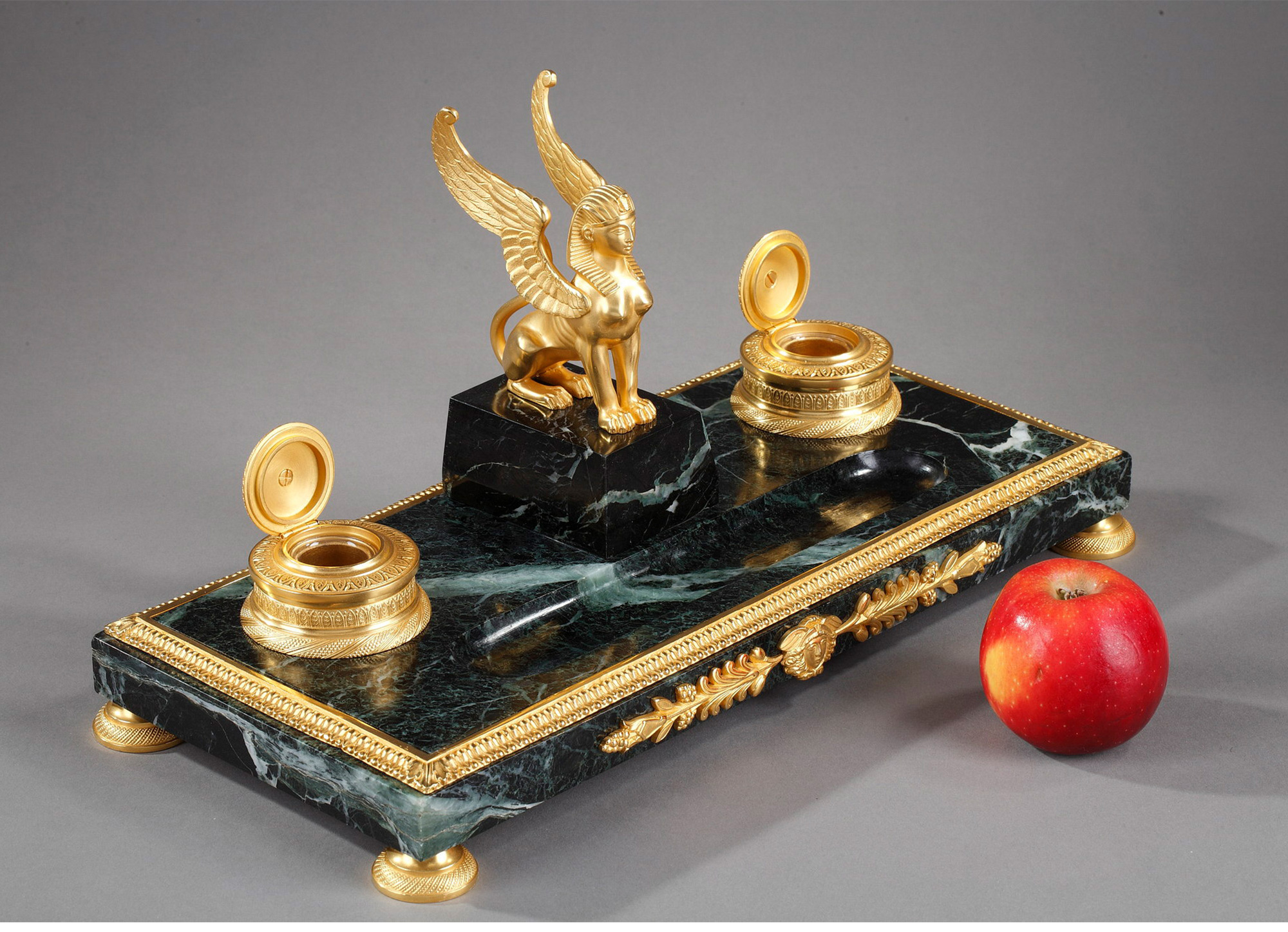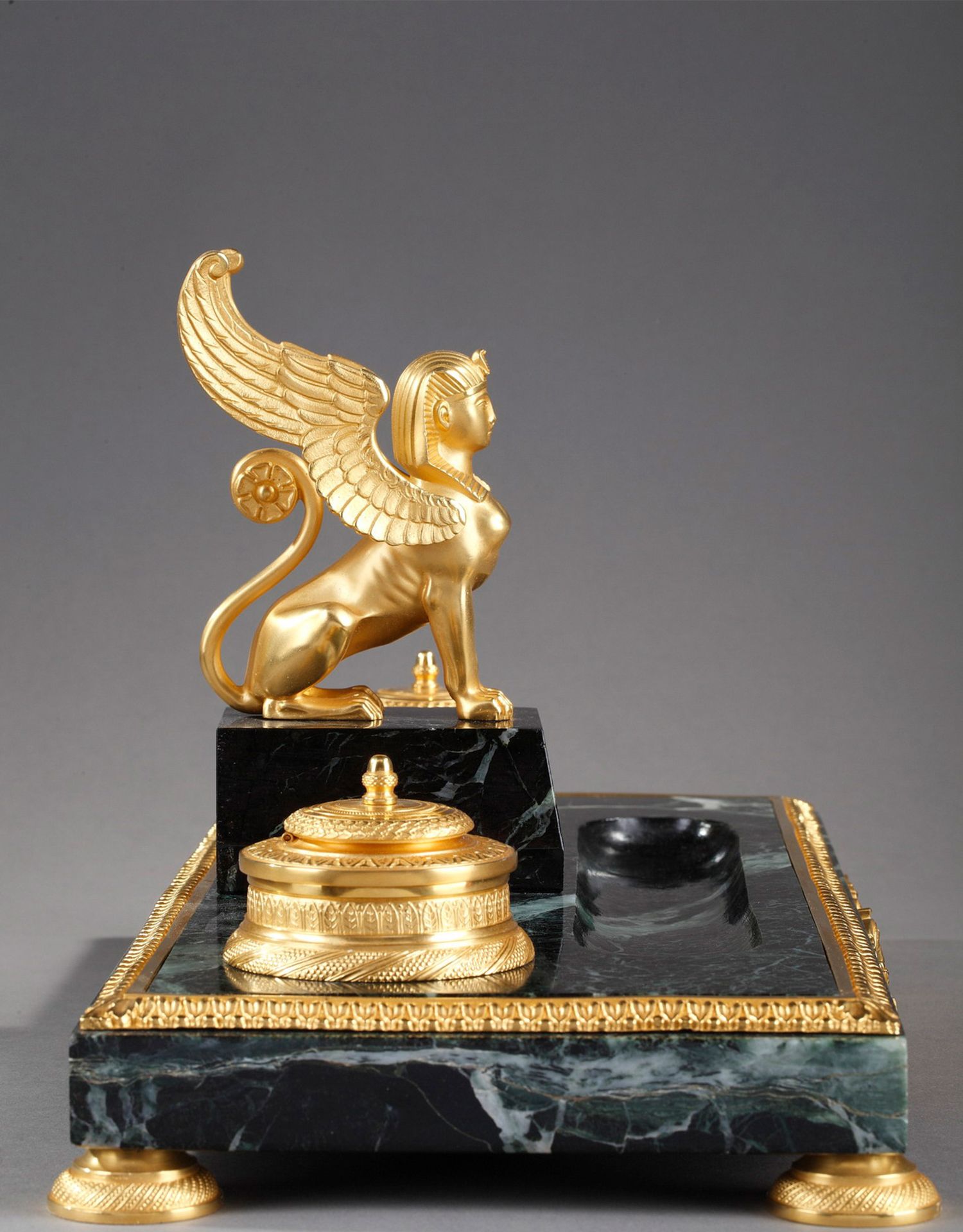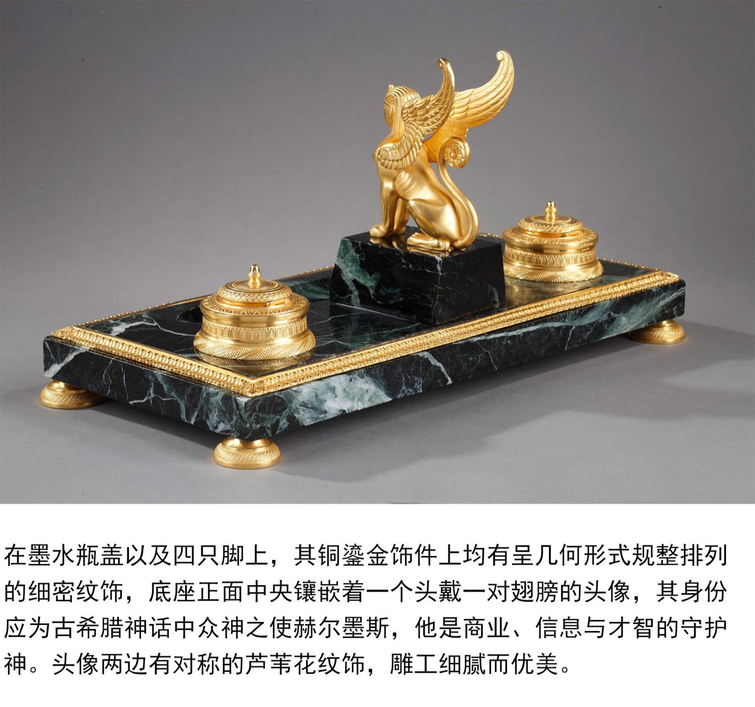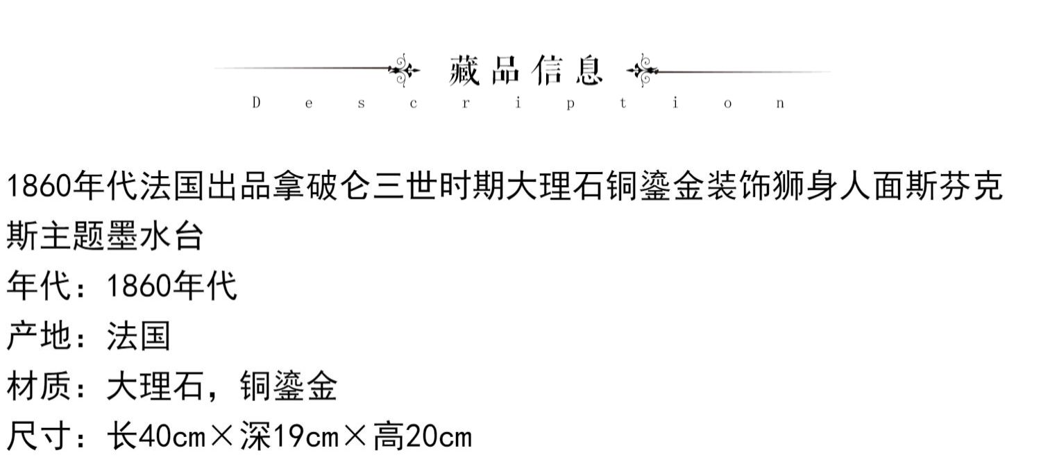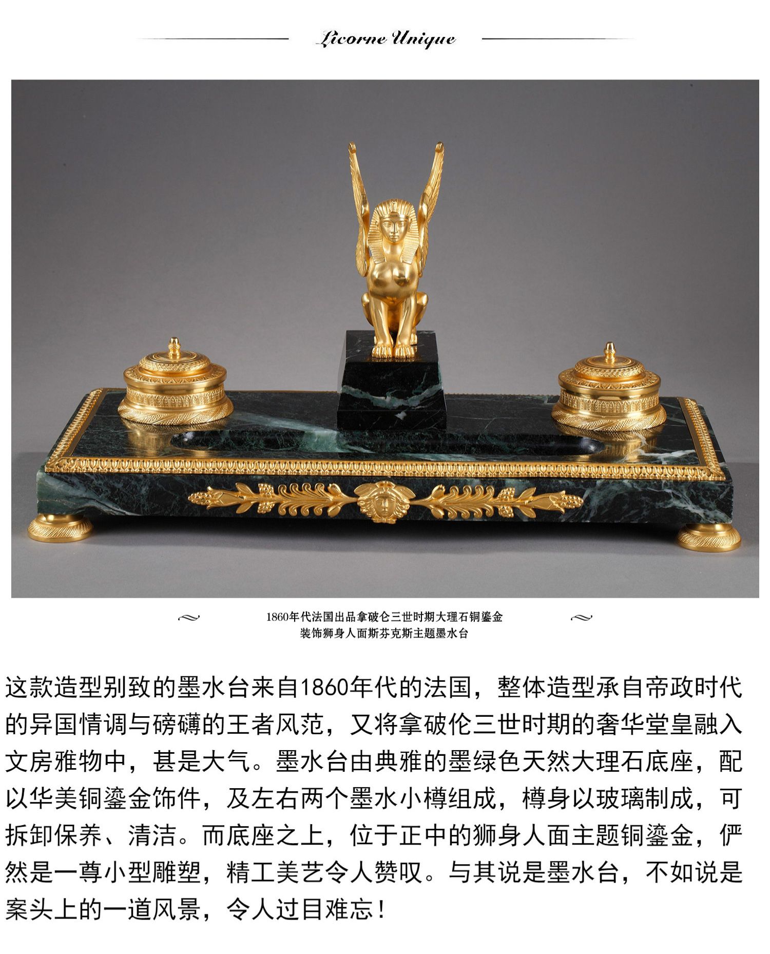 独角鹿西洋古董摆件法国大理石铜鎏金狮身人面斯芬克斯主题墨水台