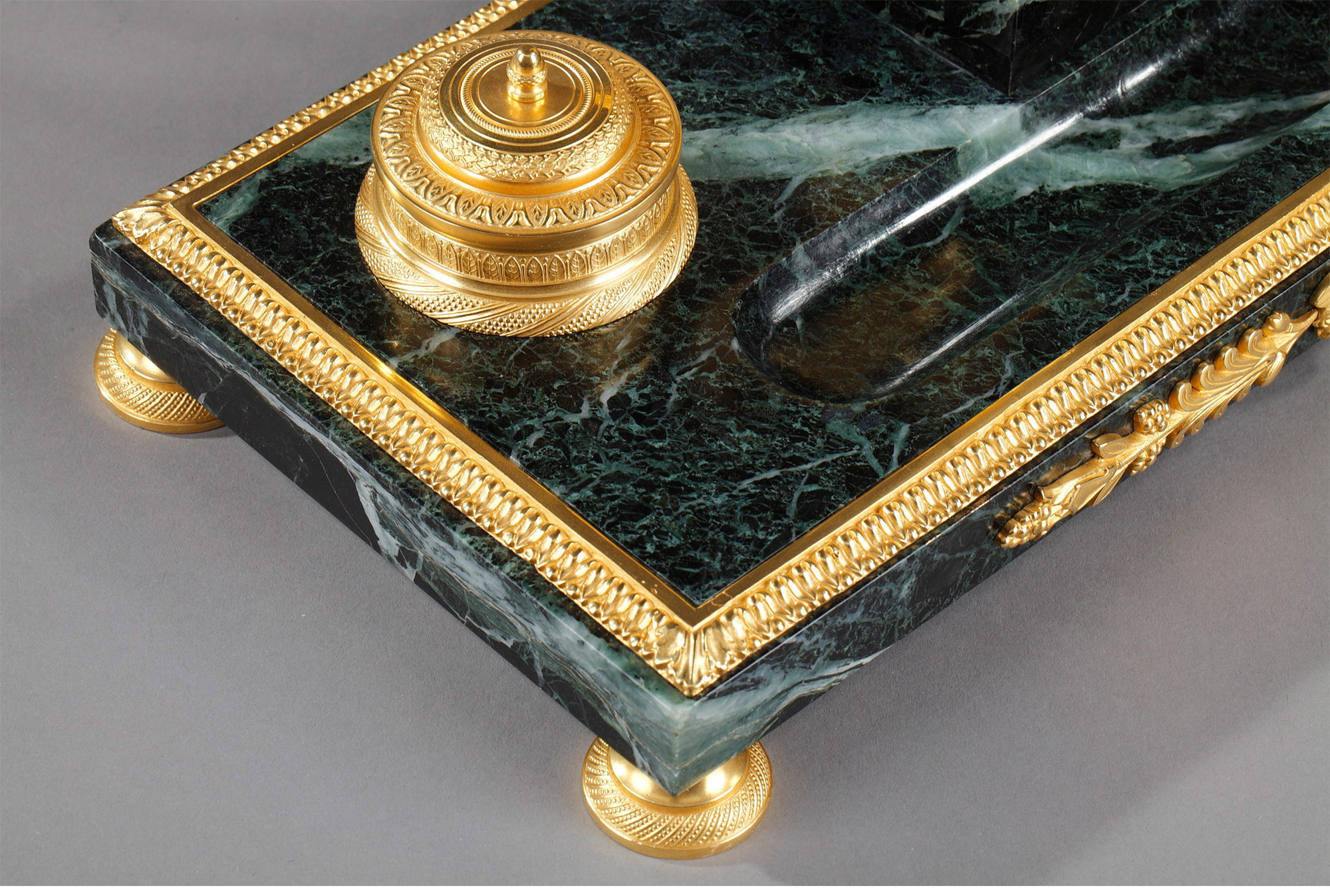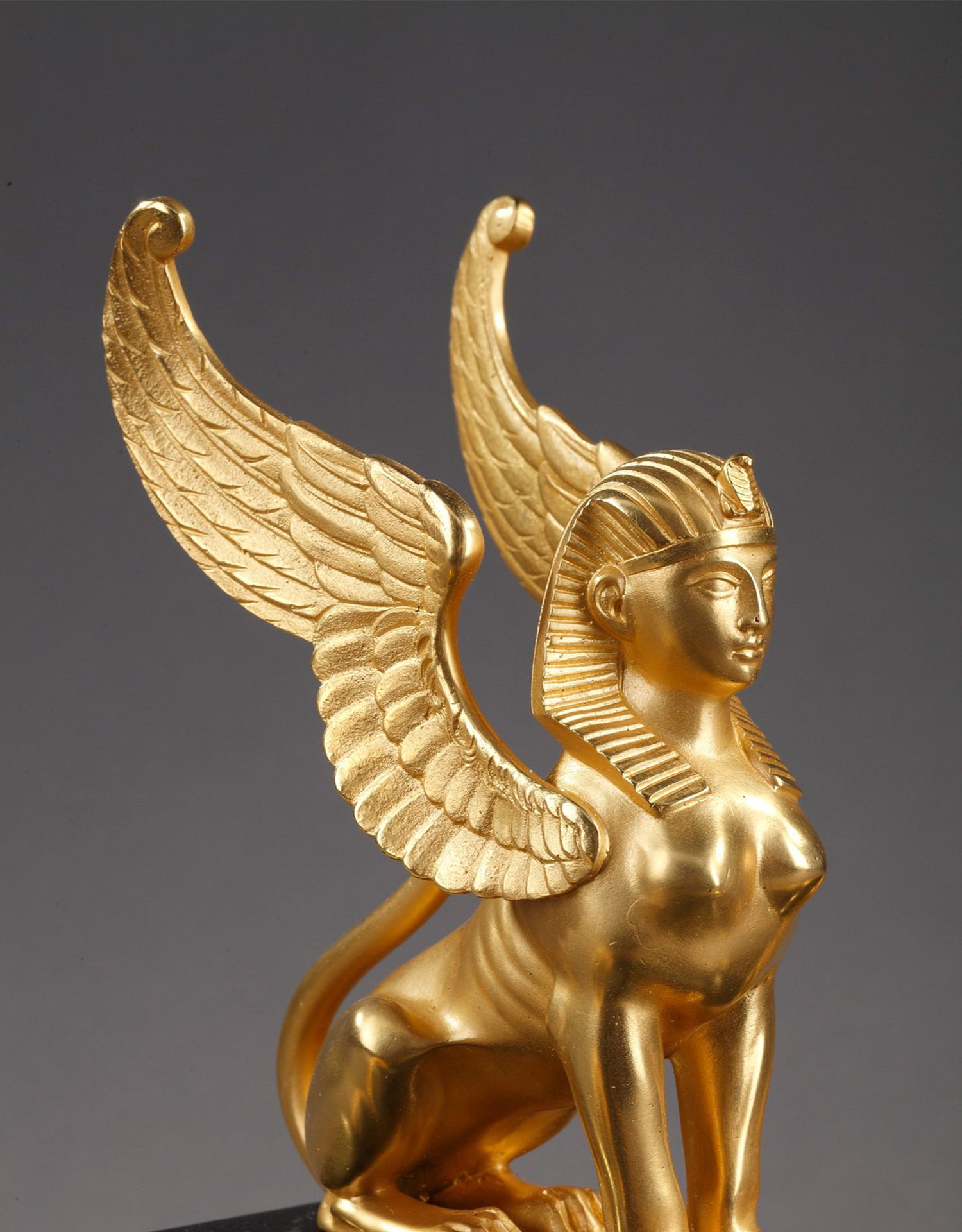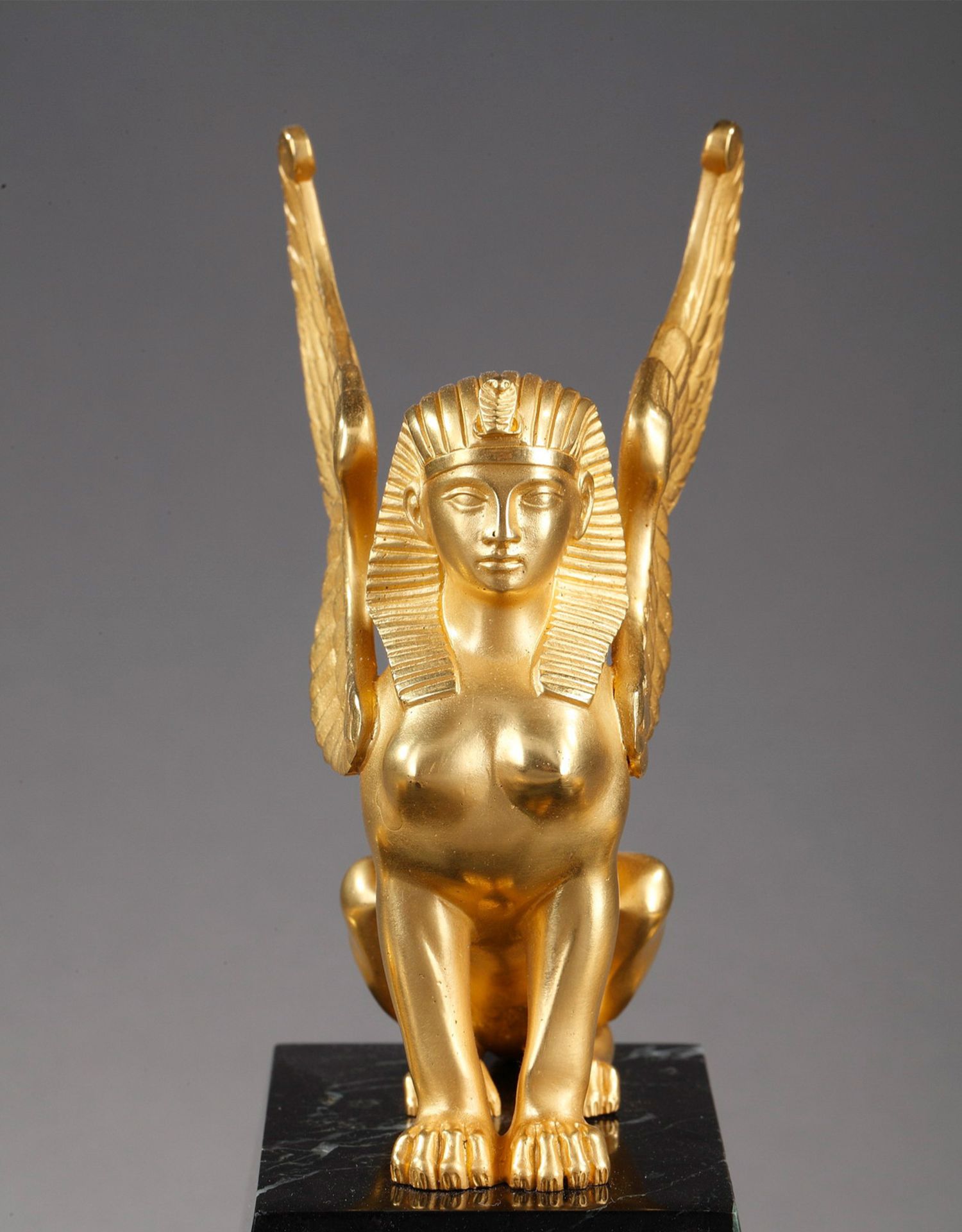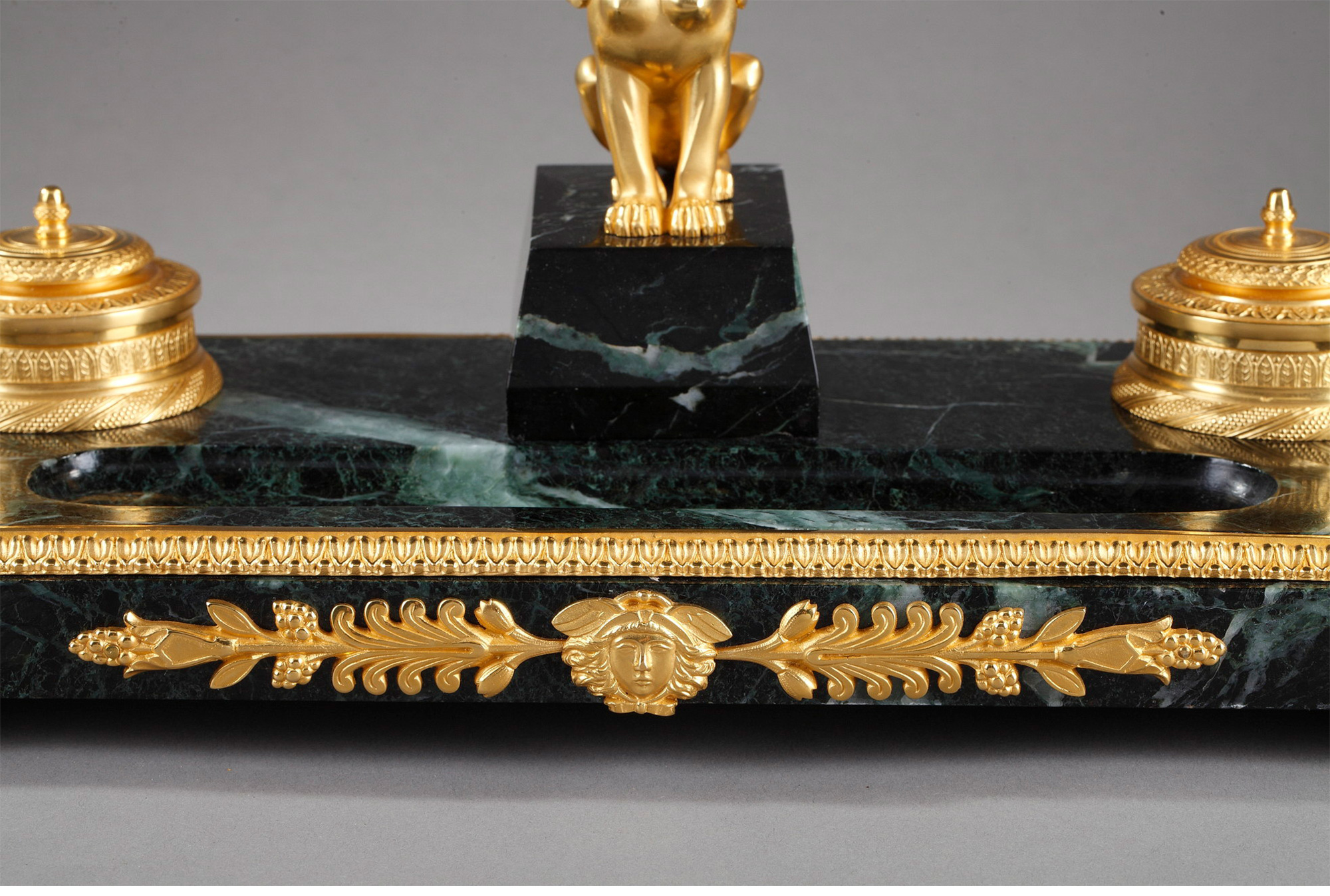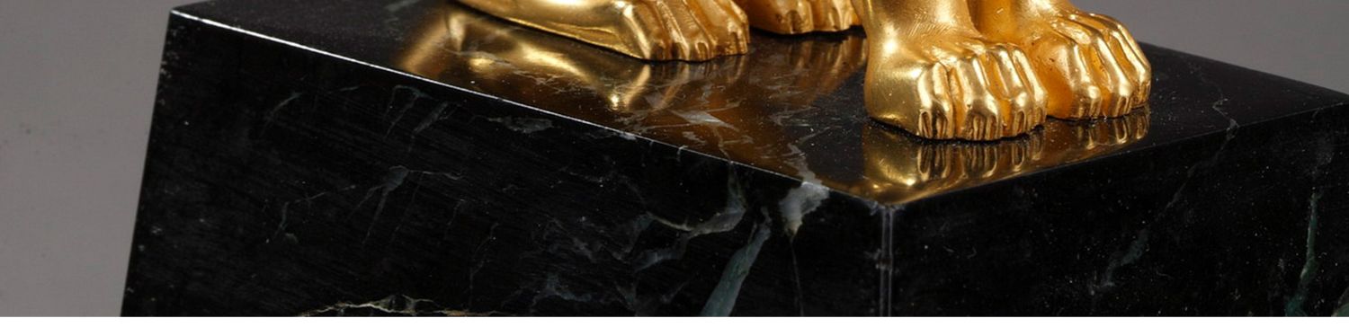 独角鹿西洋古董摆件法国大理石铜鎏金狮身人面斯芬克斯主题墨水台
