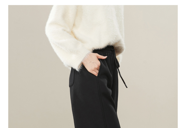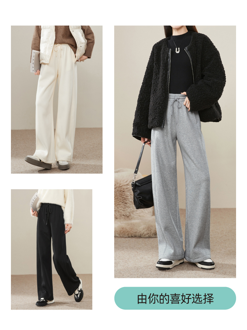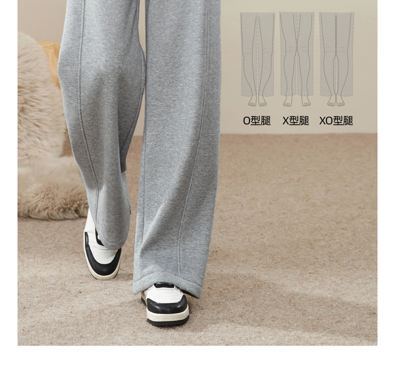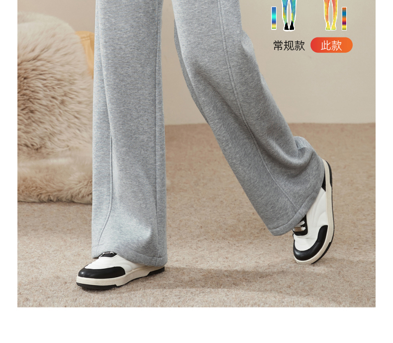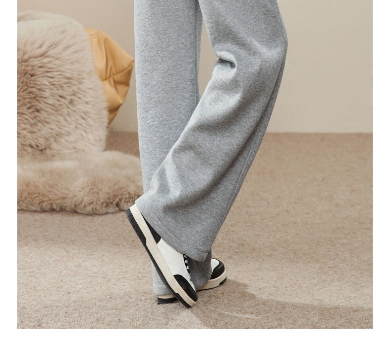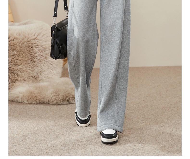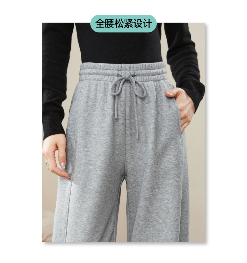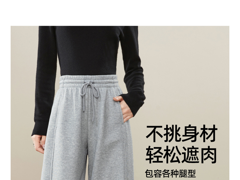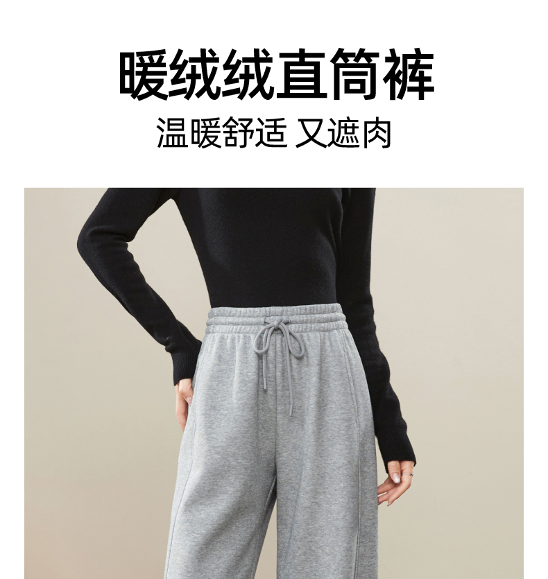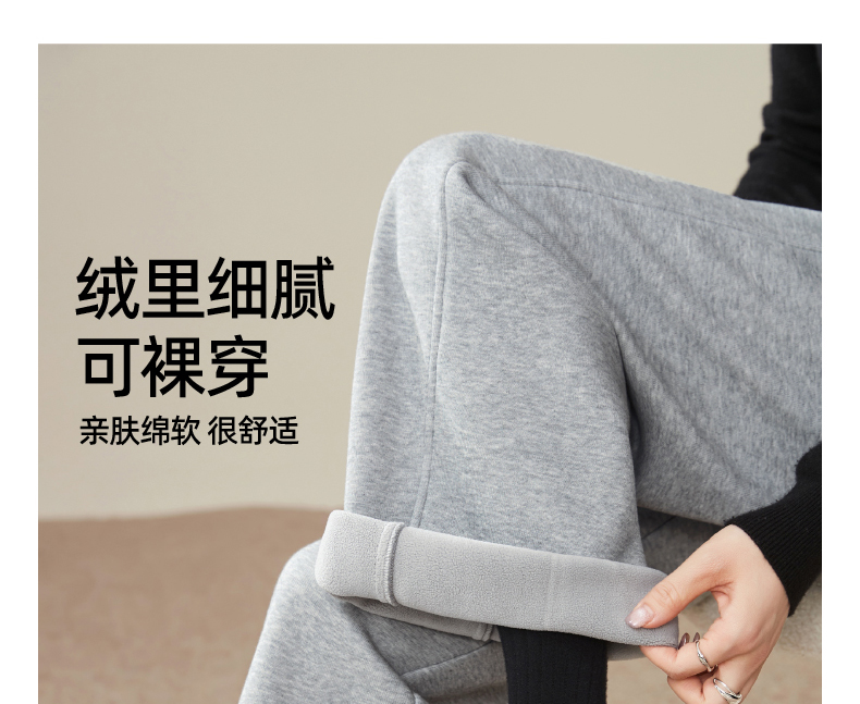 【暖绒绒-直筒裤】逸阳冬款加绒加厚高腰灰色休闲运动阔腿裤子1935