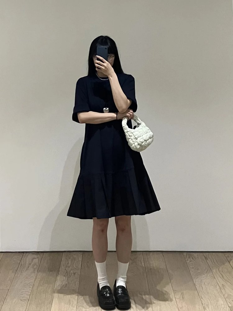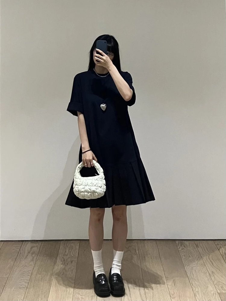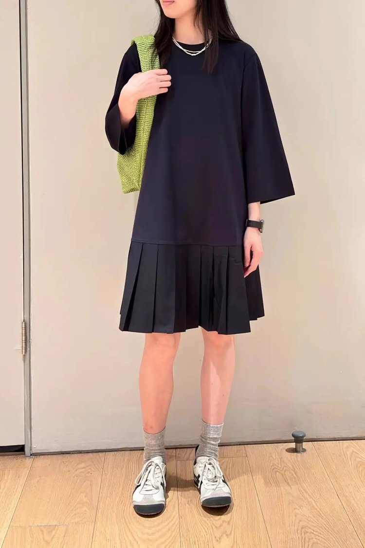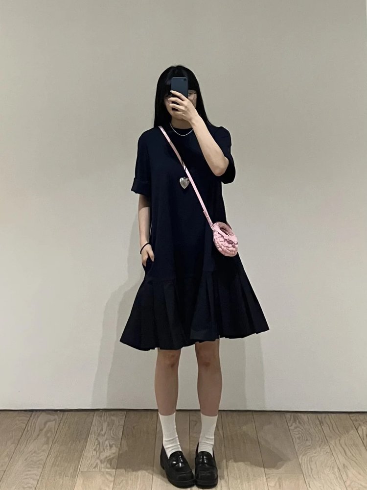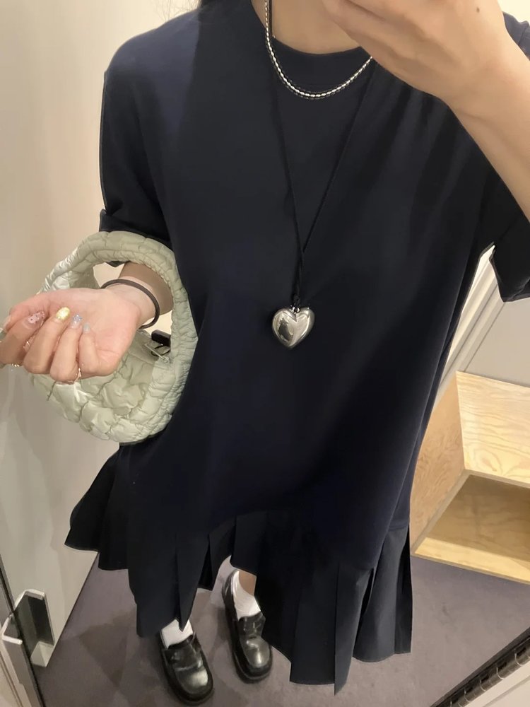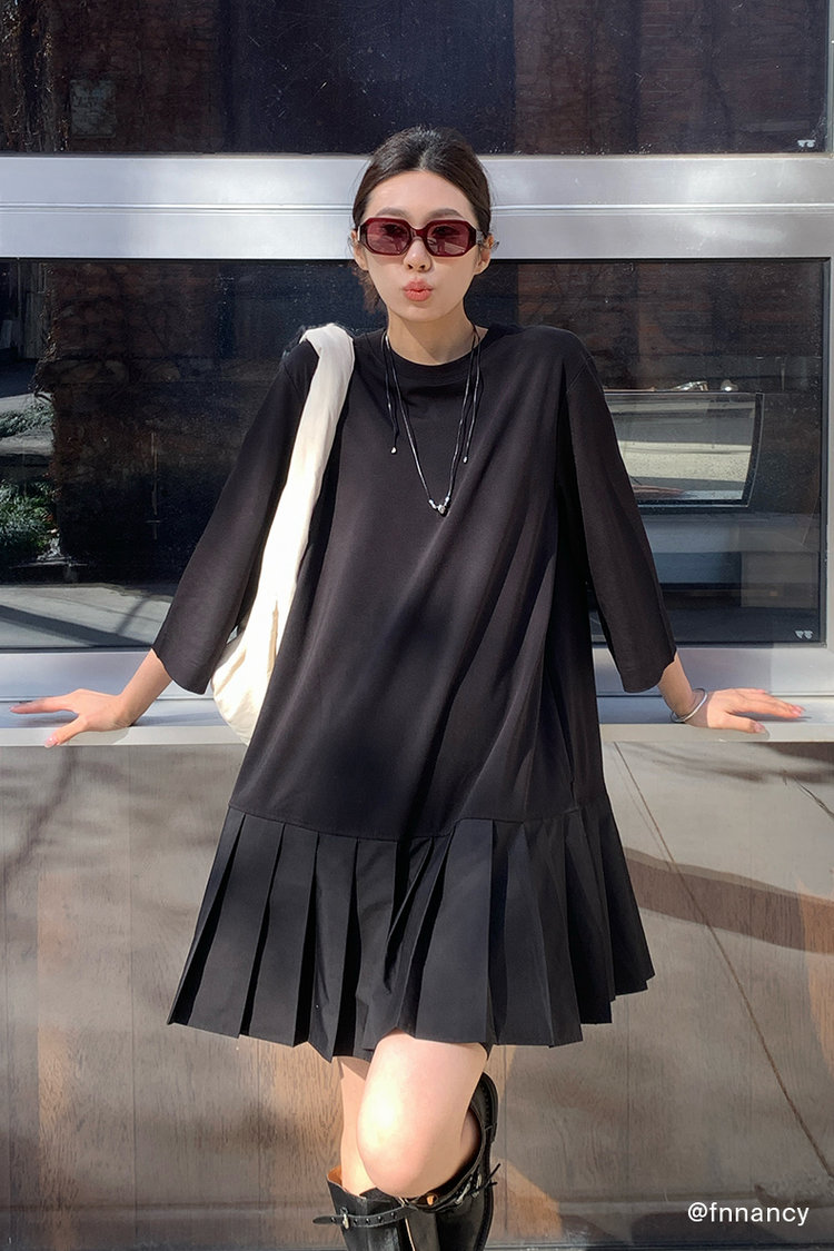 【高品质私服】【CS拼接百褶针织T恤连衣裙】织纹赋予肌肤云朵般的亲肤触感G1217-CC【无标出货 介意慎拍】