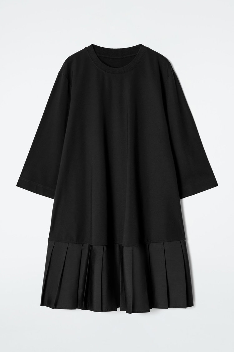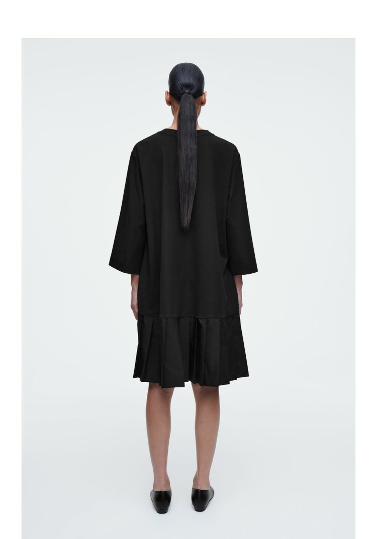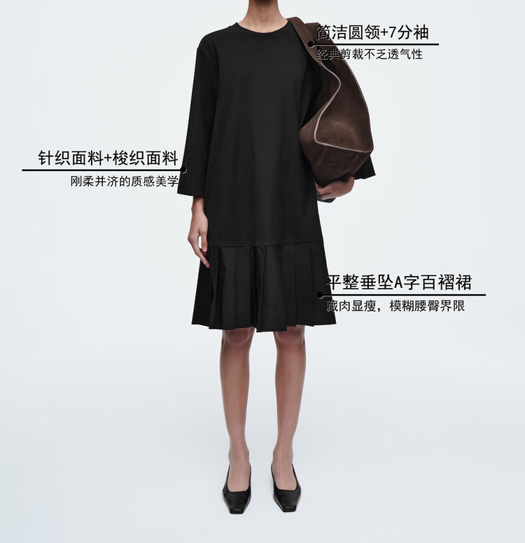 休闲版型拼接百褶针织T恤连衣裙