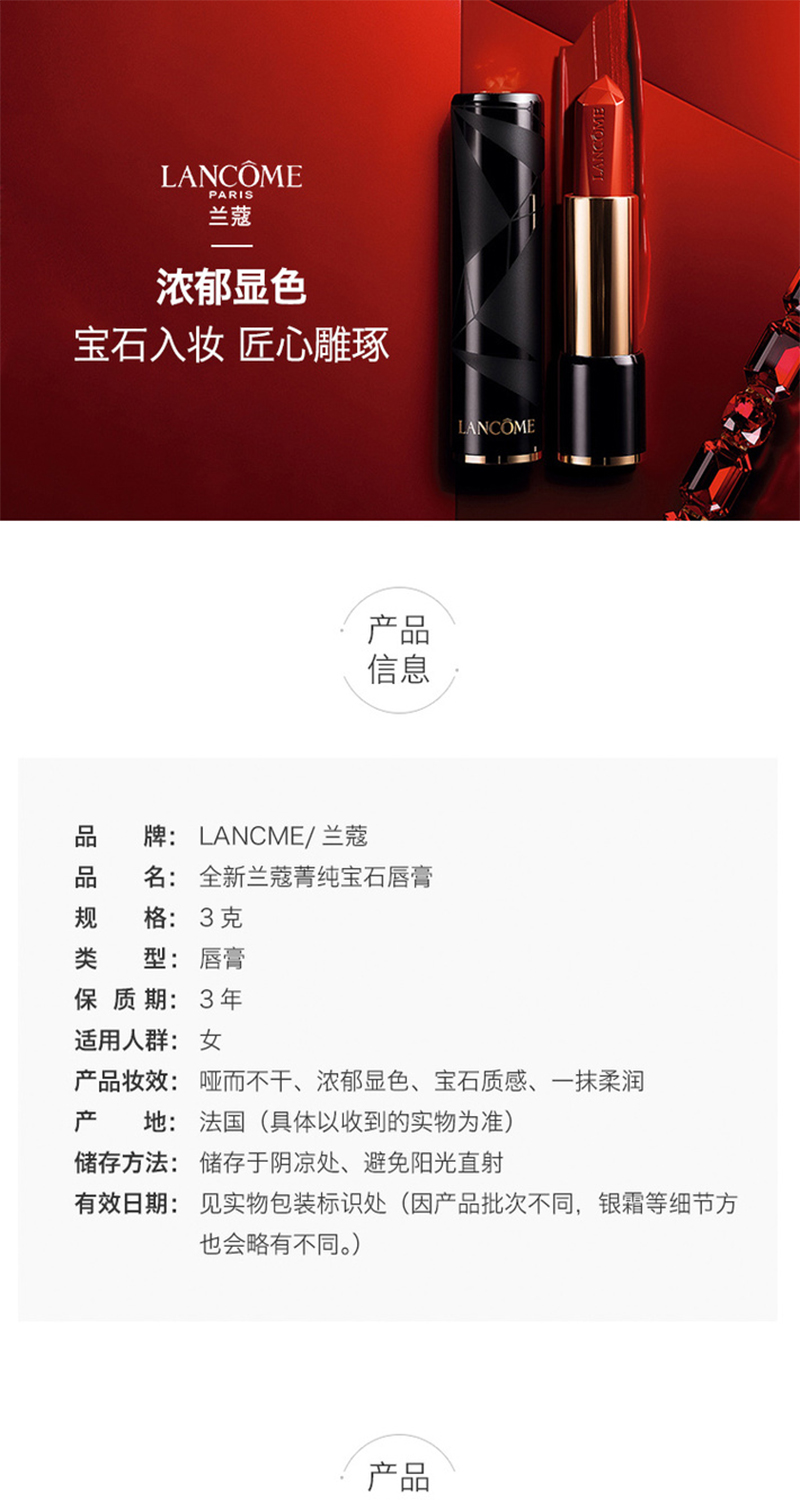 【香港直邮】兰蔻Lancome 新款菁纯柔润宝石口红 #02RUBY QUEEN