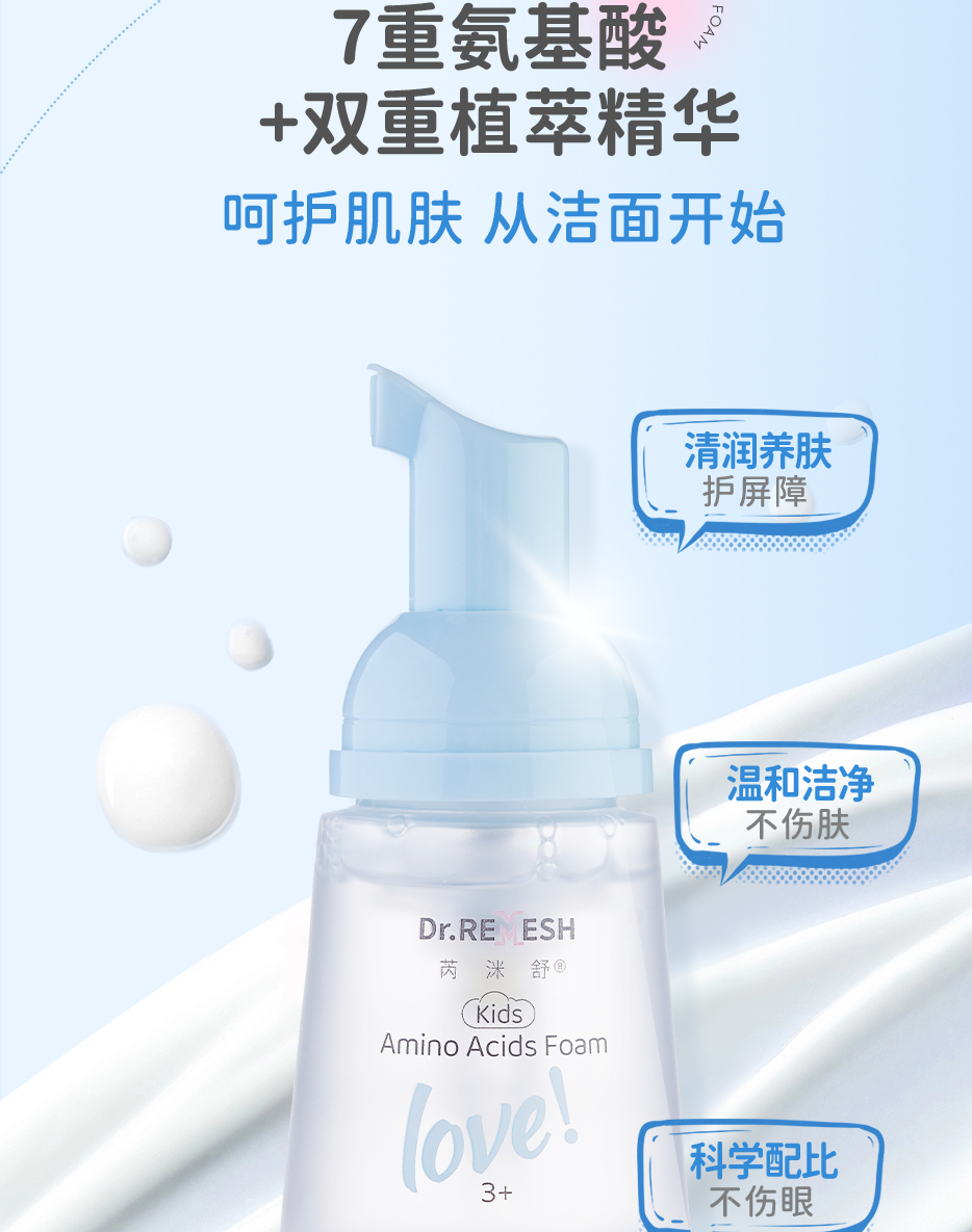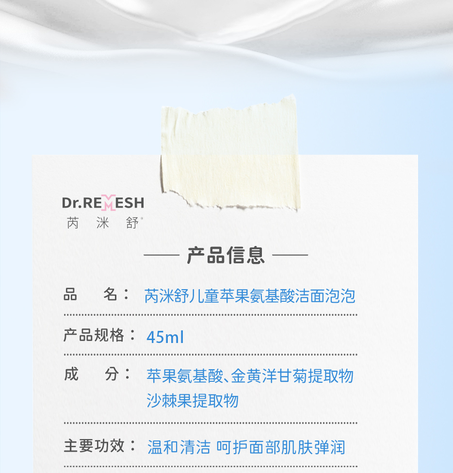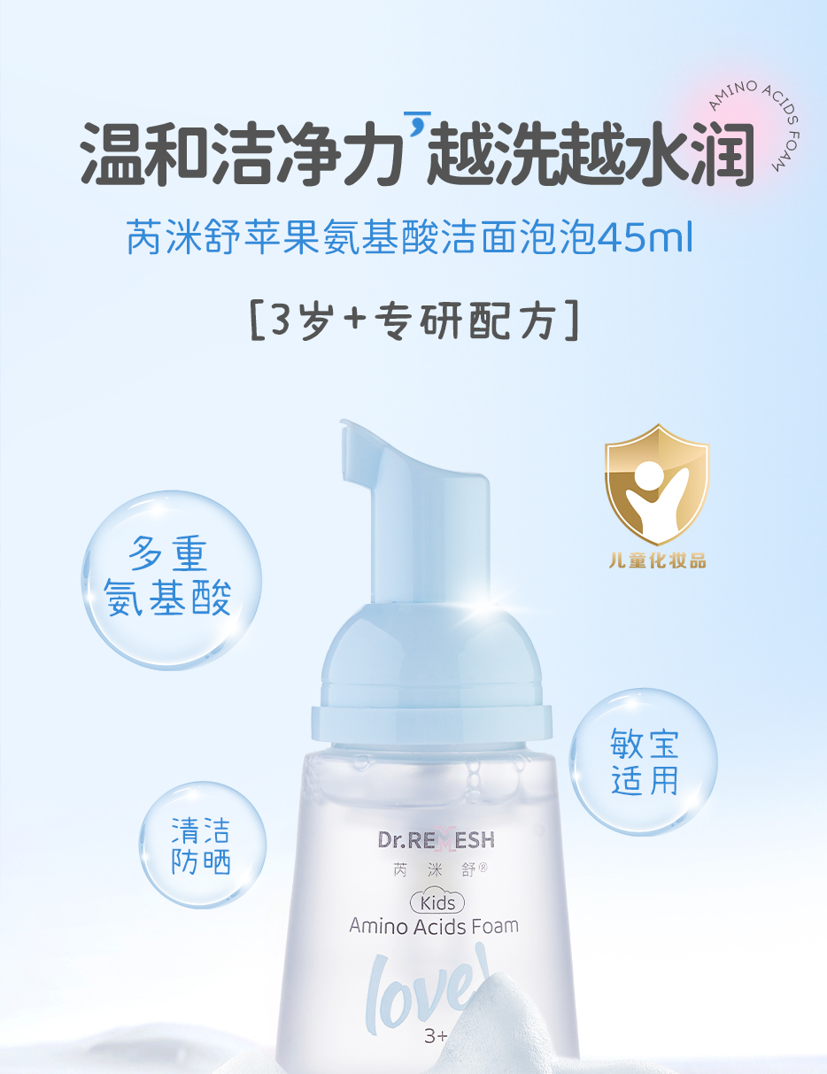 芮洣舒苹果氨基酸洁面泡泡洗面奶宝宝适用45ml