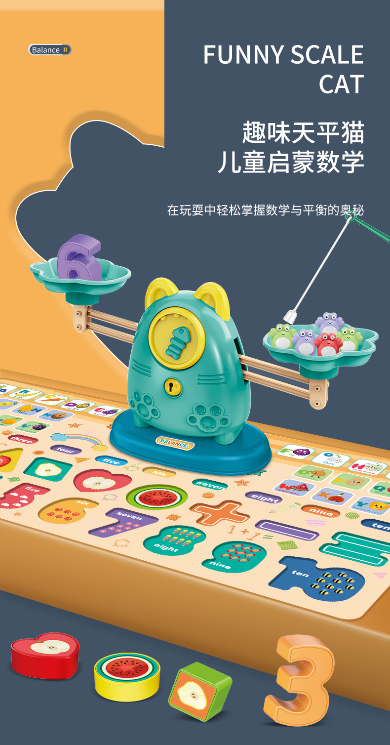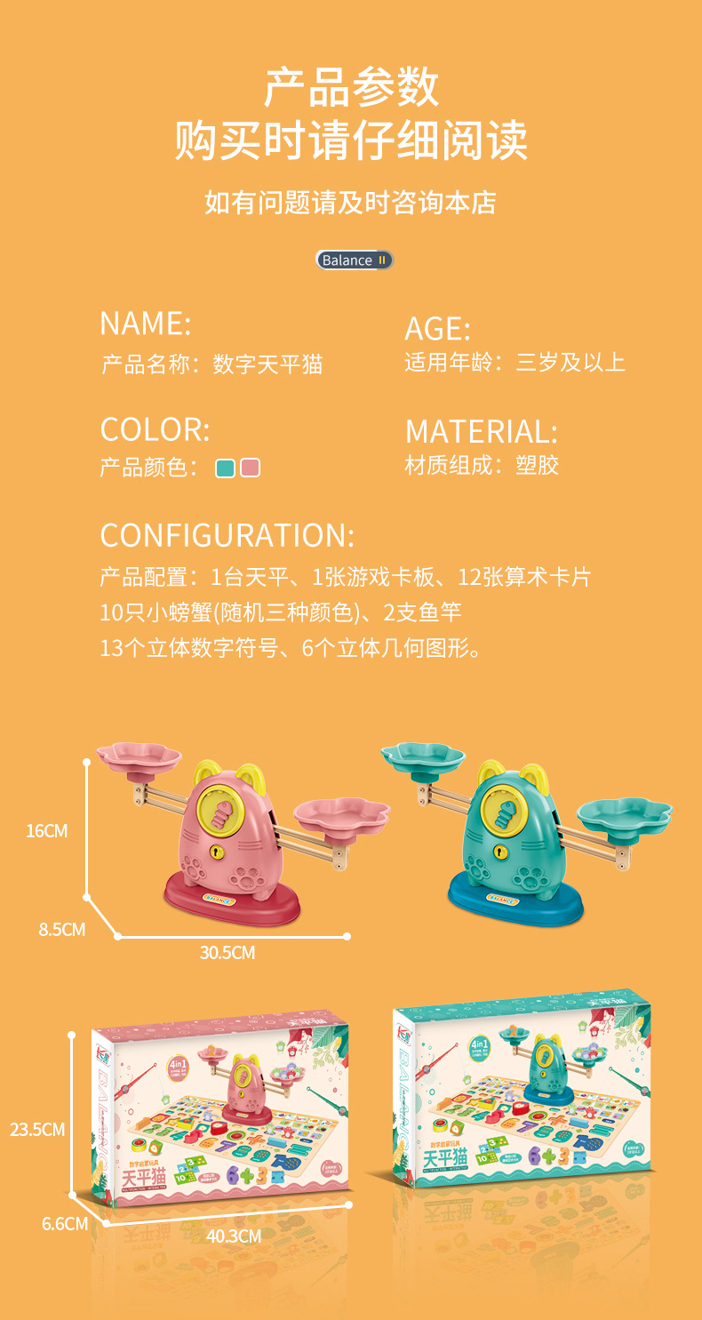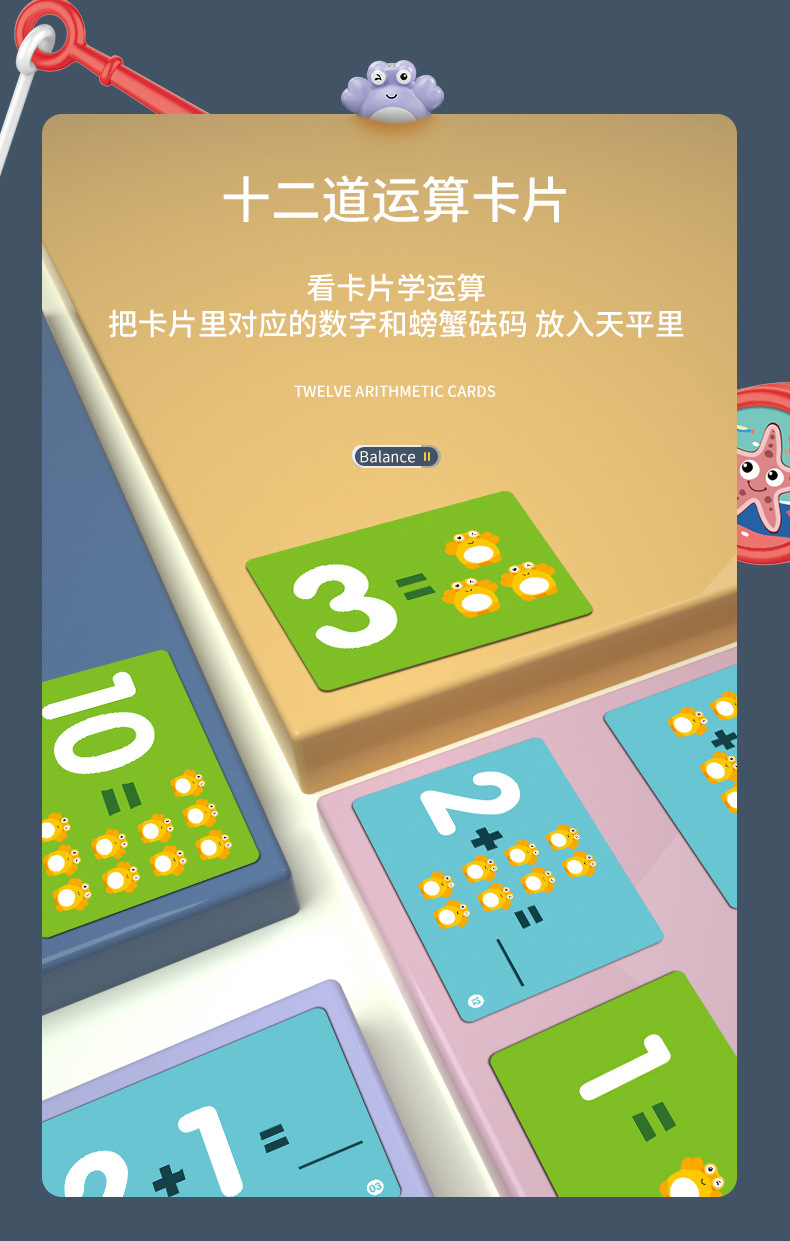 【轻松掌握数学与平衡的奥秘】儿童猫咪数字天平秤钓螃蟹 逻辑益智思维游戏亲子互动数字称玩具