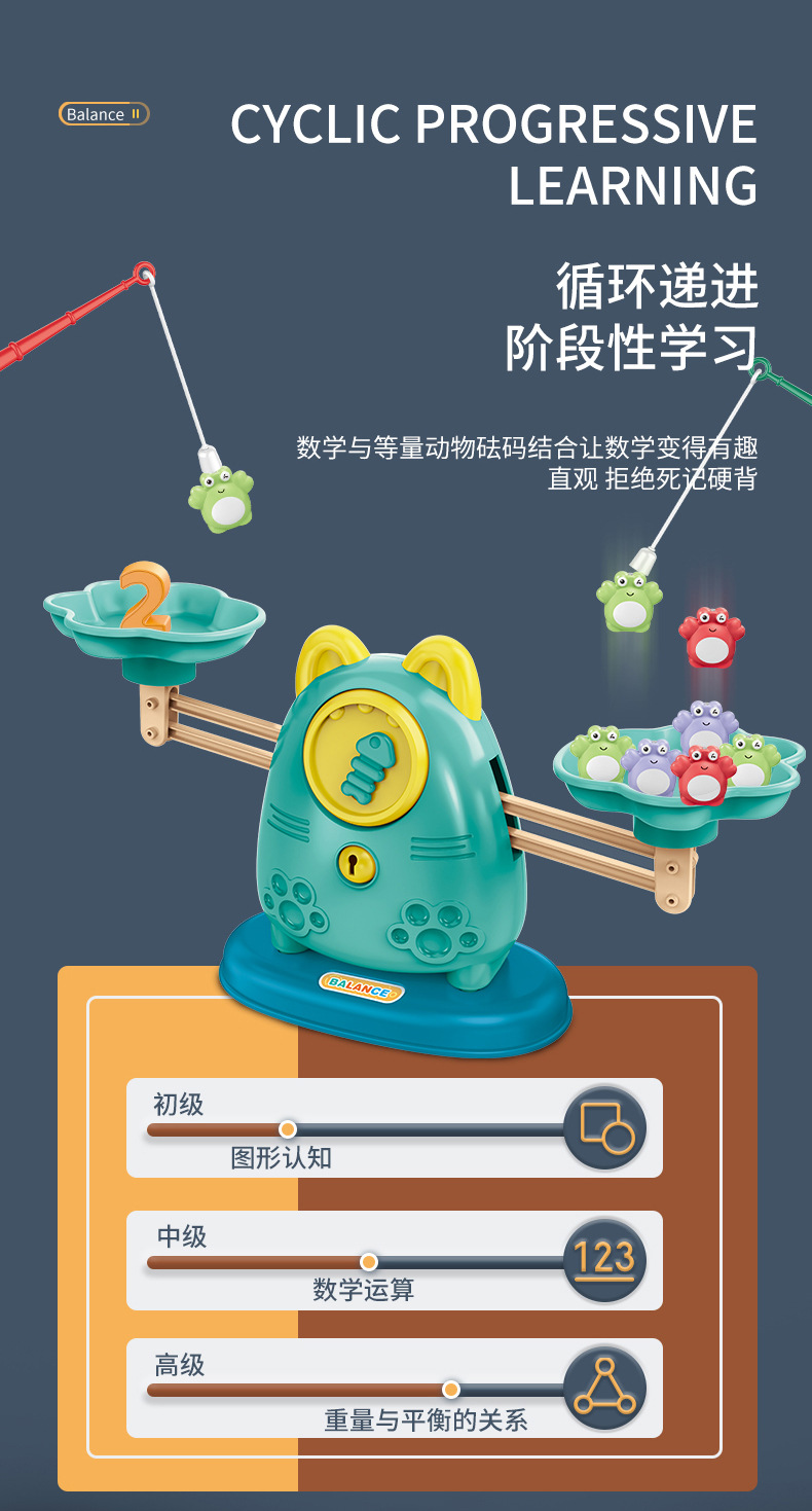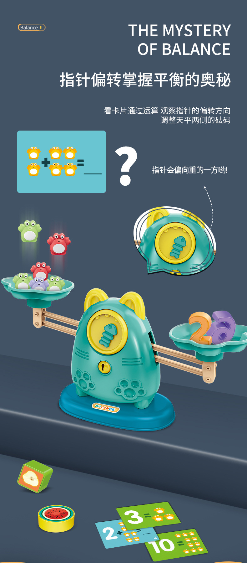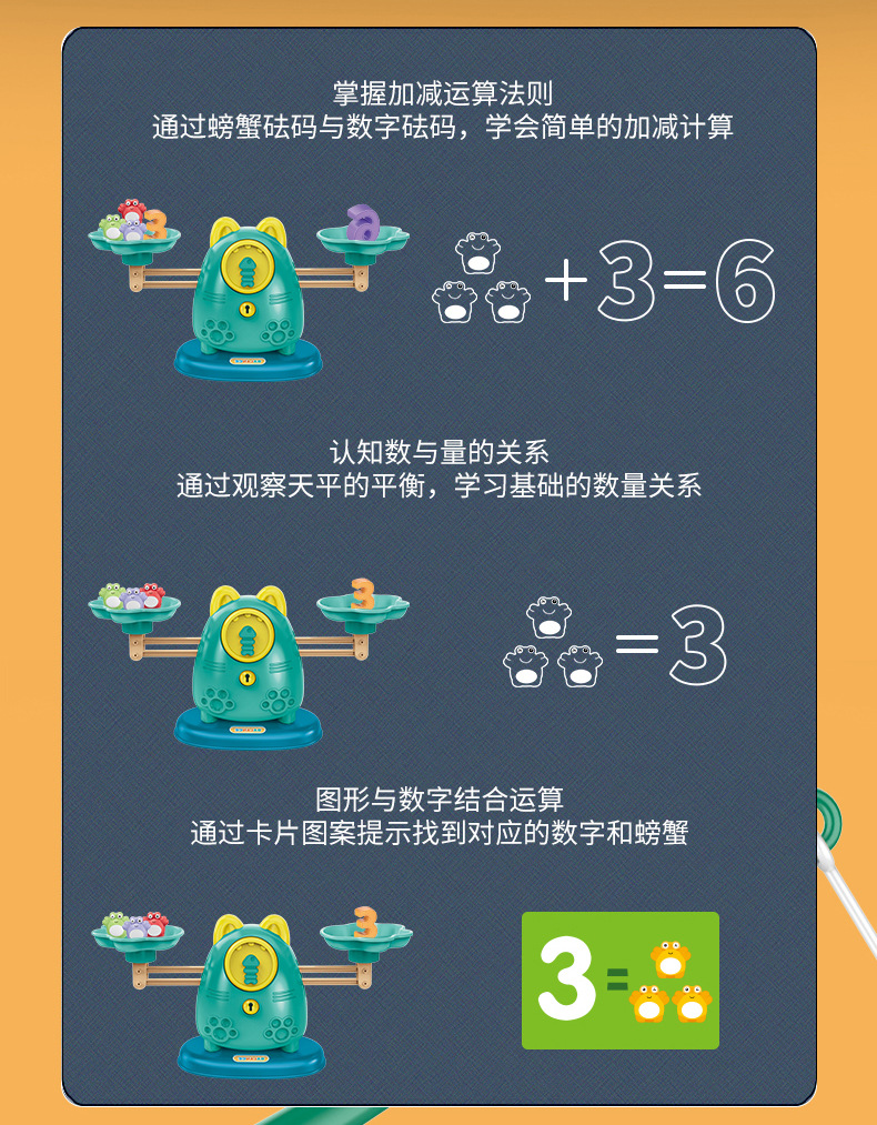 【轻松掌握数学与平衡的奥秘】儿童猫咪数字天平秤钓螃蟹 逻辑益智思维游戏亲子互动数字称玩具