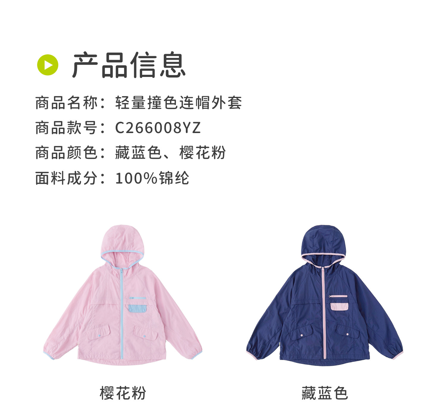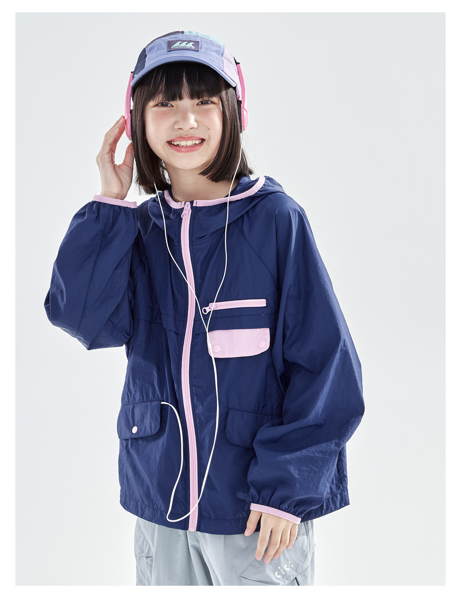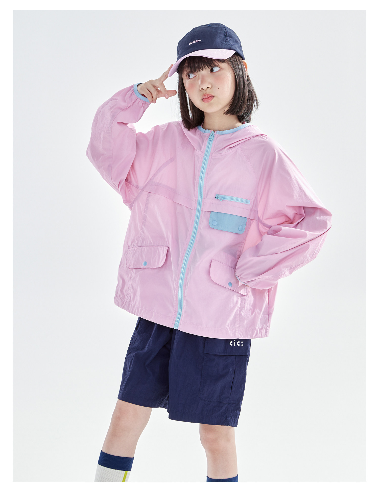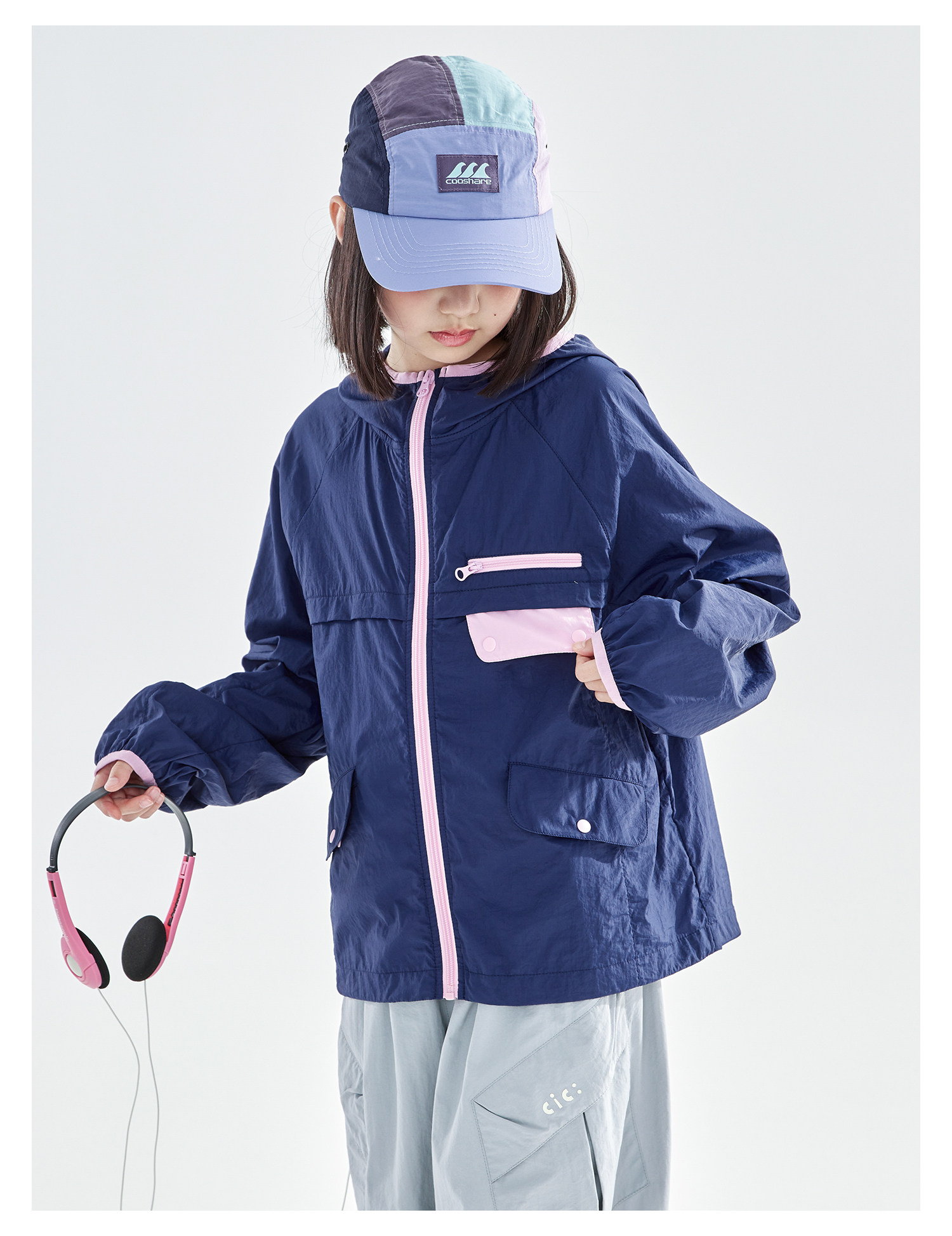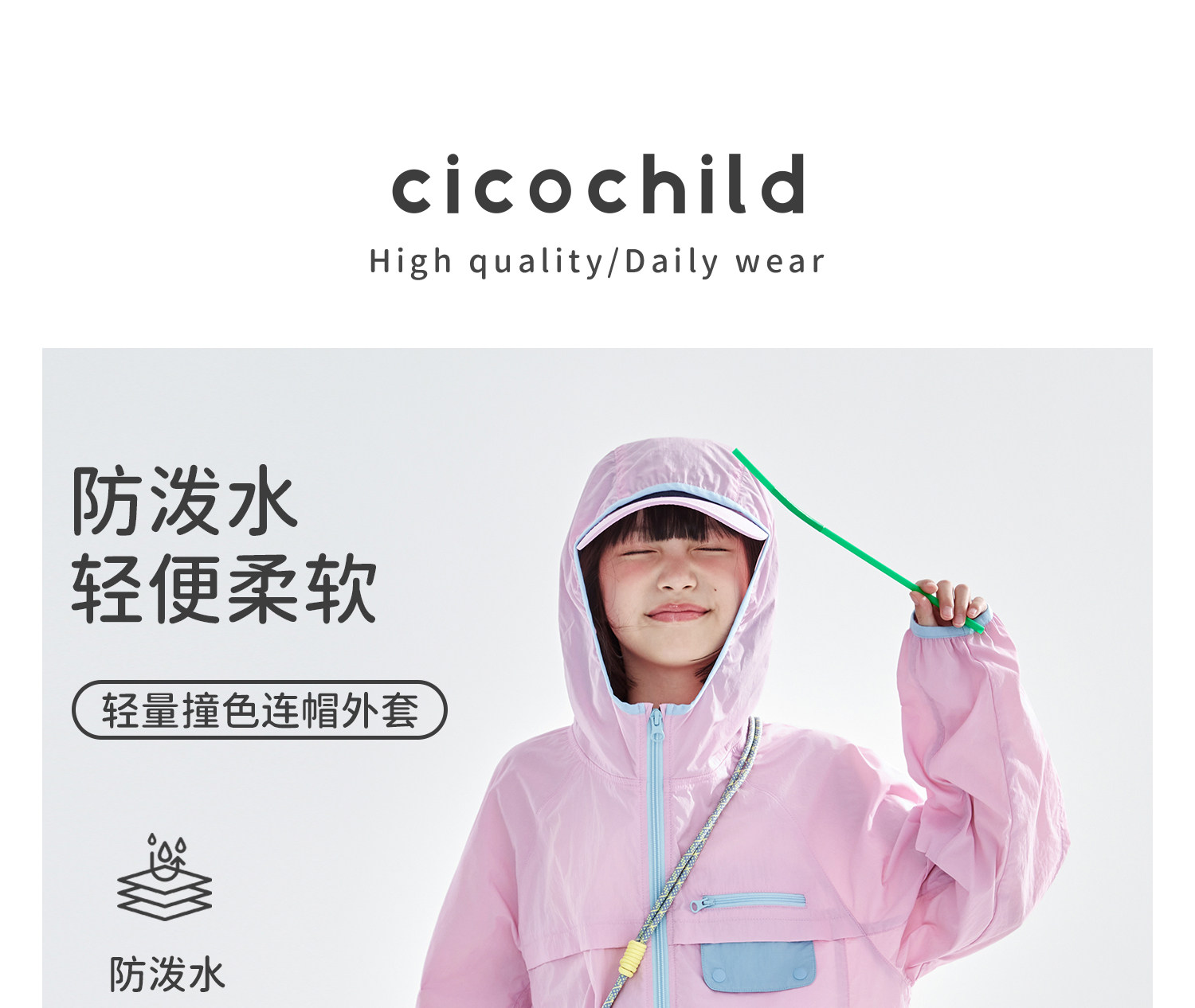 cicochild26年春季新款亲子中大女童轻量撞色外套防泼水连帽上衣