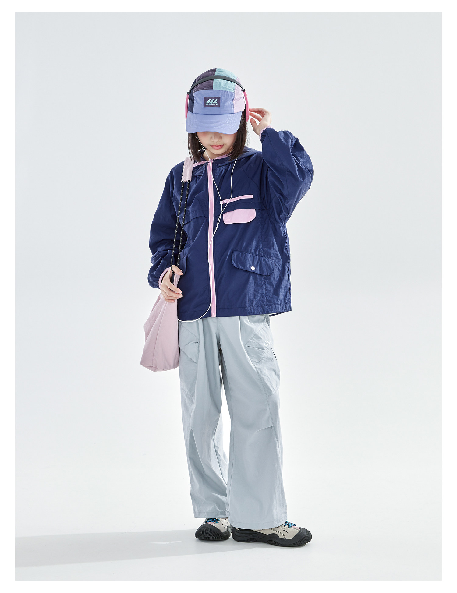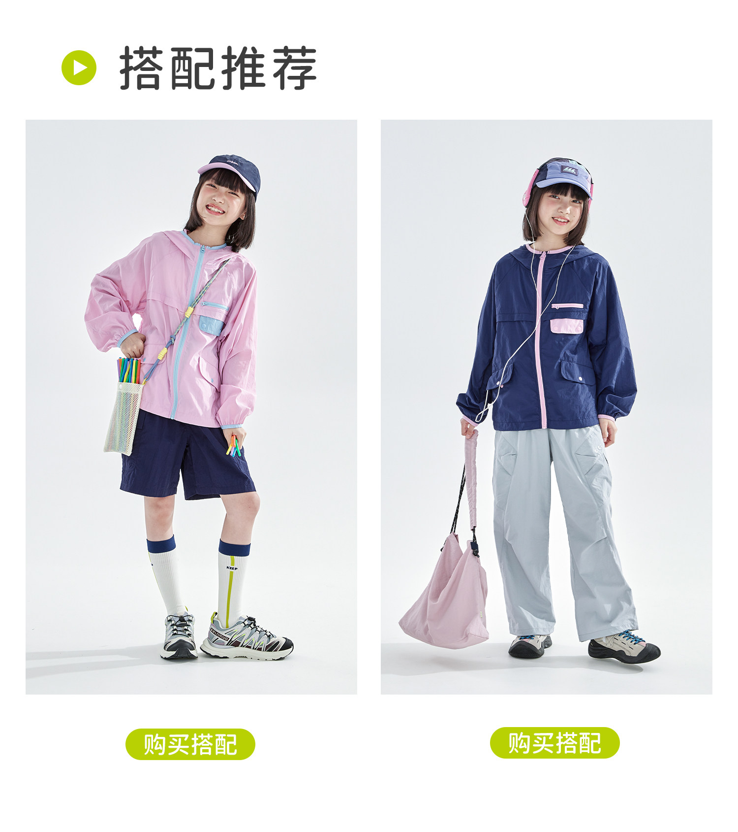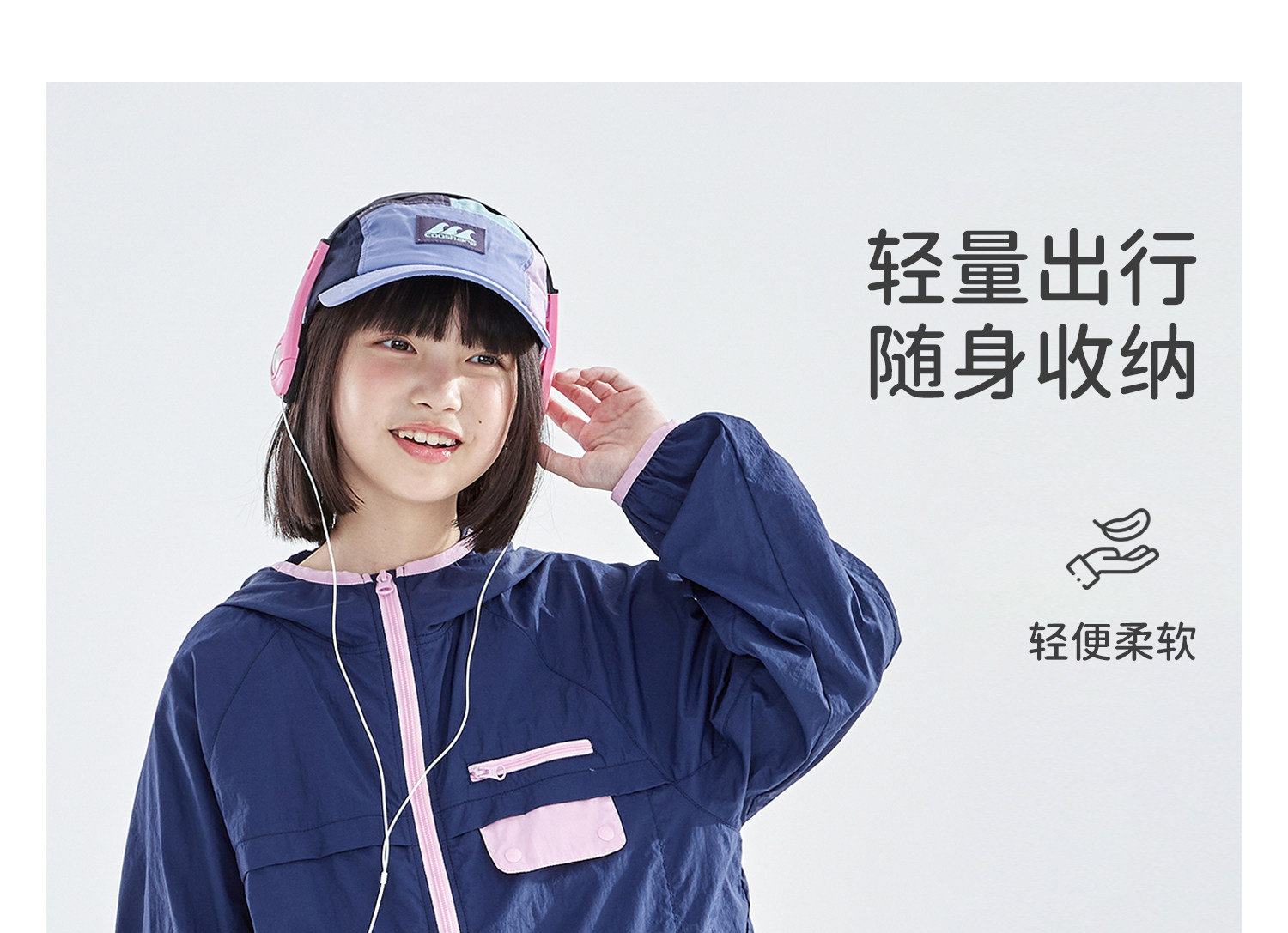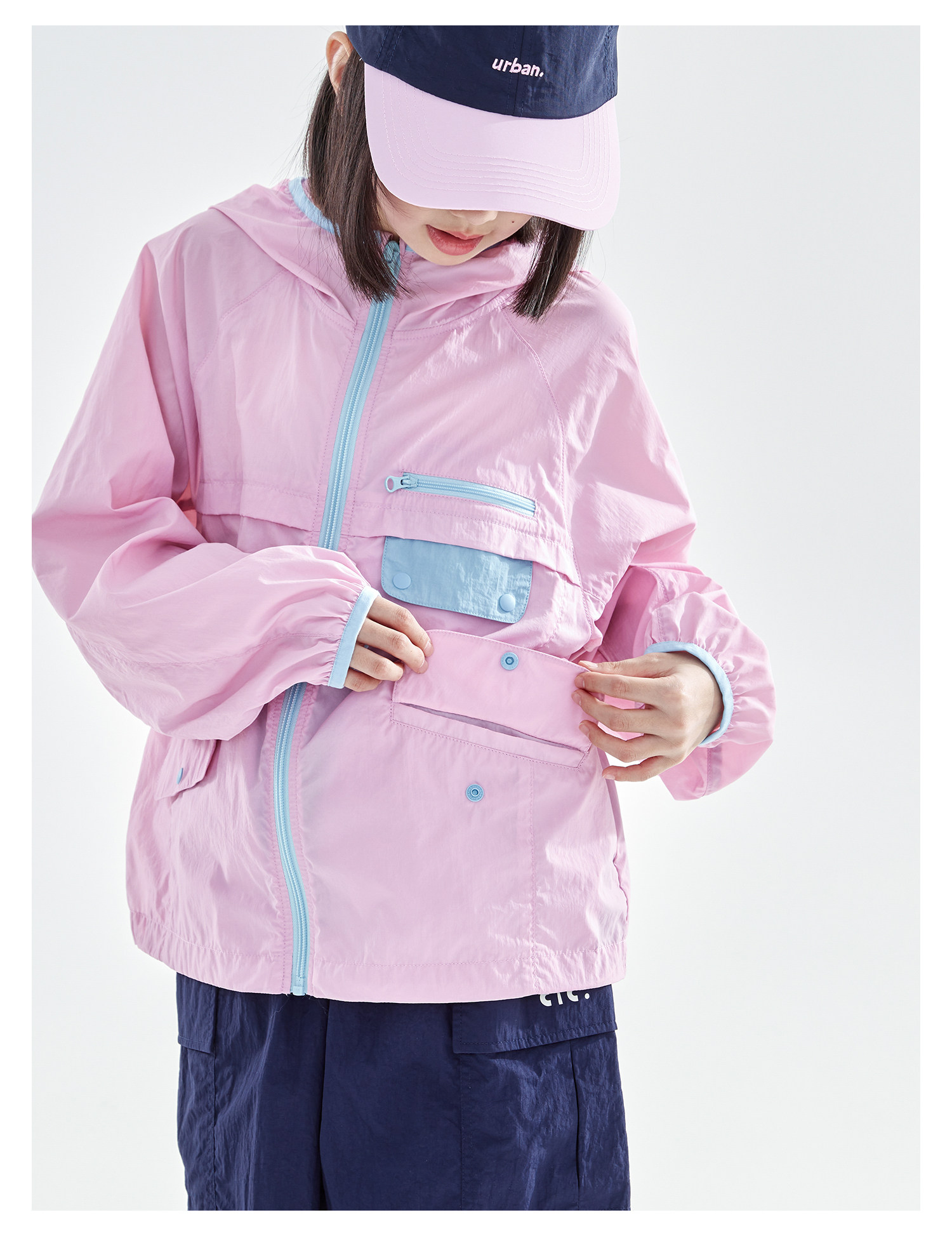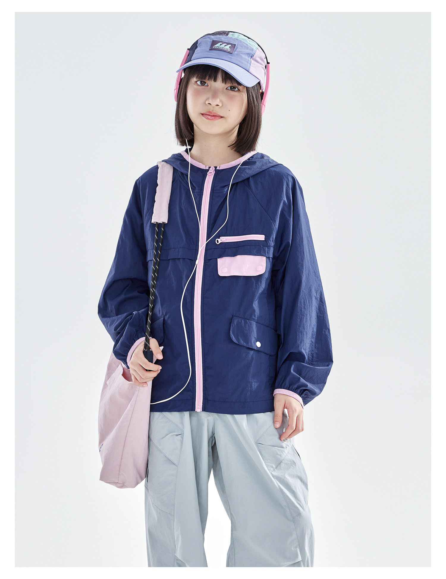 cicochild26年春季新款亲子中大女童轻量撞色外套防泼水连帽上衣