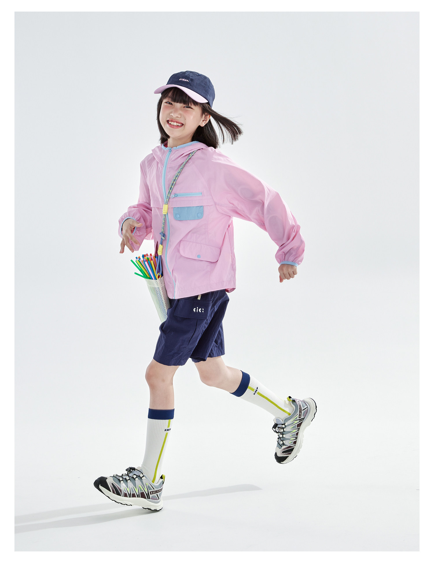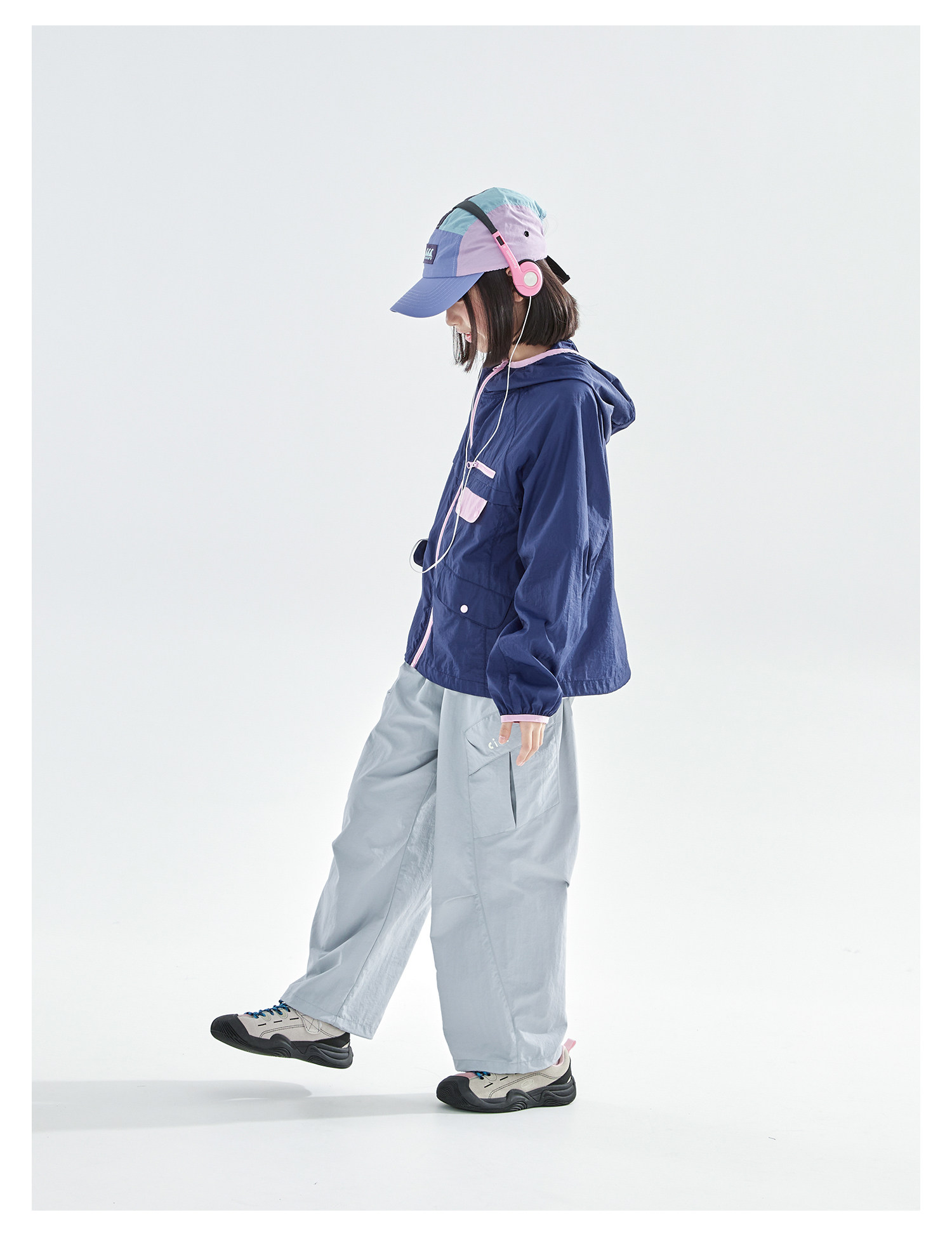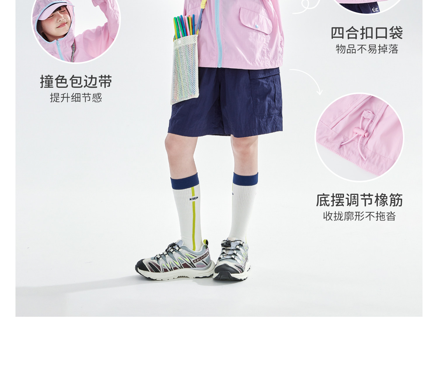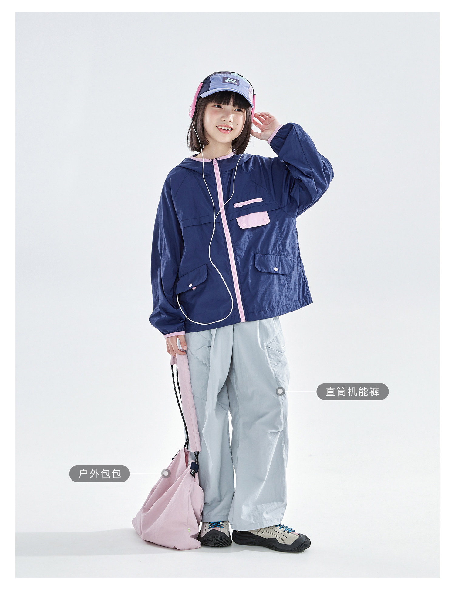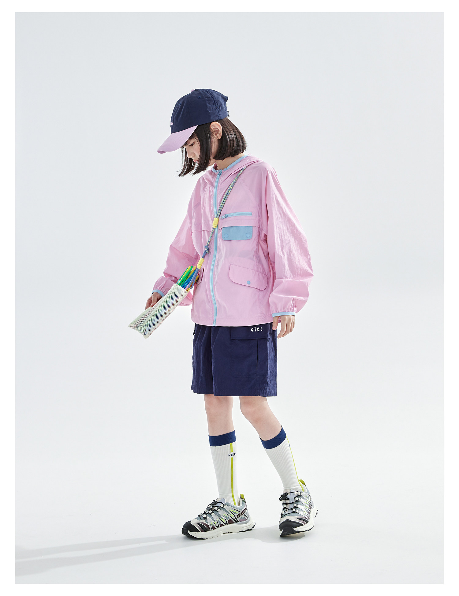 cicochild26年春季新款亲子中大女童轻量撞色外套防泼水连帽上衣