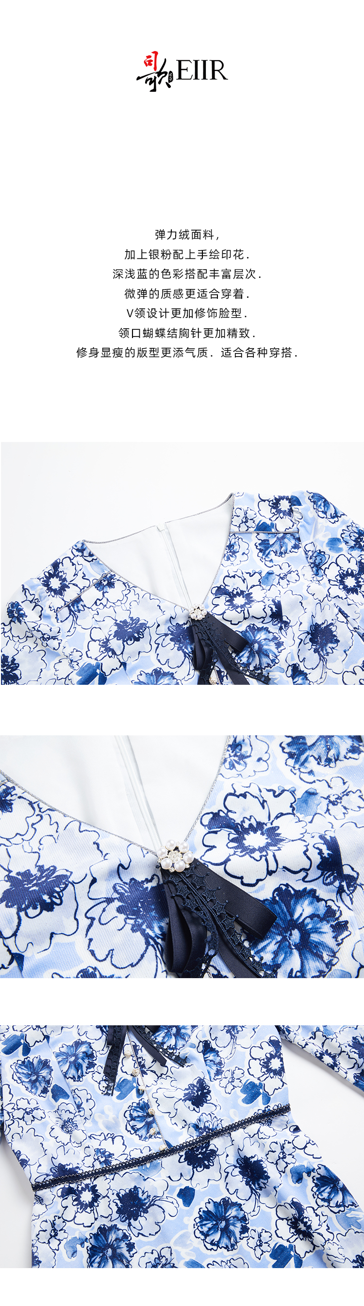 司歌印花灯芯绒连衣裙长袖显瘦端庄气质A881205