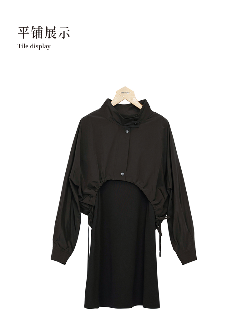 oldcolour黑色长袖连衣裙春季新款设计感小众气质两件套P12103407