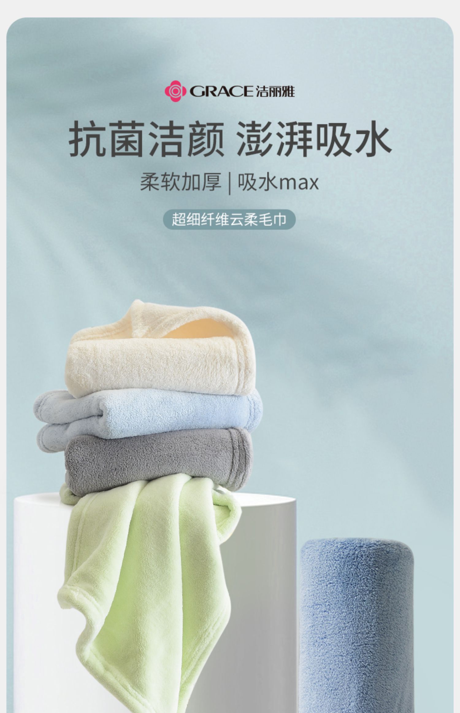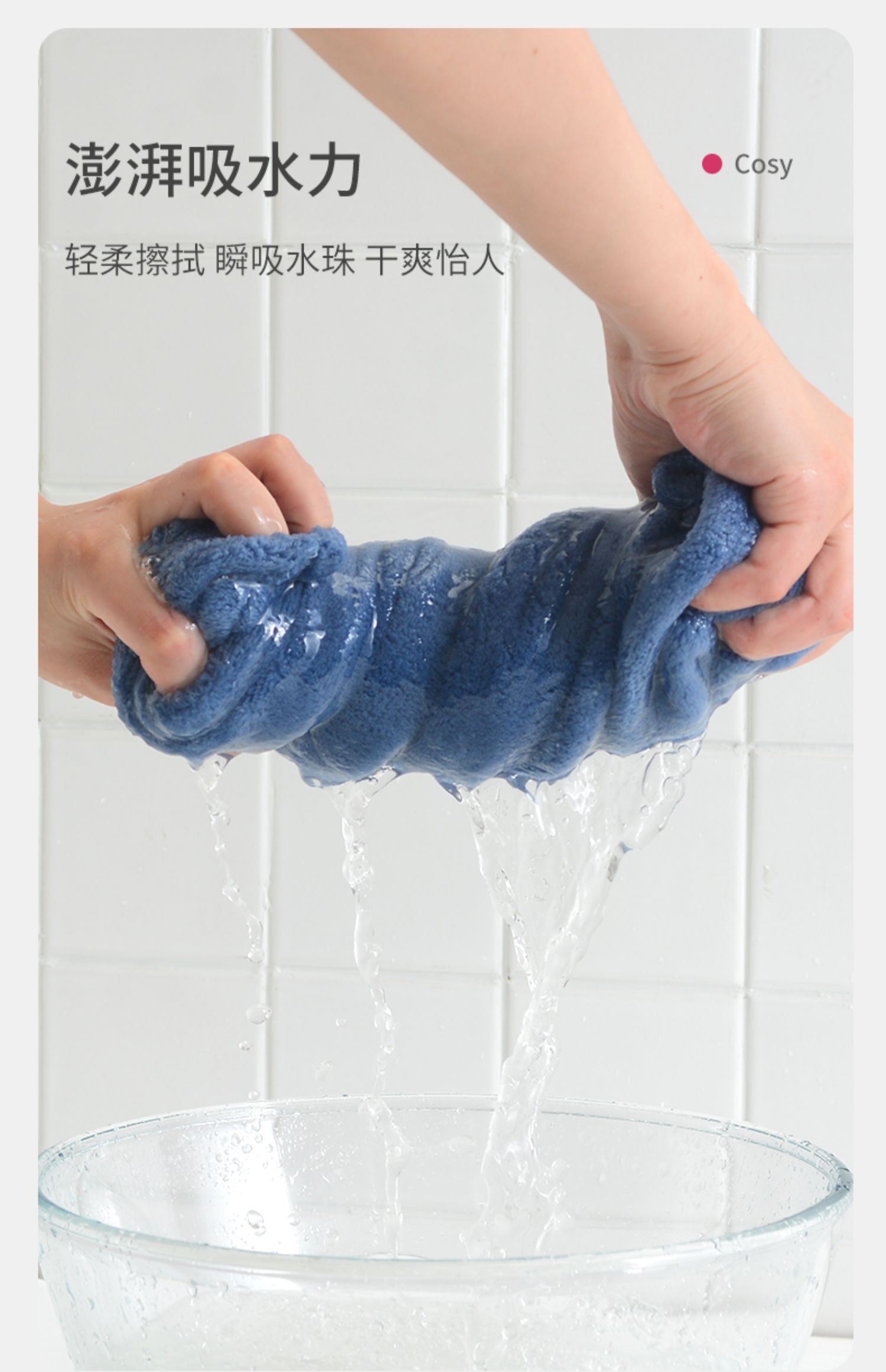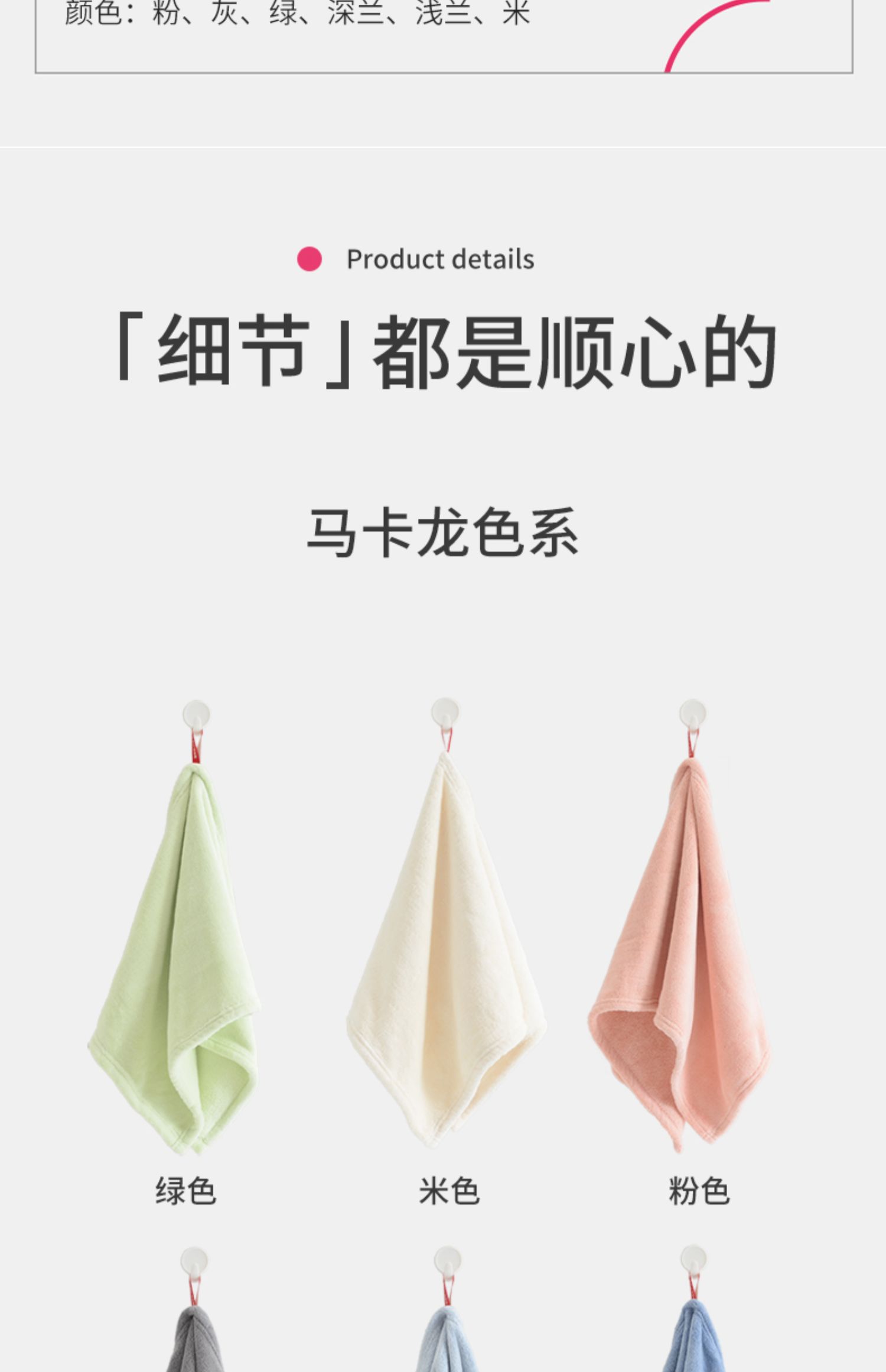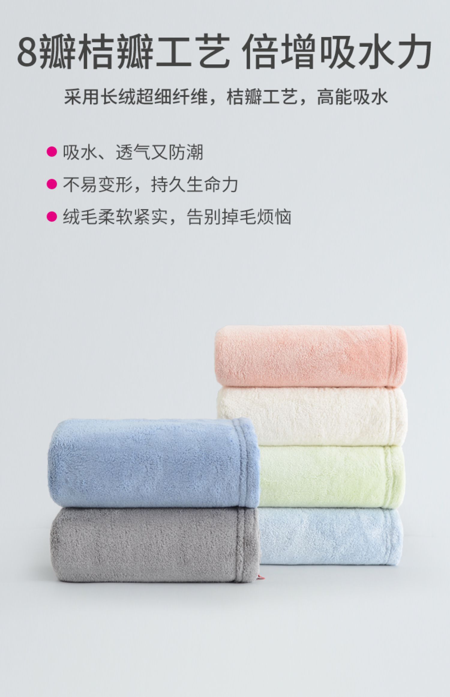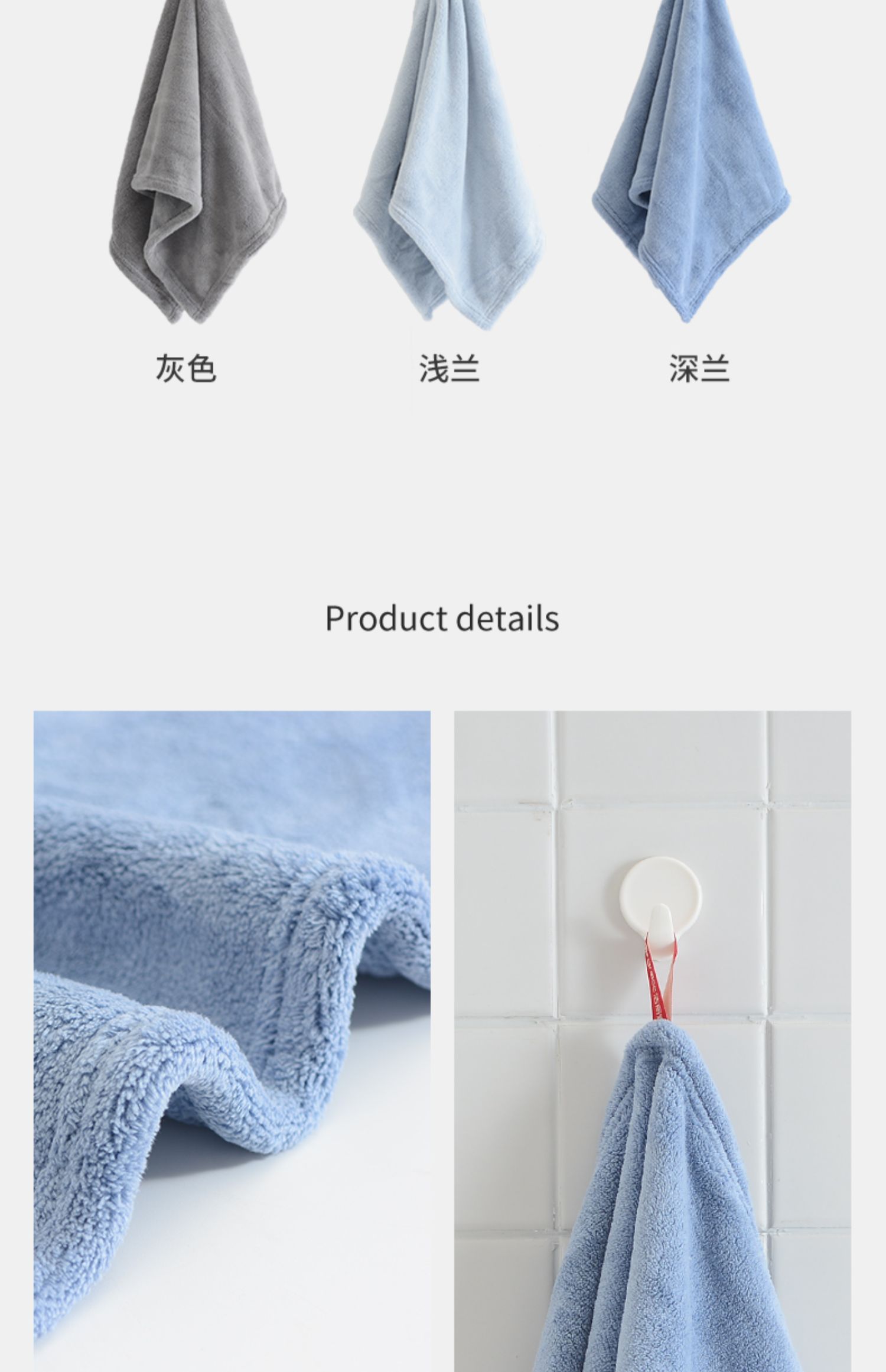 【珊瑚绒面巾带挂钩款】家用吸水毛巾不掉毛