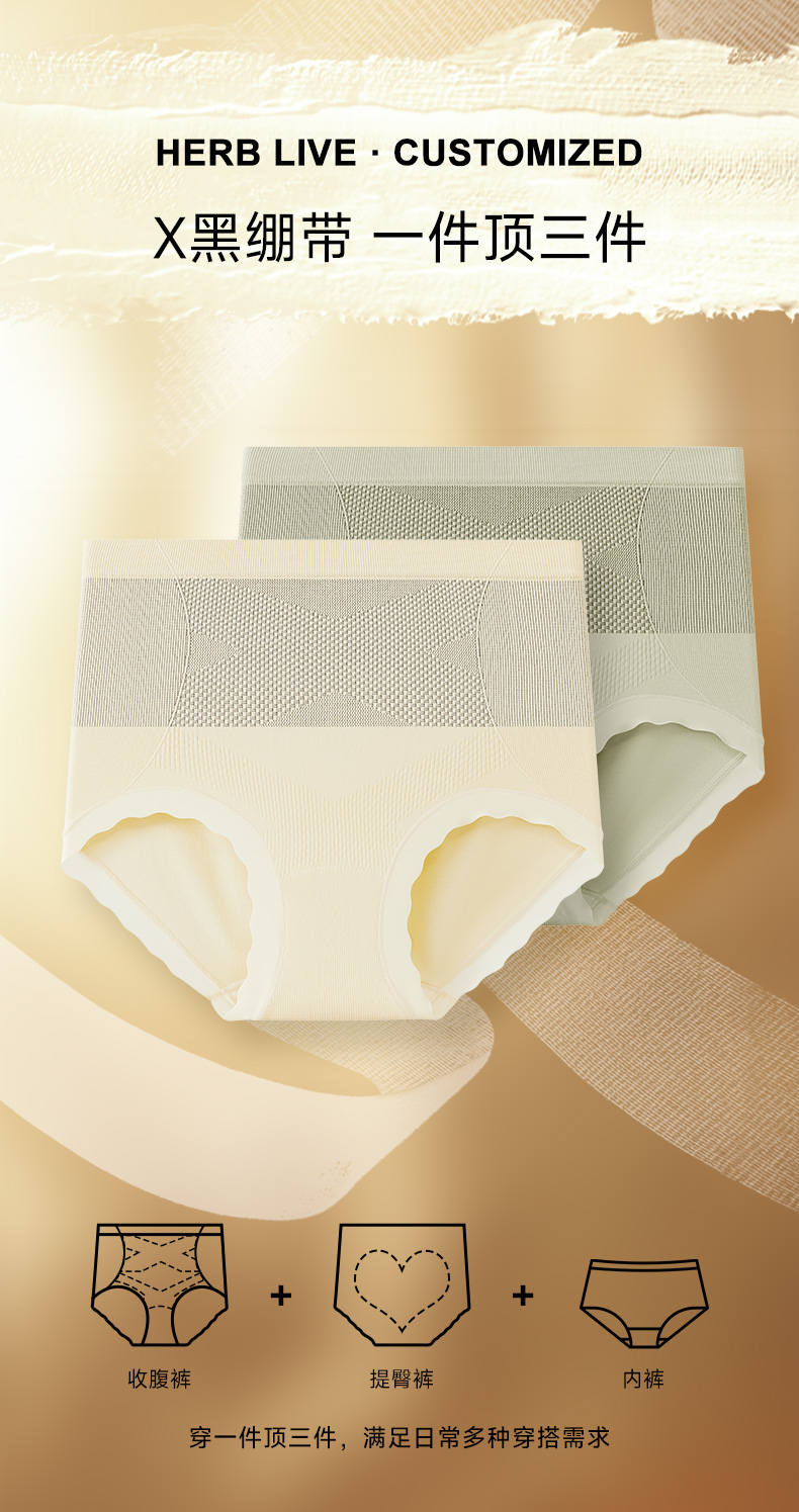 【草本初色】黑绷带轻塑裤2.0【7A抑菌】红山茶润亲肤高腰女士内裤CB