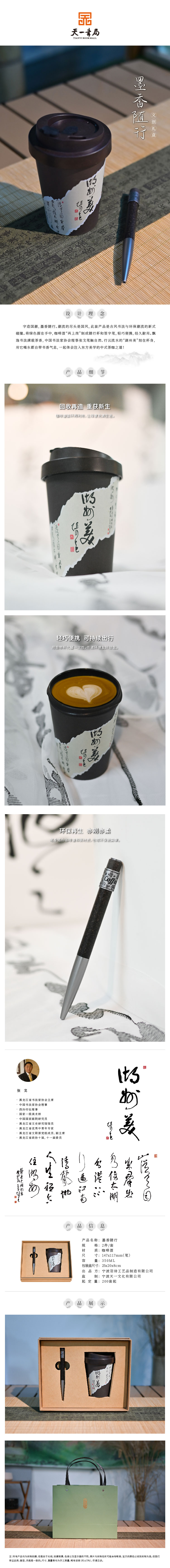 羽诗制造出品 墨香随行咖啡渣随行杯签字笔环保礼盒套装