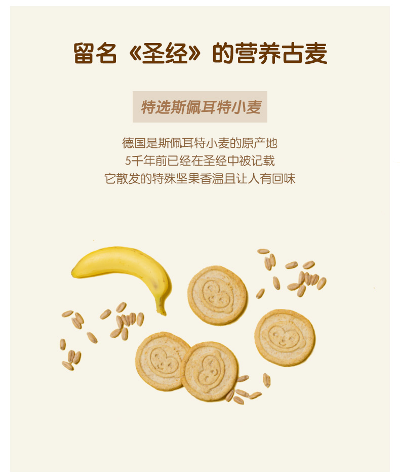 英国Little Freddie 小皮 斯佩耳特小麦香蕉饼干80g 宝宝婴儿零食磨牙 1岁+