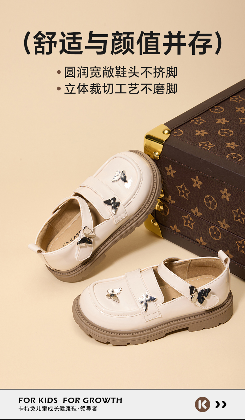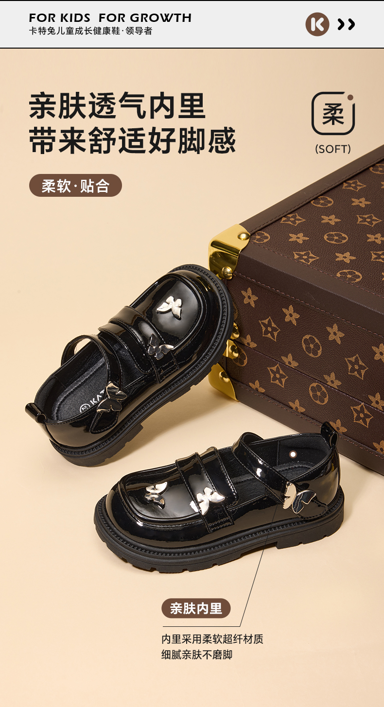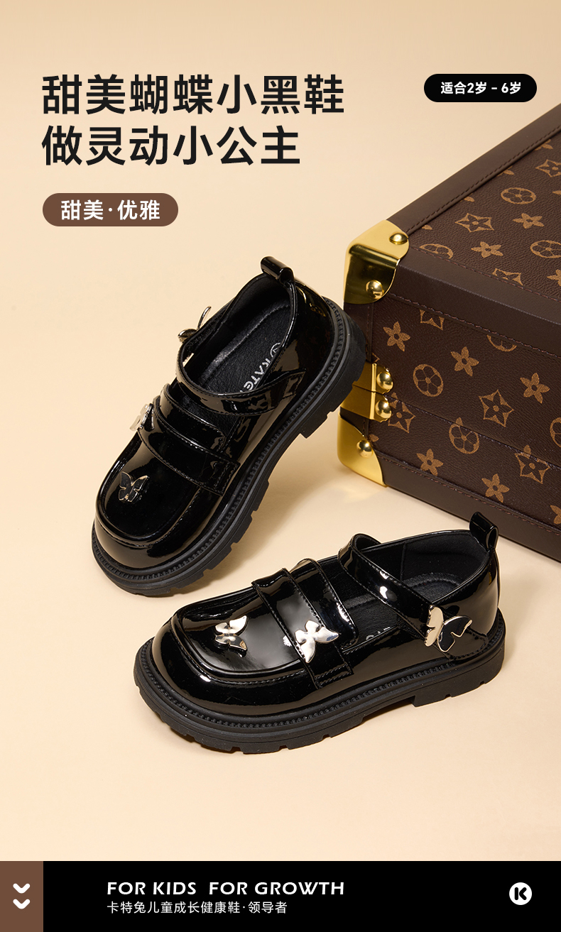 卡特兔女童公主鞋2025秋季新品黑色皮鞋女童演出鞋女孩洋气礼服鞋