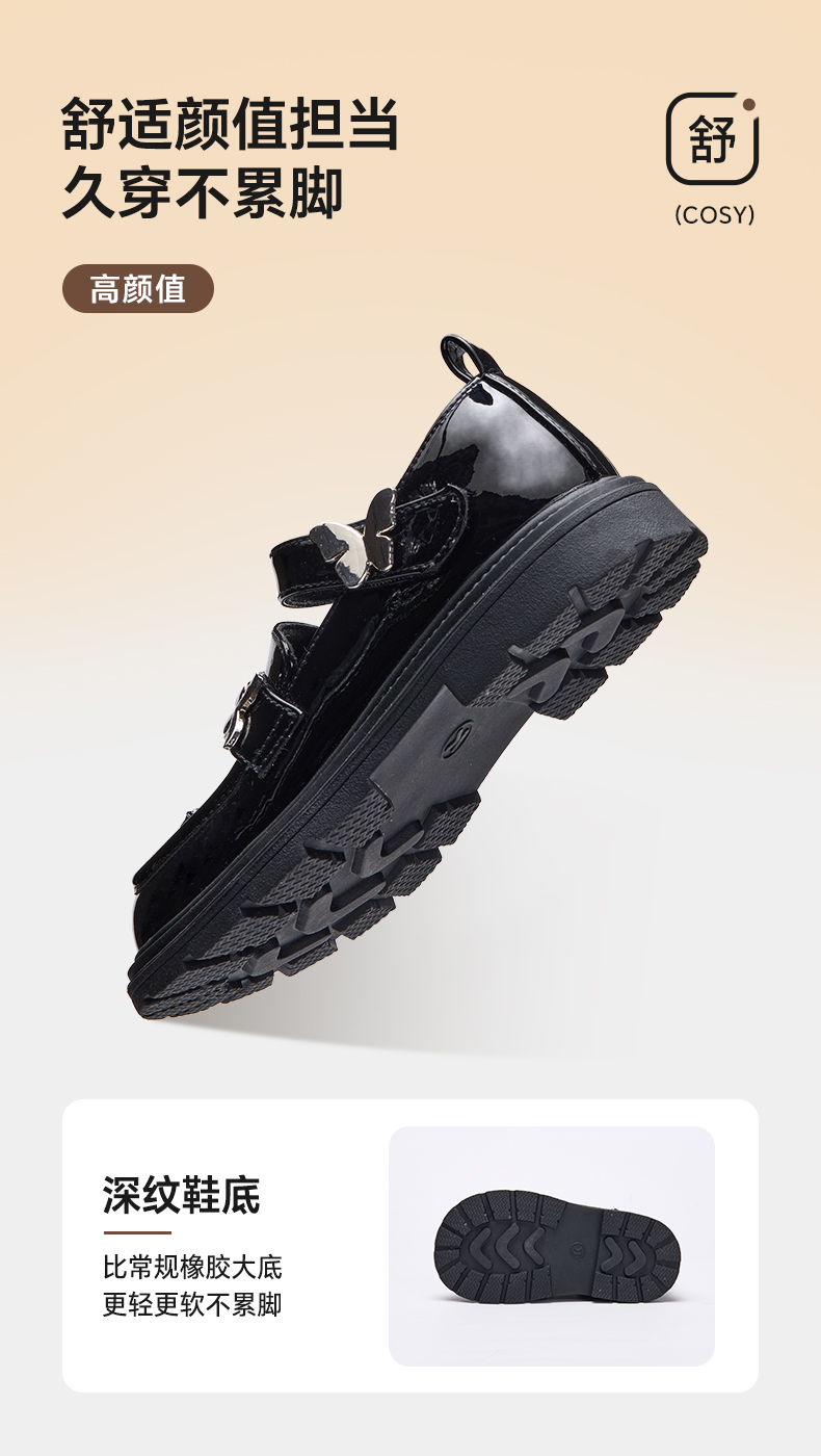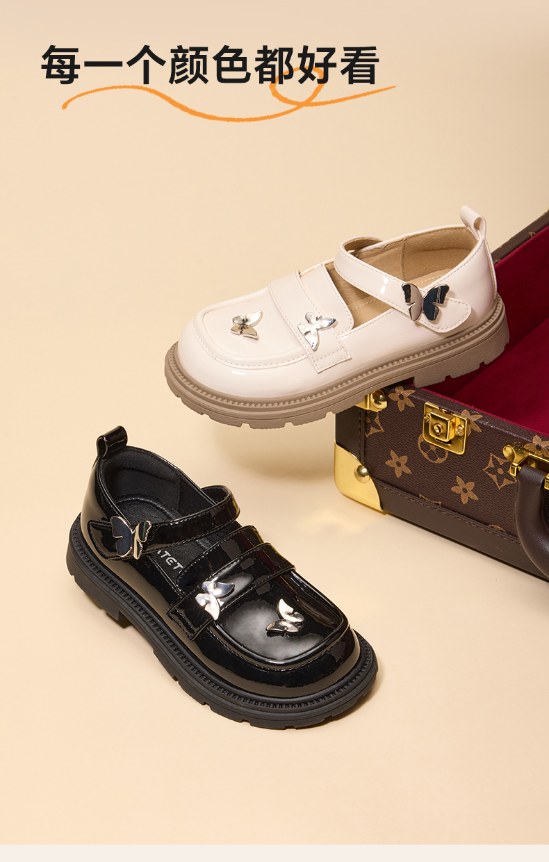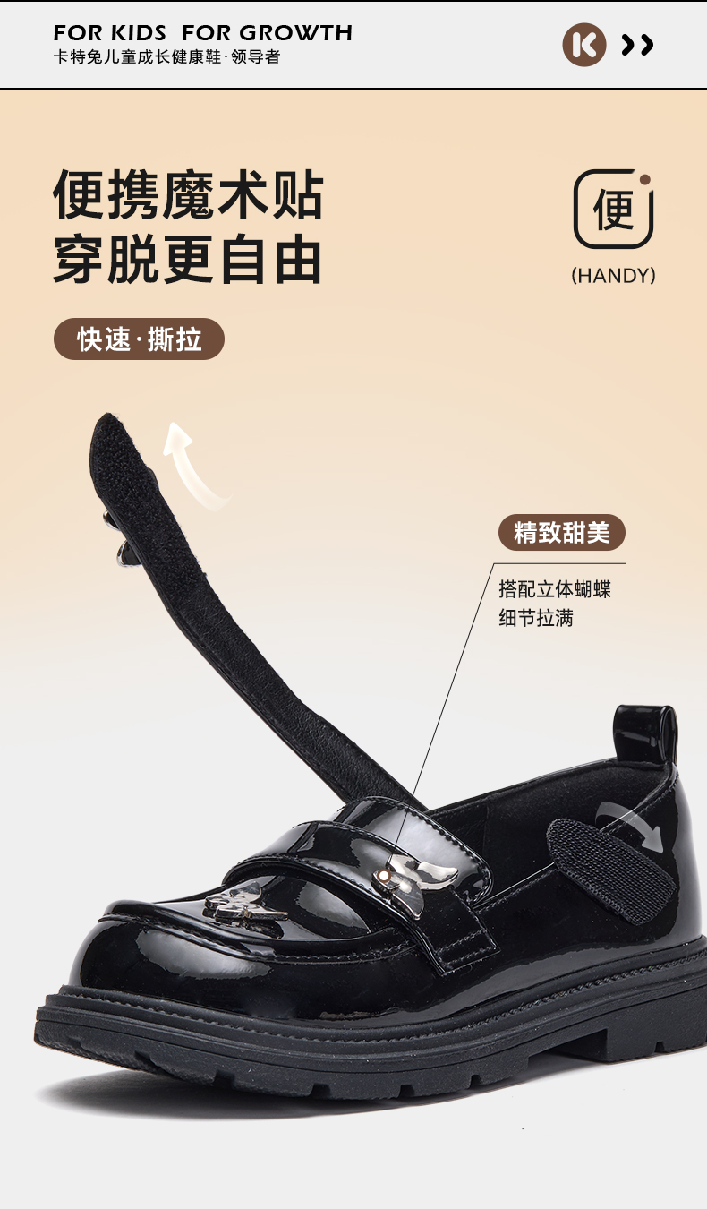卡特兔女童公主鞋2025秋季新品黑色皮鞋女童演出鞋女孩洋气礼服鞋