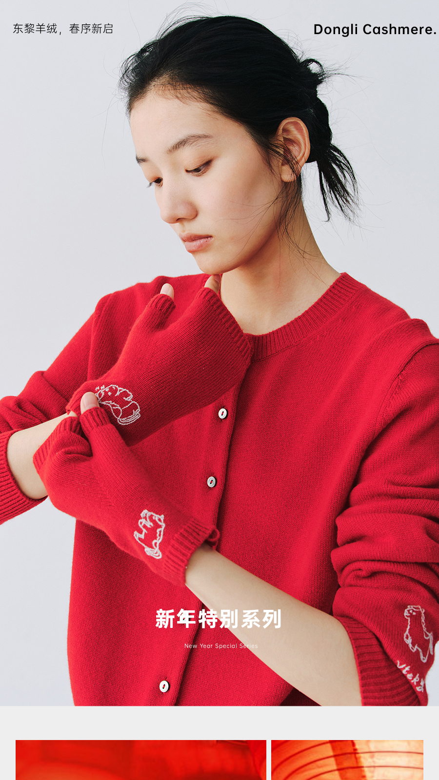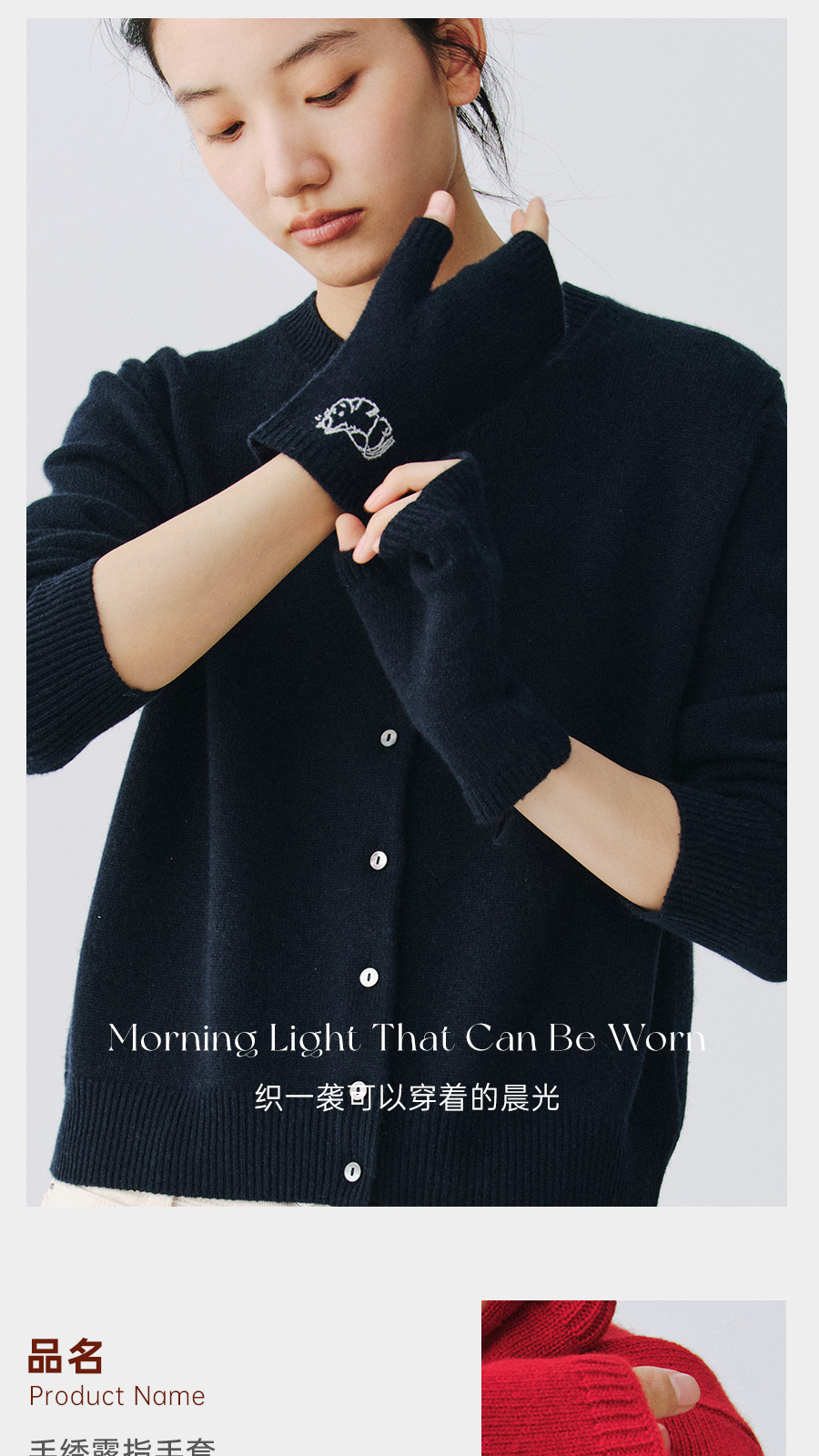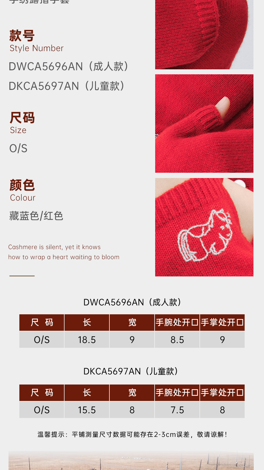 东黎 • 新年款 山羊绒刺绣露指手套 5696