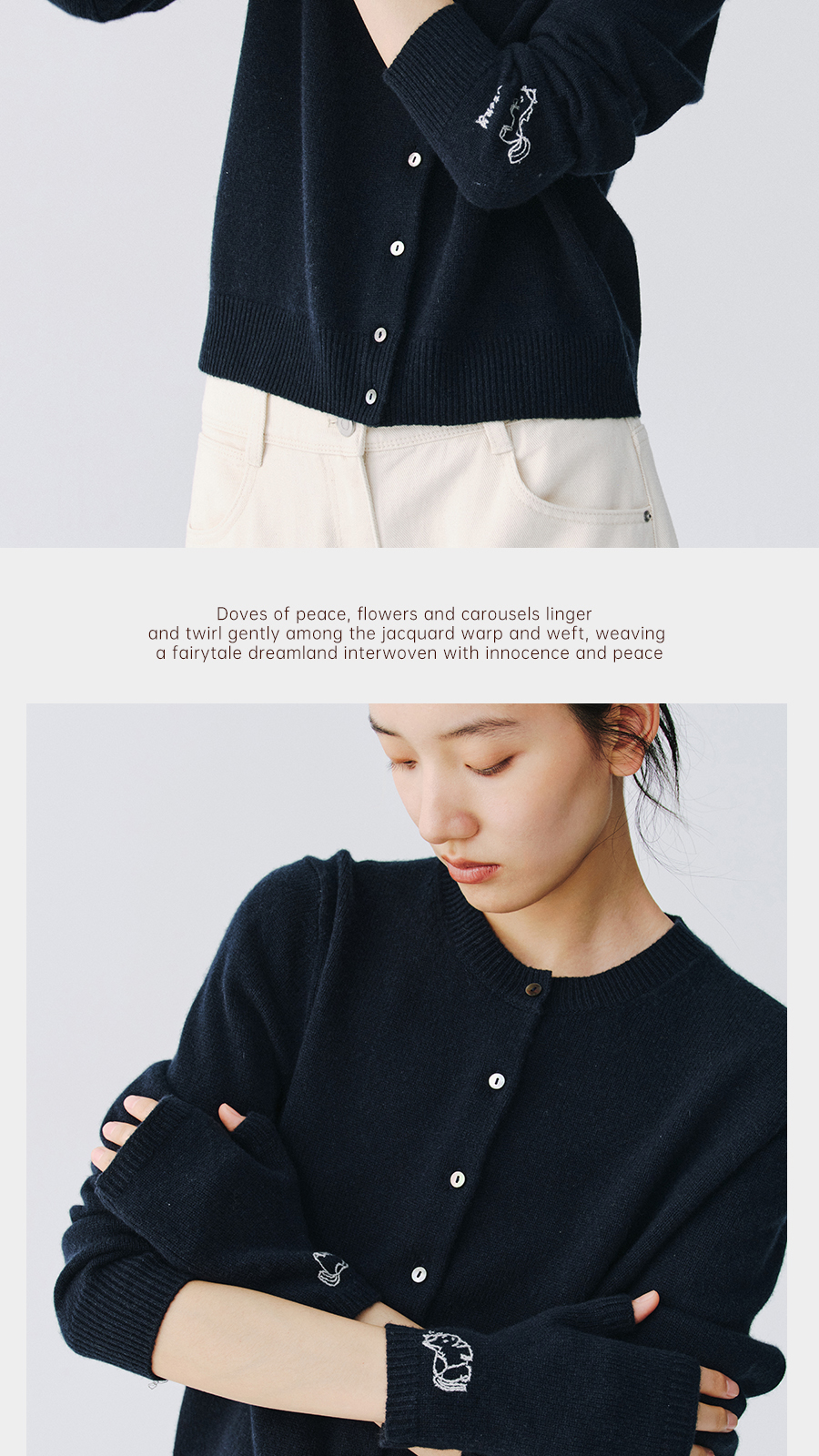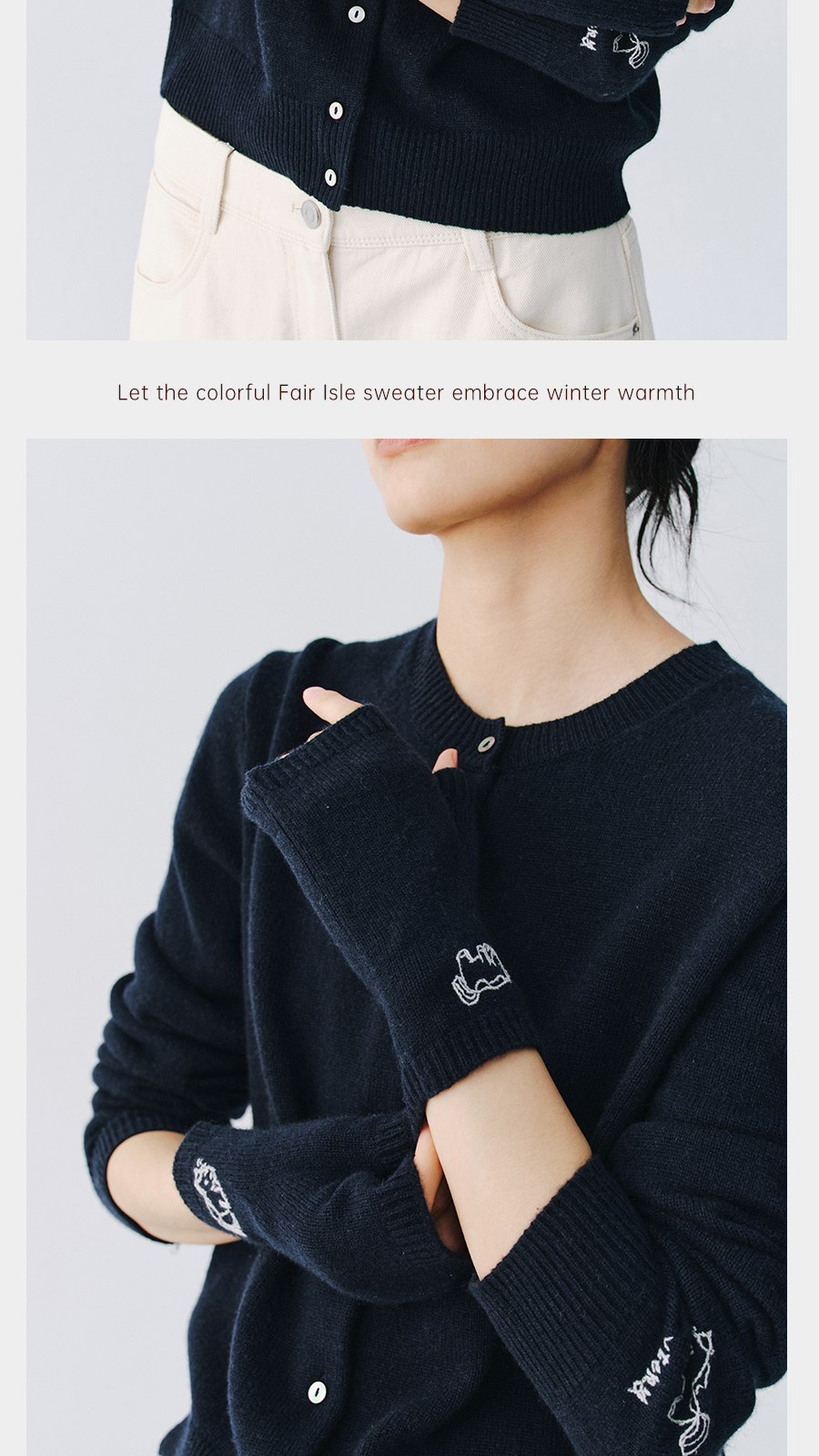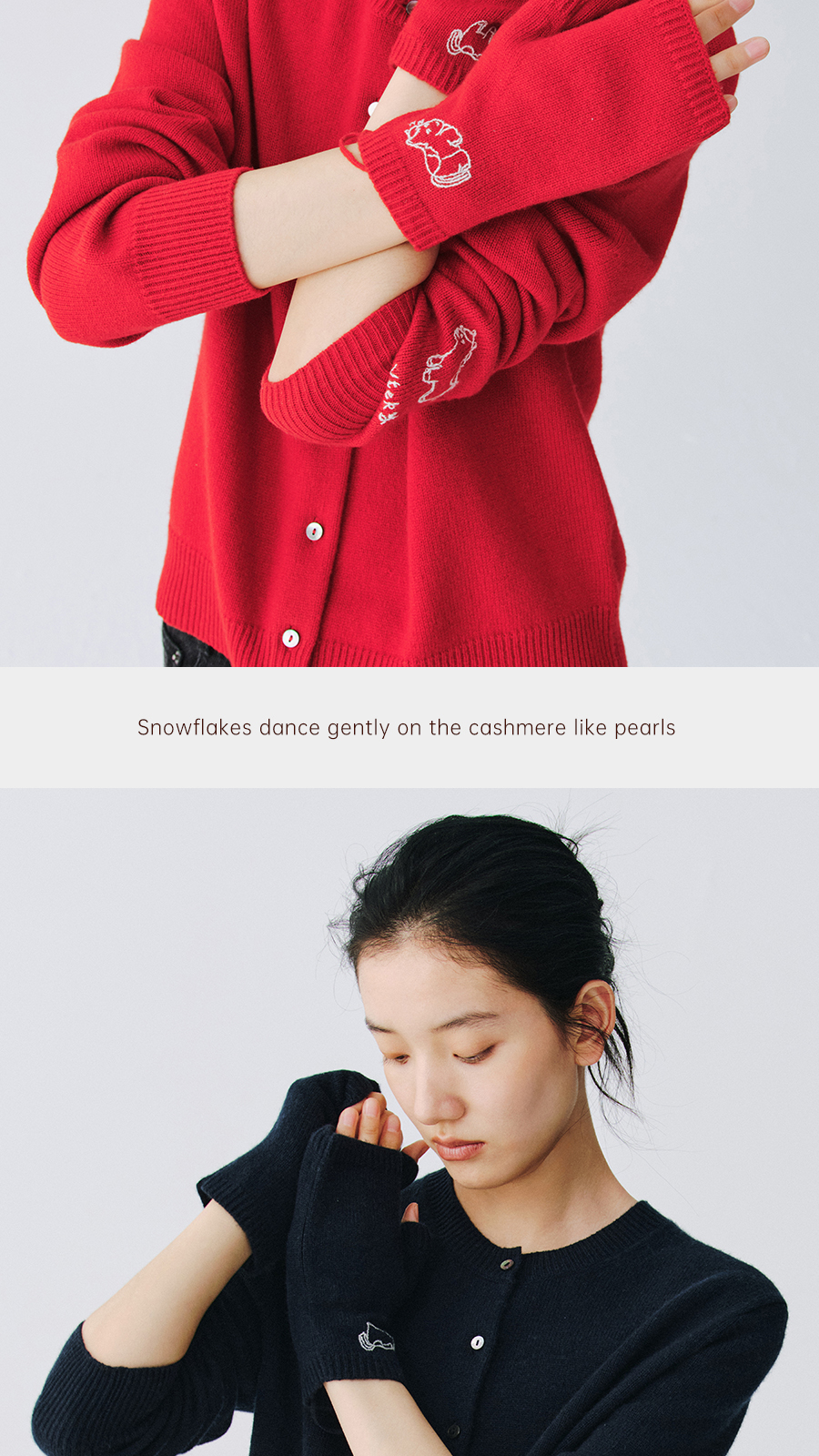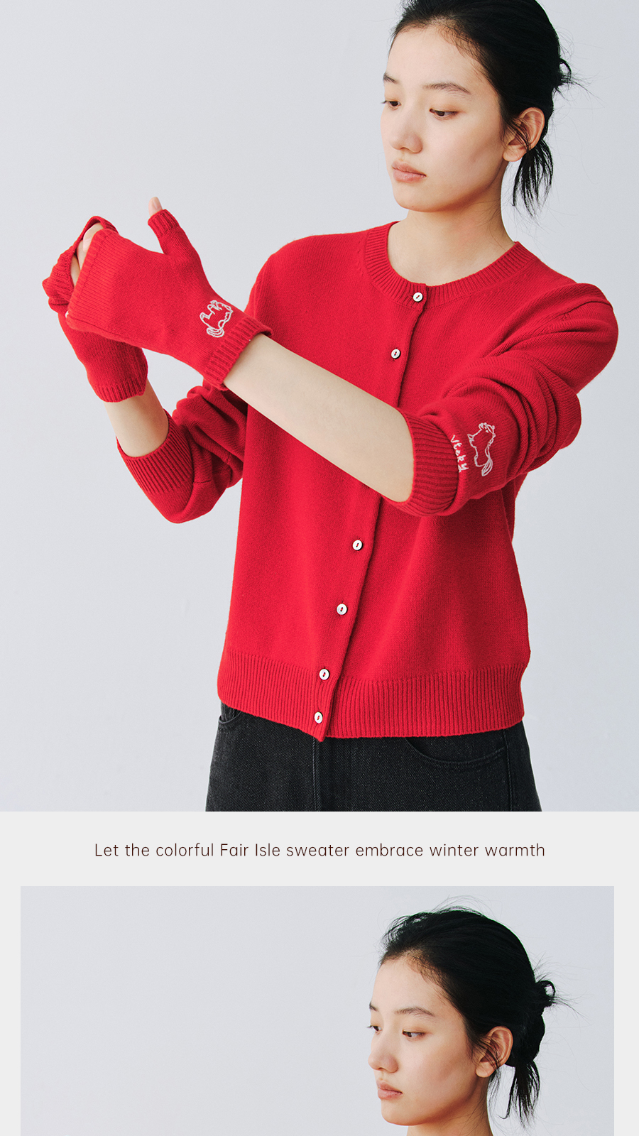 东黎 • 新年款 山羊绒刺绣露指手套 5696