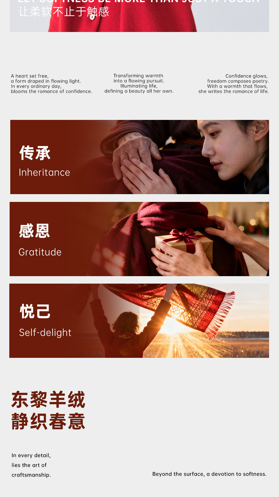 东黎羊绒是赤峰东荣集团自主品牌,自有牧场/羊绒制品全产业链优势,实现了羊绒从“牧场”到“商场”的华丽转变。