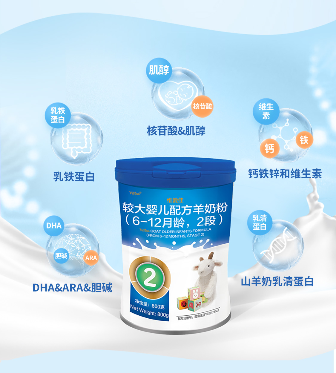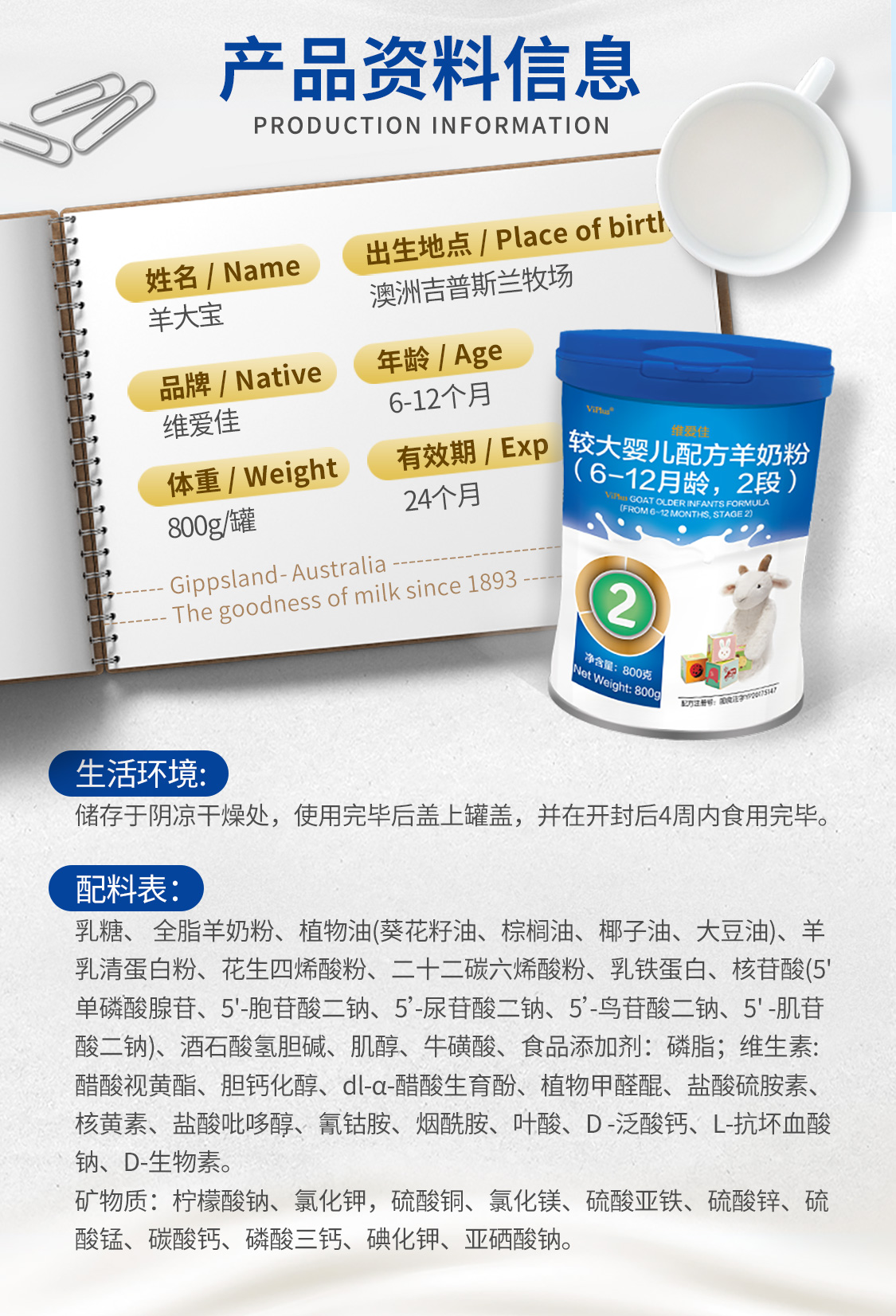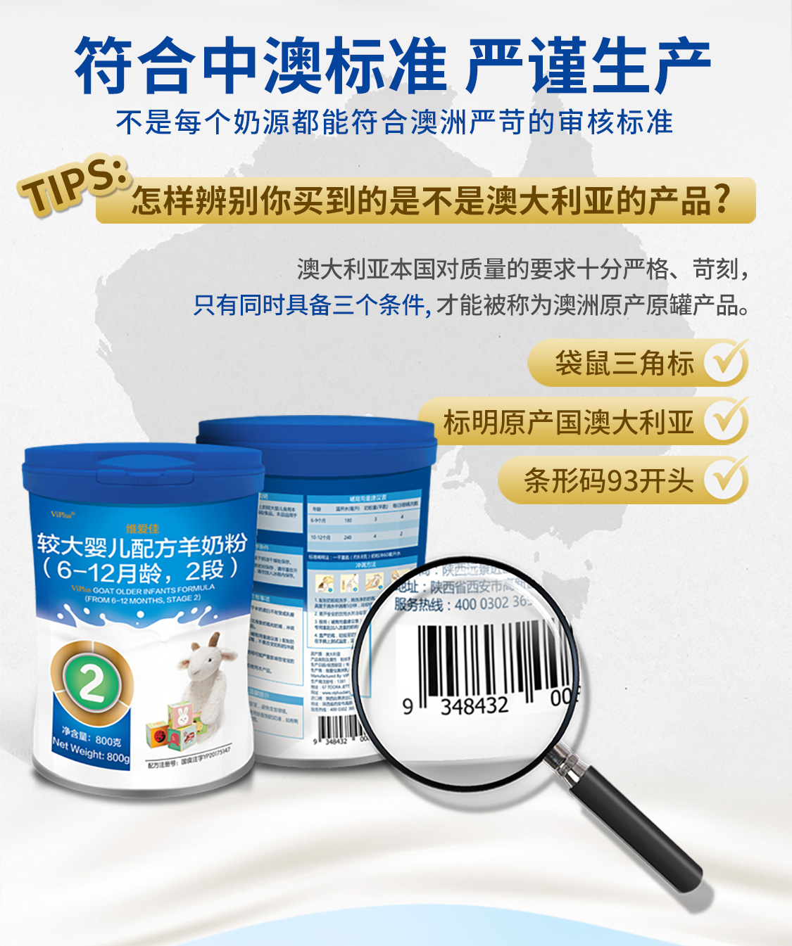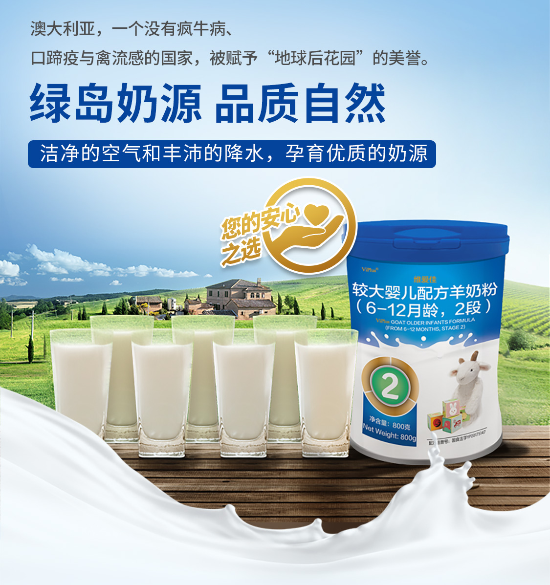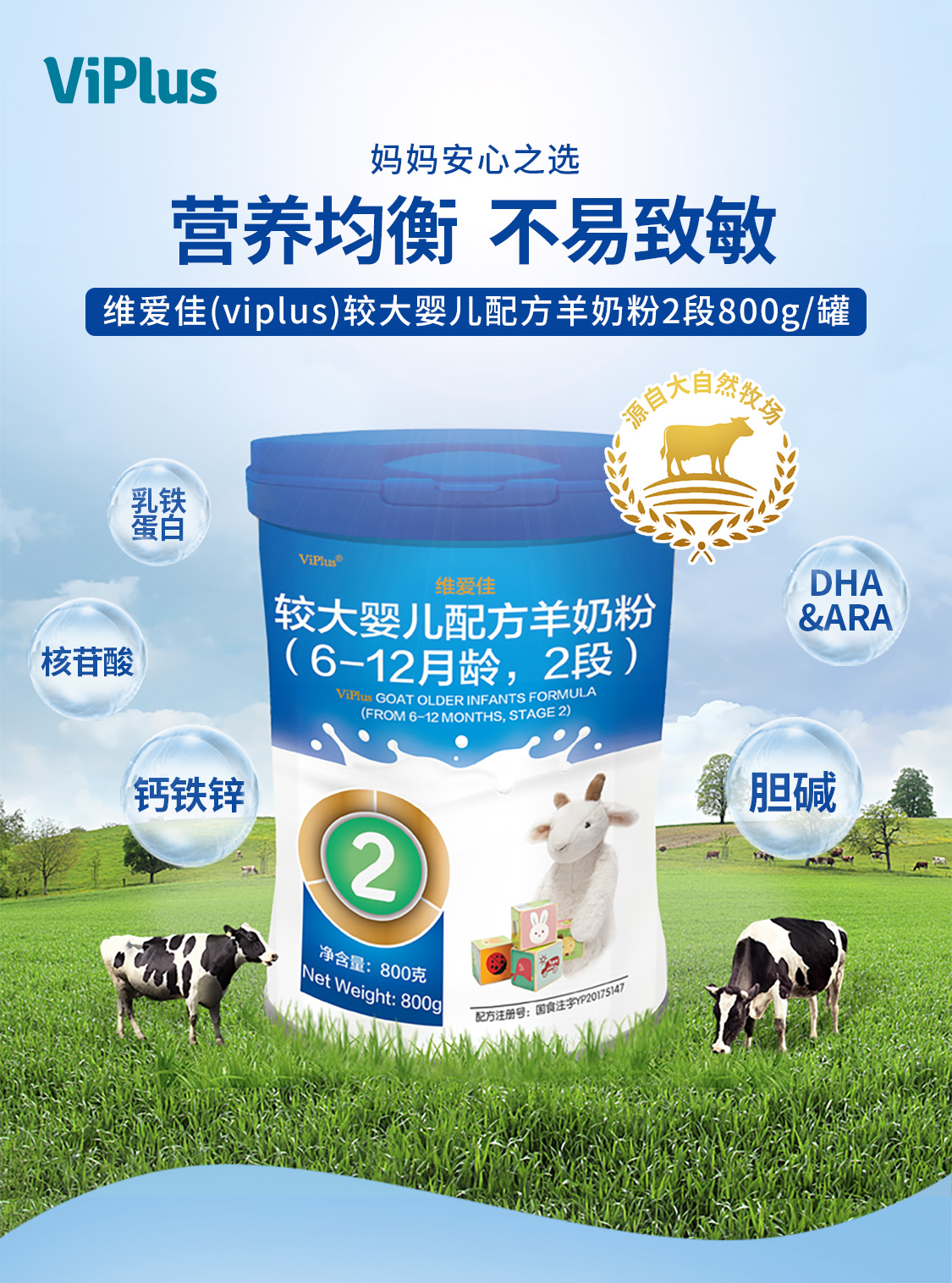 澳洲进 维爱佳Viplus婴儿配方羊奶粉2段 乳铁蛋白 DHA ARA 6-12月 800g罐【维爱佳】