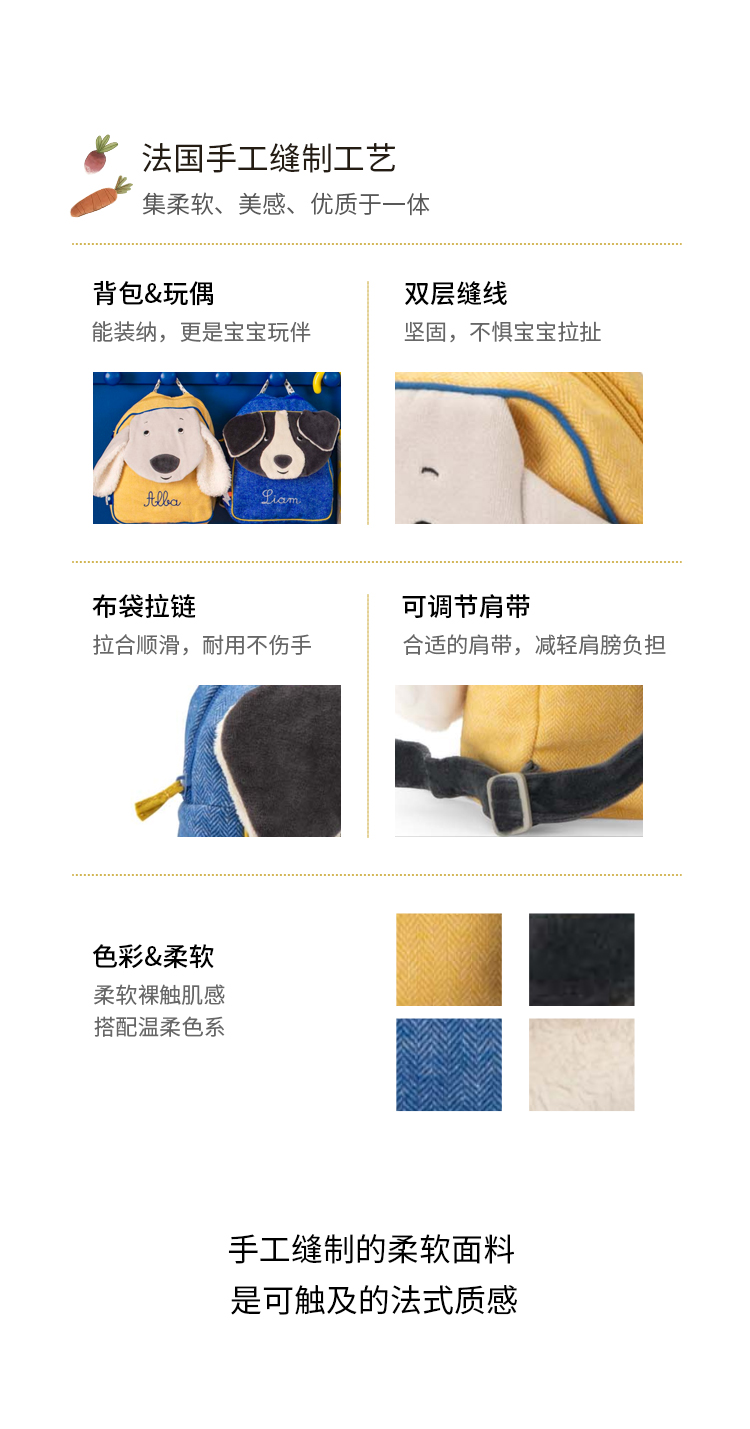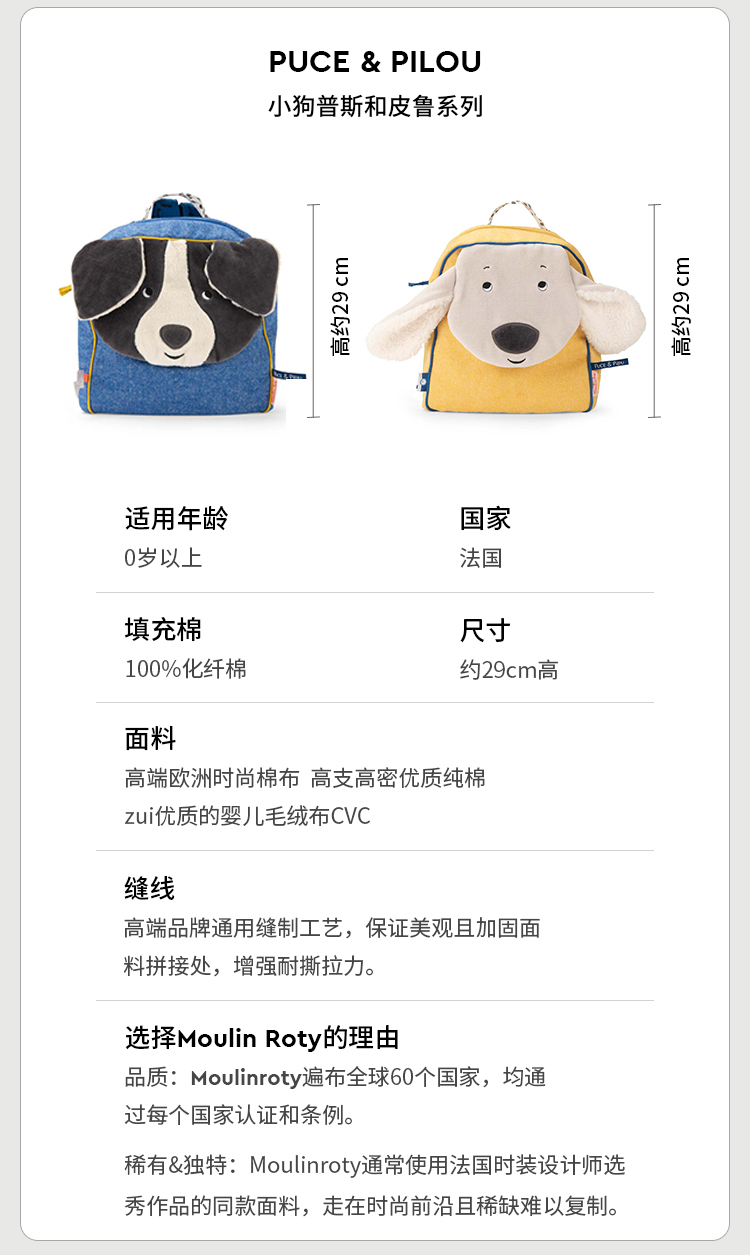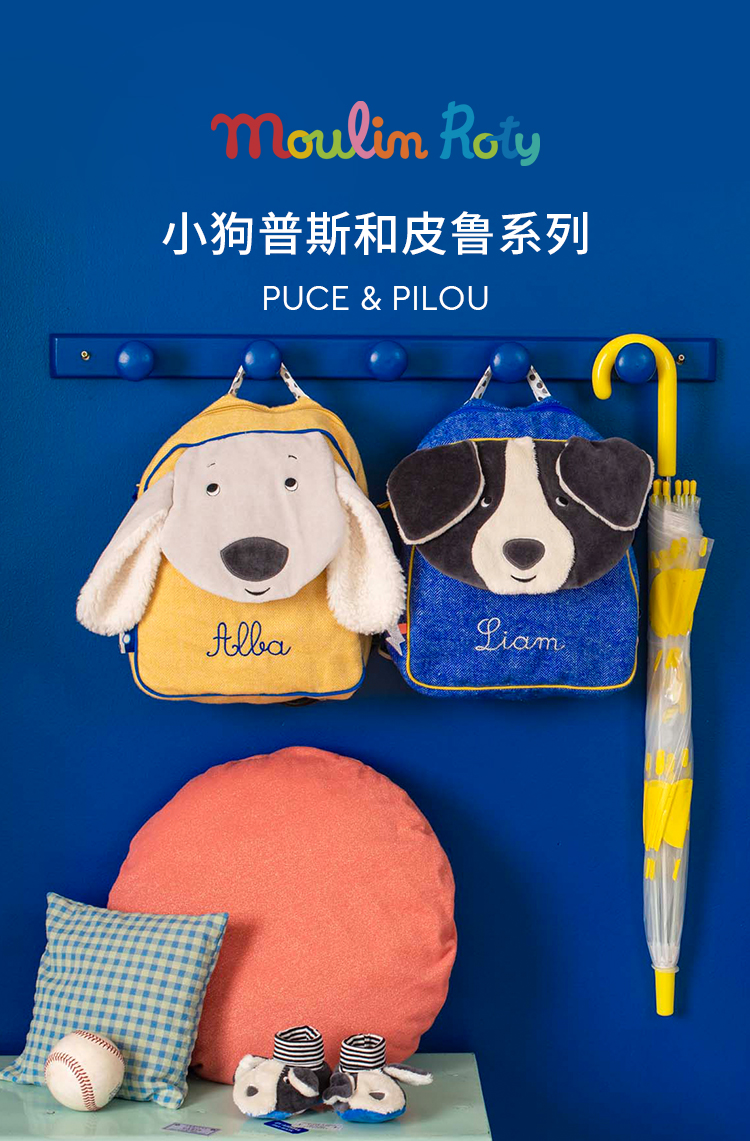 Moulin Roty 小狗普斯儿童背包 儿童背包 适合年龄3岁+ 小狗普斯与皮鲁系列 法国玩具 684018