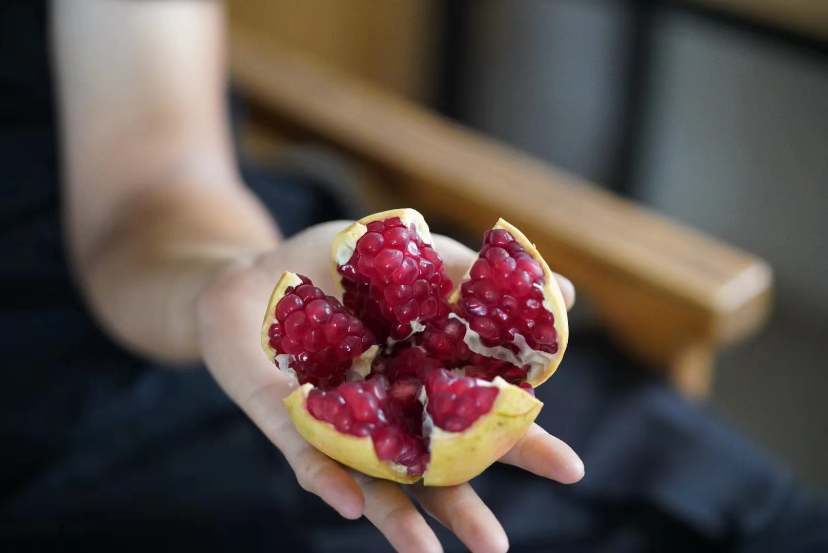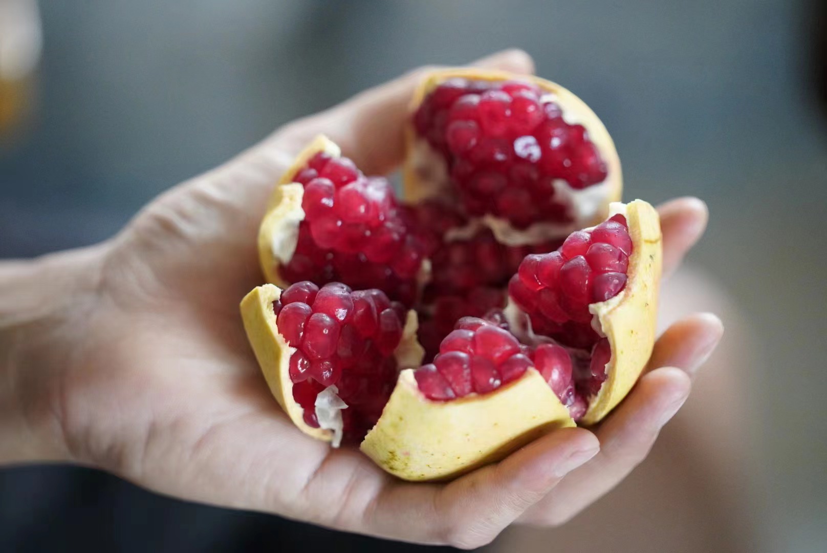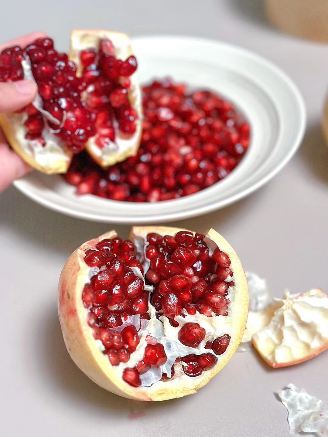 4、掰开石榴即可享用。