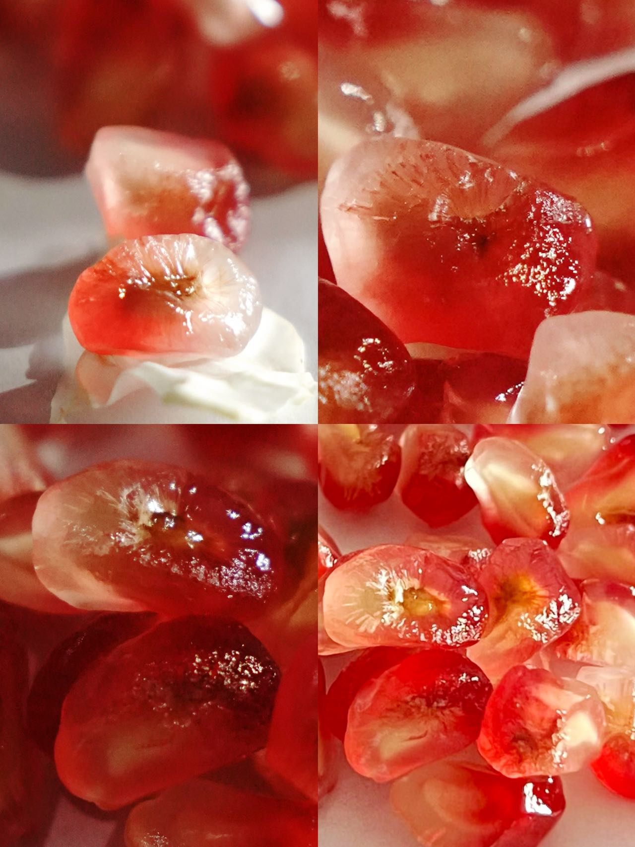 表现特征:石榴籽出现雪花状花纹,类似碎玻璃,出现玻璃花是石榴完全成熟的表现之一(出现玻璃花的石榴甜度口感会更佳)