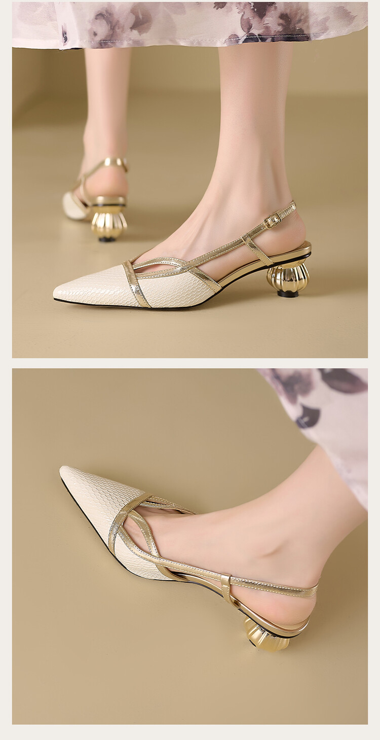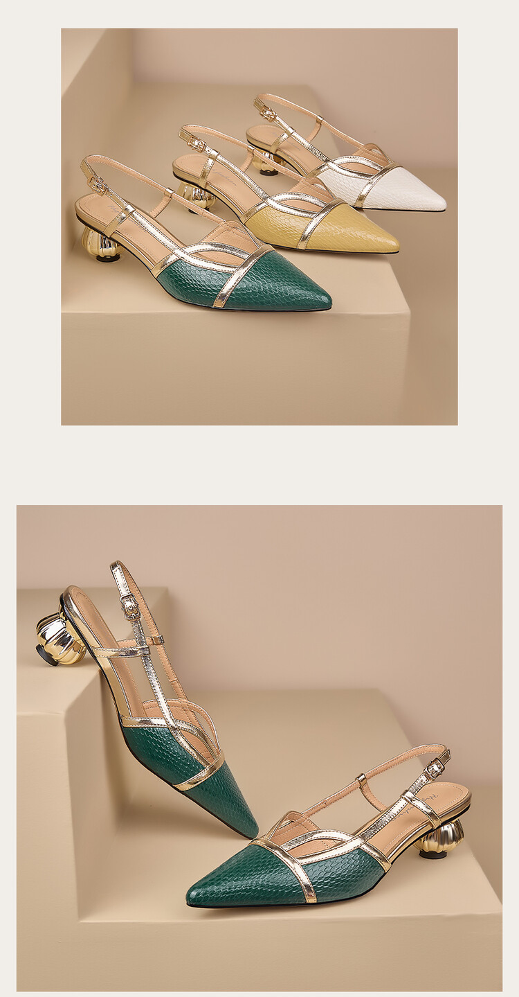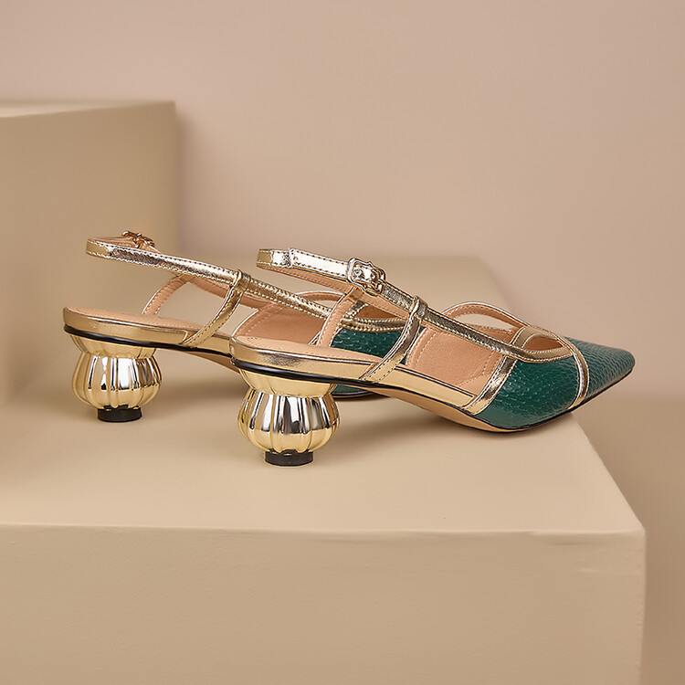 【预售5天】夏季新款鞋子尖头爆款南瓜跟拼色包头后空搭扣时装凉鞋MBJR&820