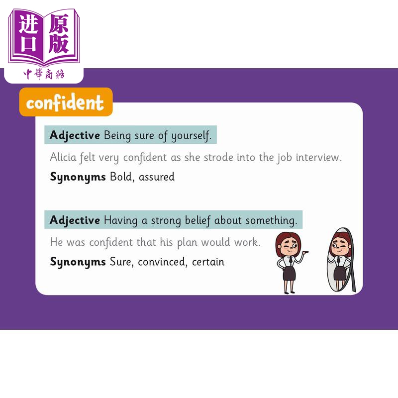 这些明亮多彩的卡片非常适合扩大学生的词汇量,而且非常适合 9 至 11 岁的孩子。每张卡片的正面都有一个单词,背面有清晰的定义和例句,以及有用的同义词和反义词。