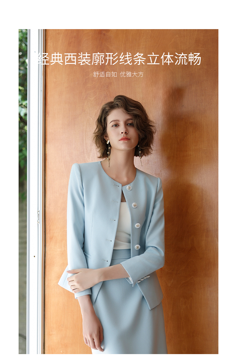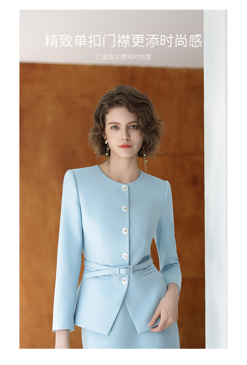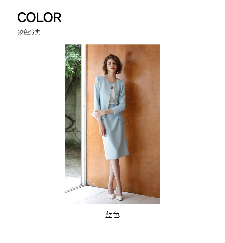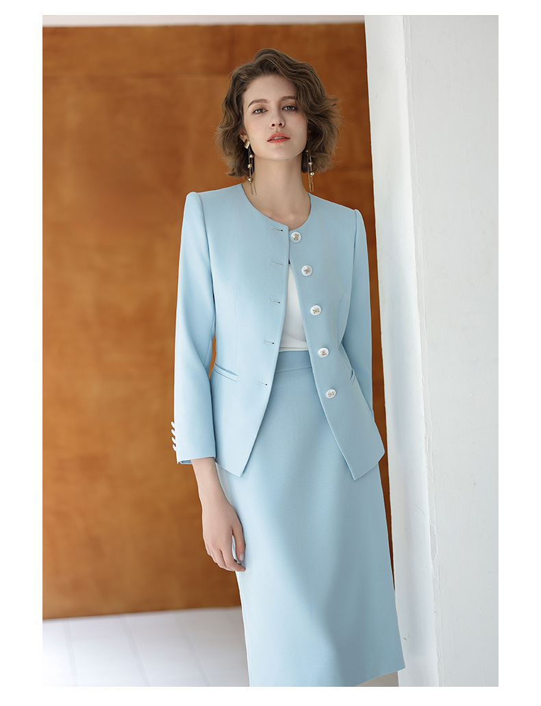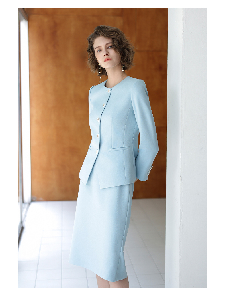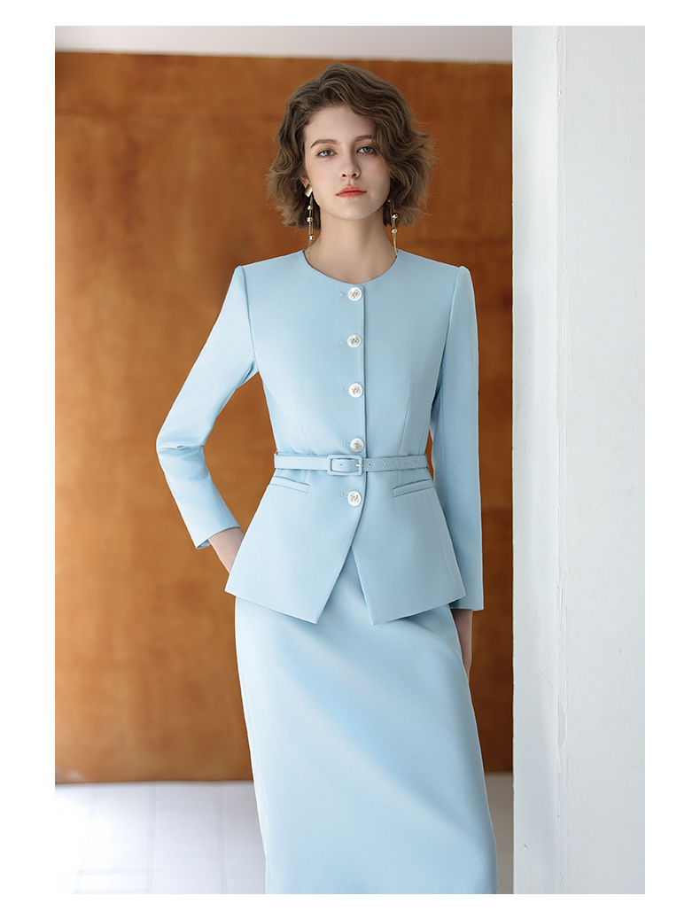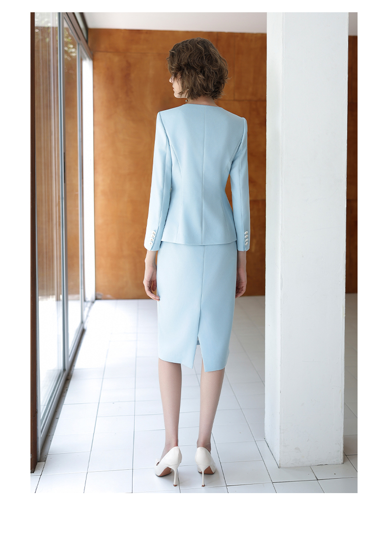 IWY/蓝色长袖西装半裙职业装正式场合商务招待两件套气质时尚套裙CS14306