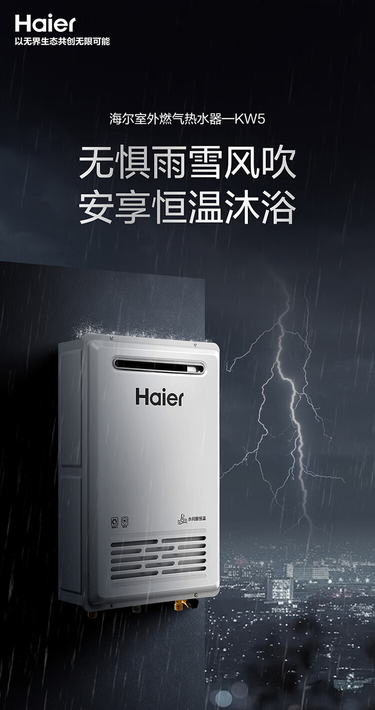 海尔(Haier)【KW5】16升燃气热水器天然气室外机【国家补贴15%】水伺服恒温 一级静音 抗风防雨防晒防寒安全