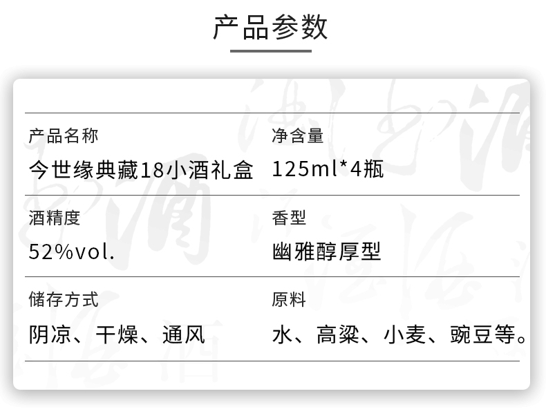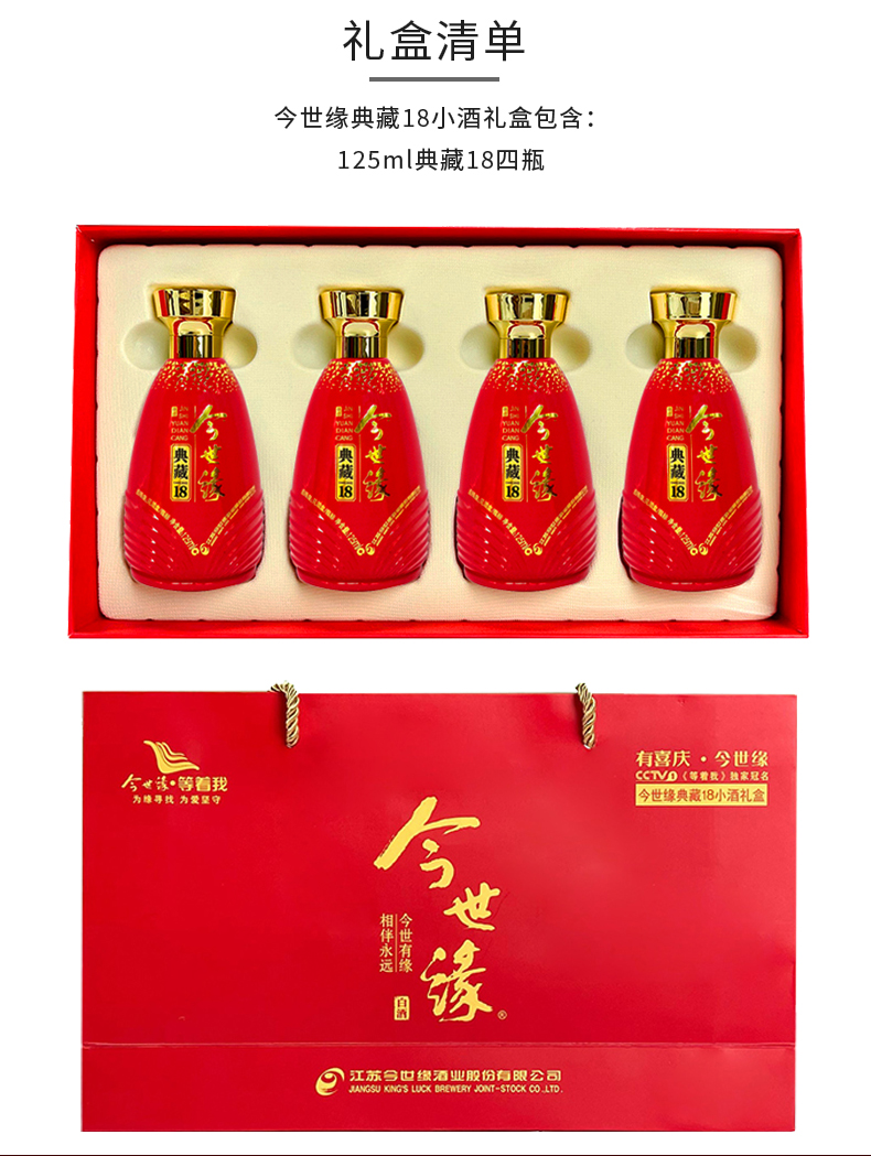 今世缘白酒 典藏18小酒礼盒 125ml52度*4瓶