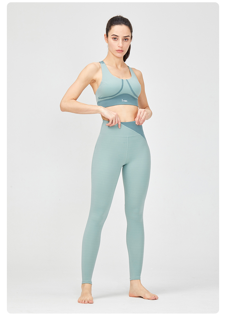 IYOGA高腰健身裤提臀紧身弹力跑步夏亲肤莱卡N66透气撞色瑜伽裤女k9-064