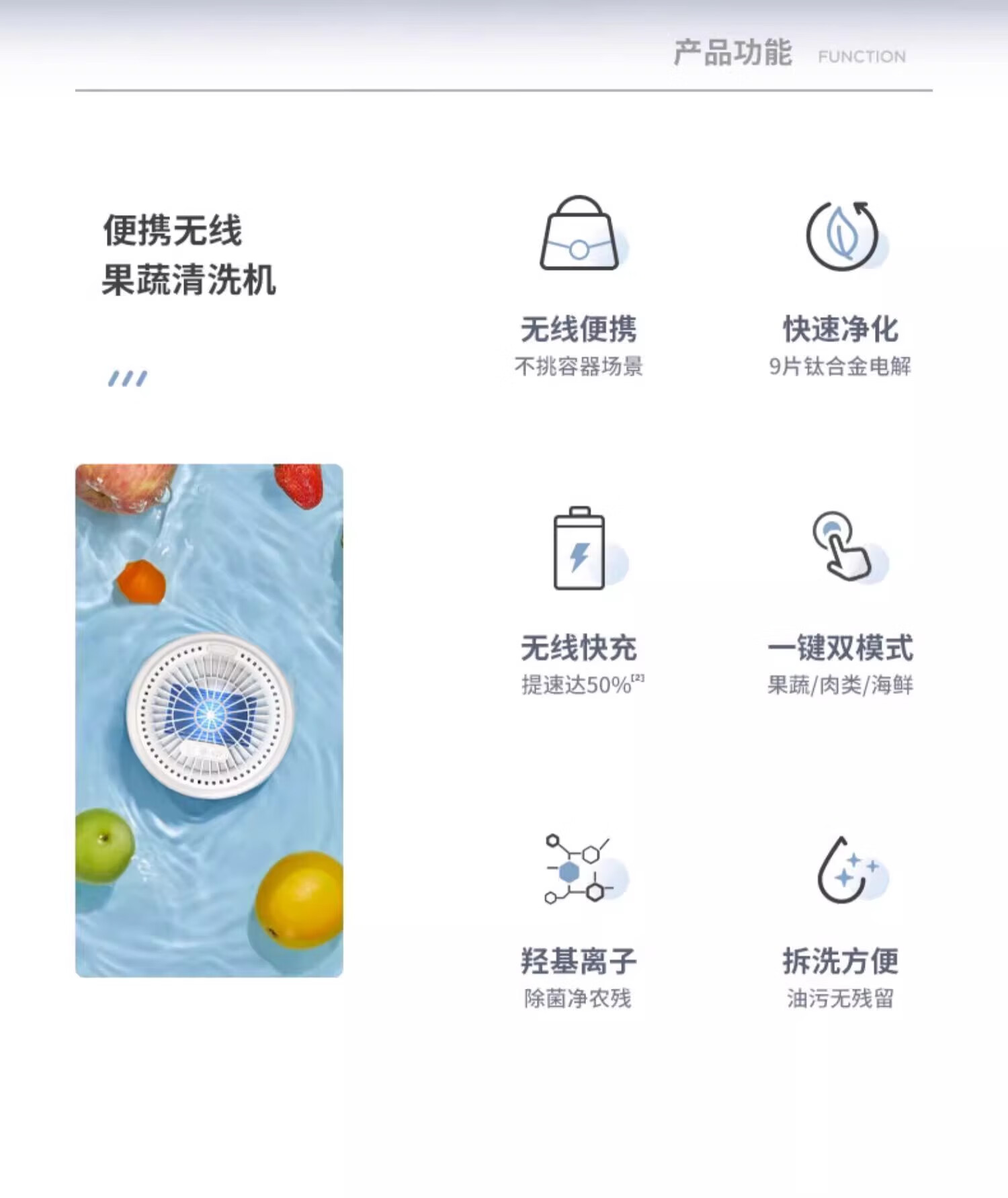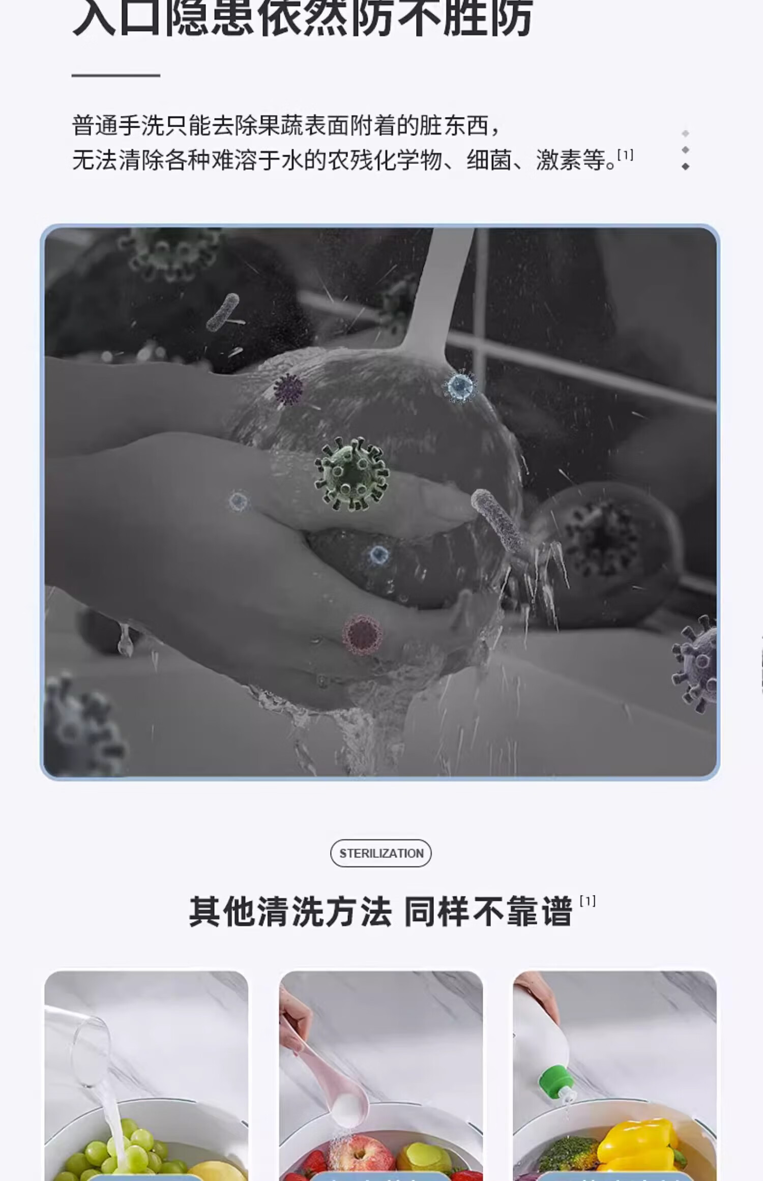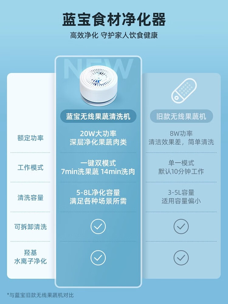 蓝宝蓝宝无线果蔬清洗机净化器洗菜机家用蔬菜消毒清洗去农药洗水果肉 BP-XD07