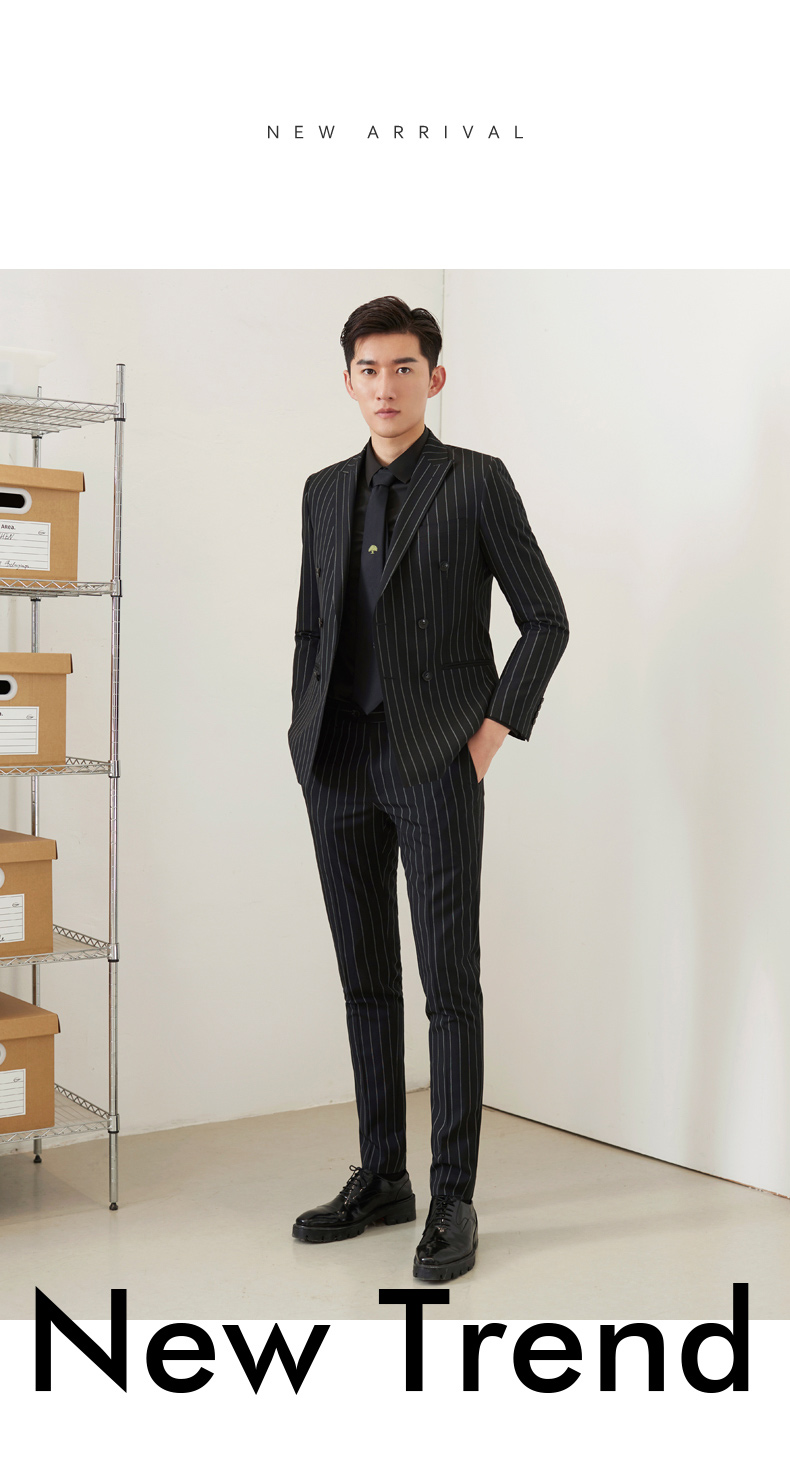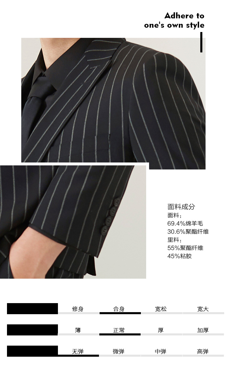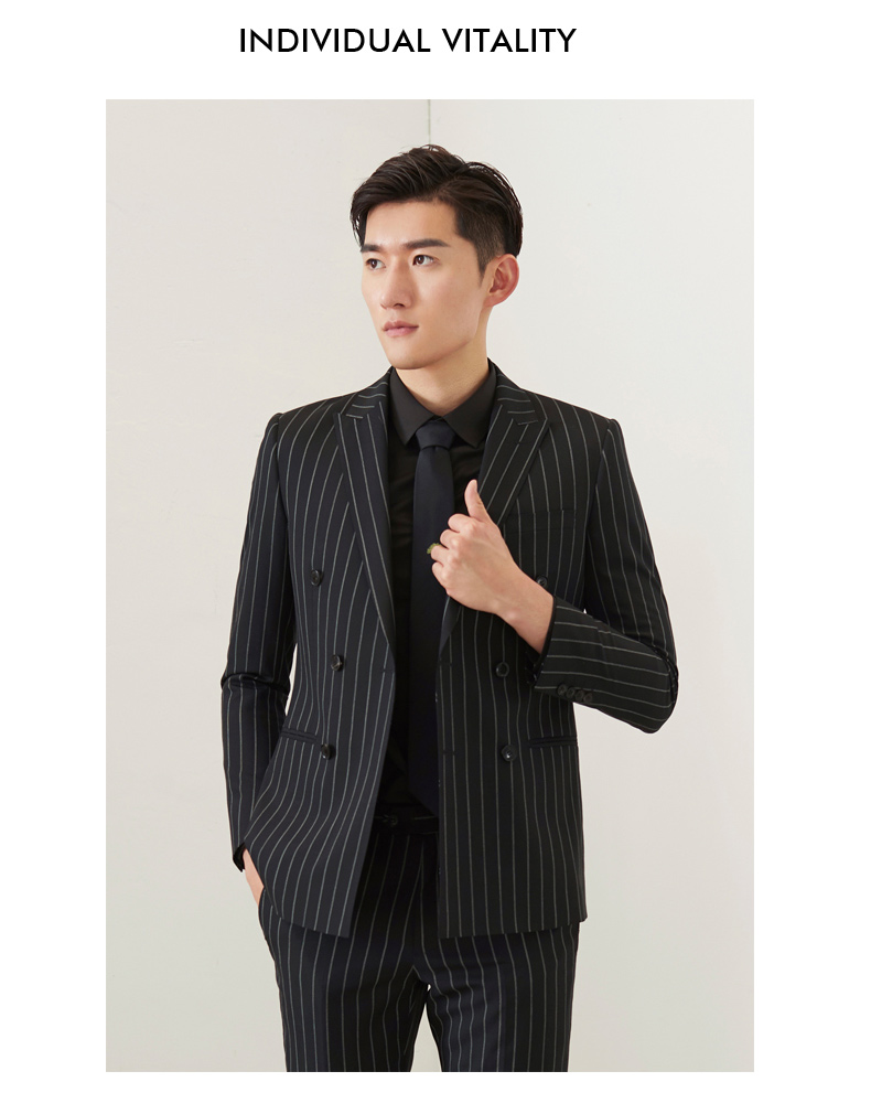 贝纳川竖条纹羊毛男士通勤西服100025034402