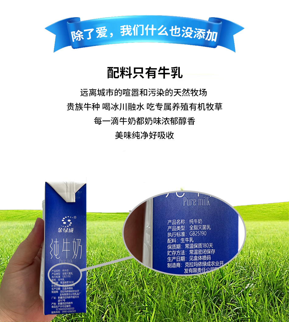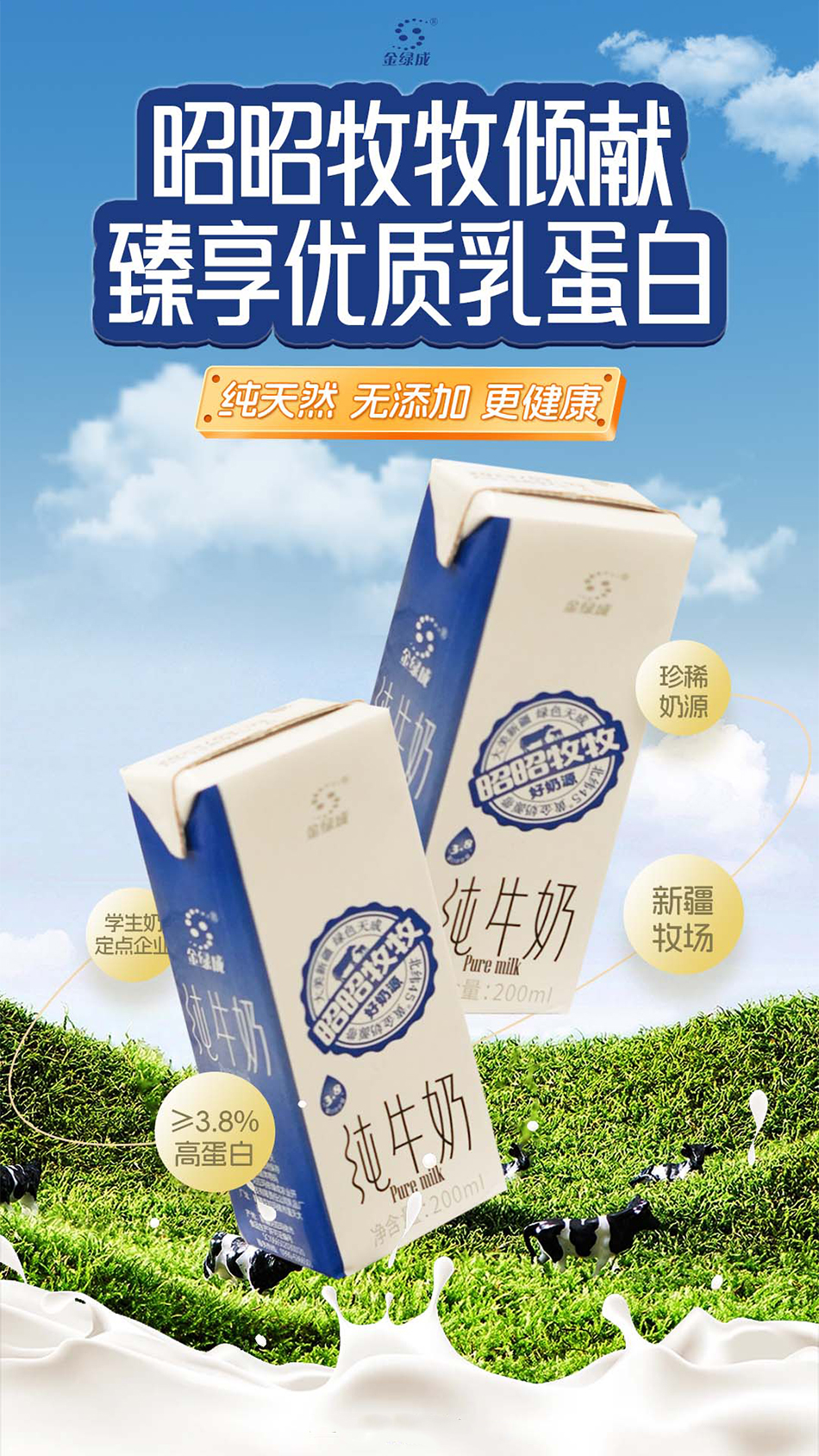产品名称:昭昭牧牧3.8蛋白新疆纯牛奶 金绿成无忧牧场3.6蛋白纯牛奶