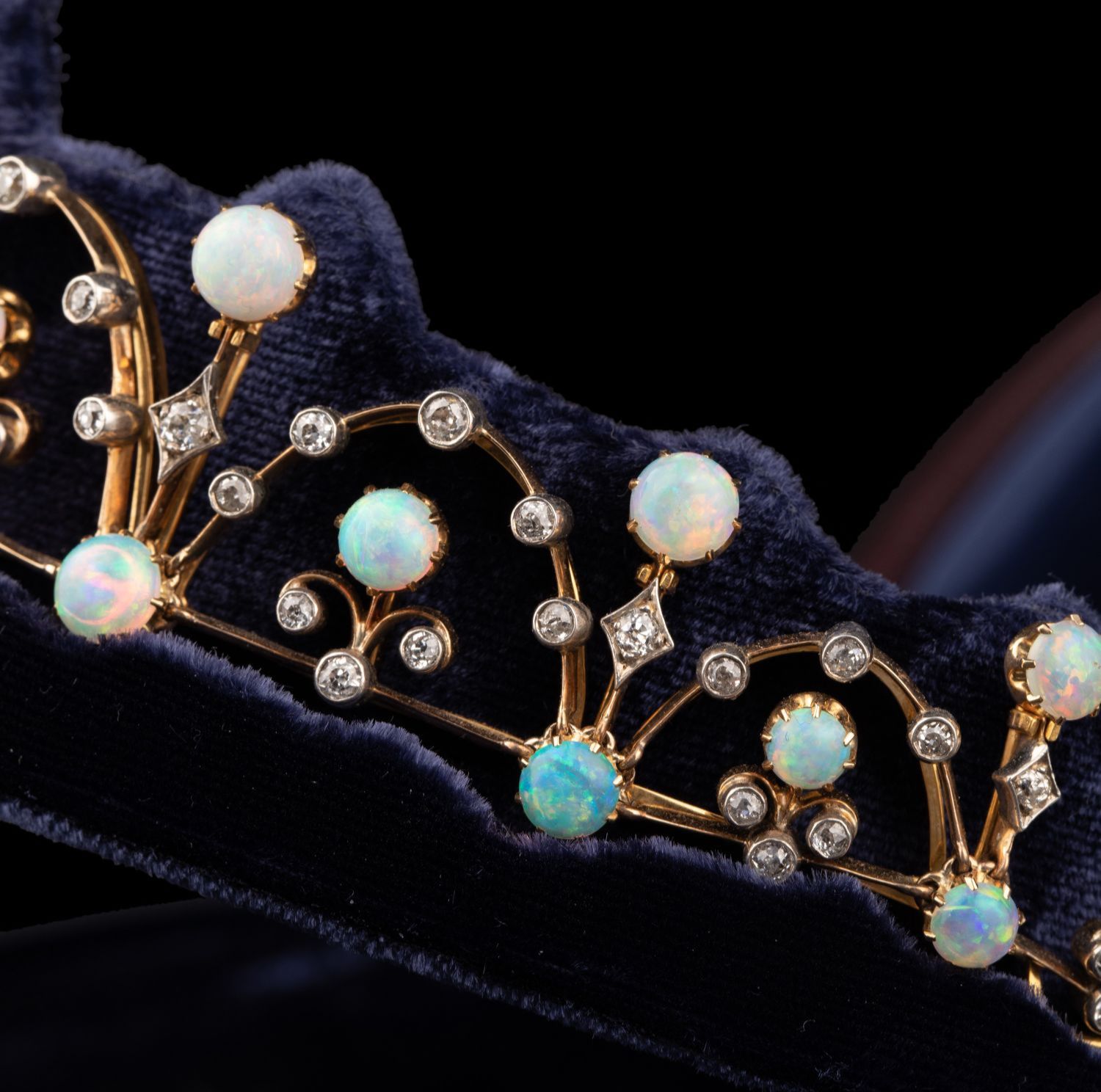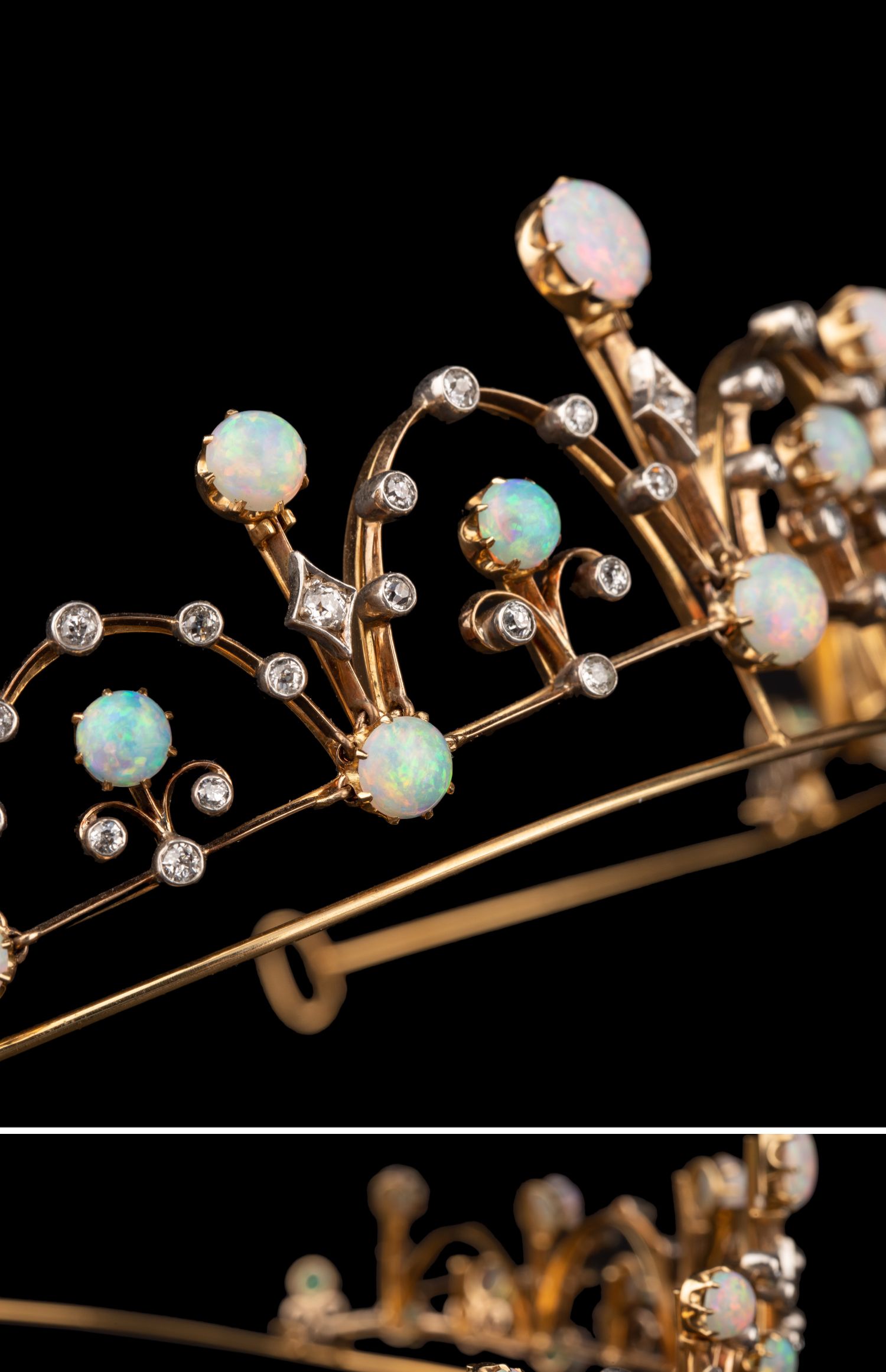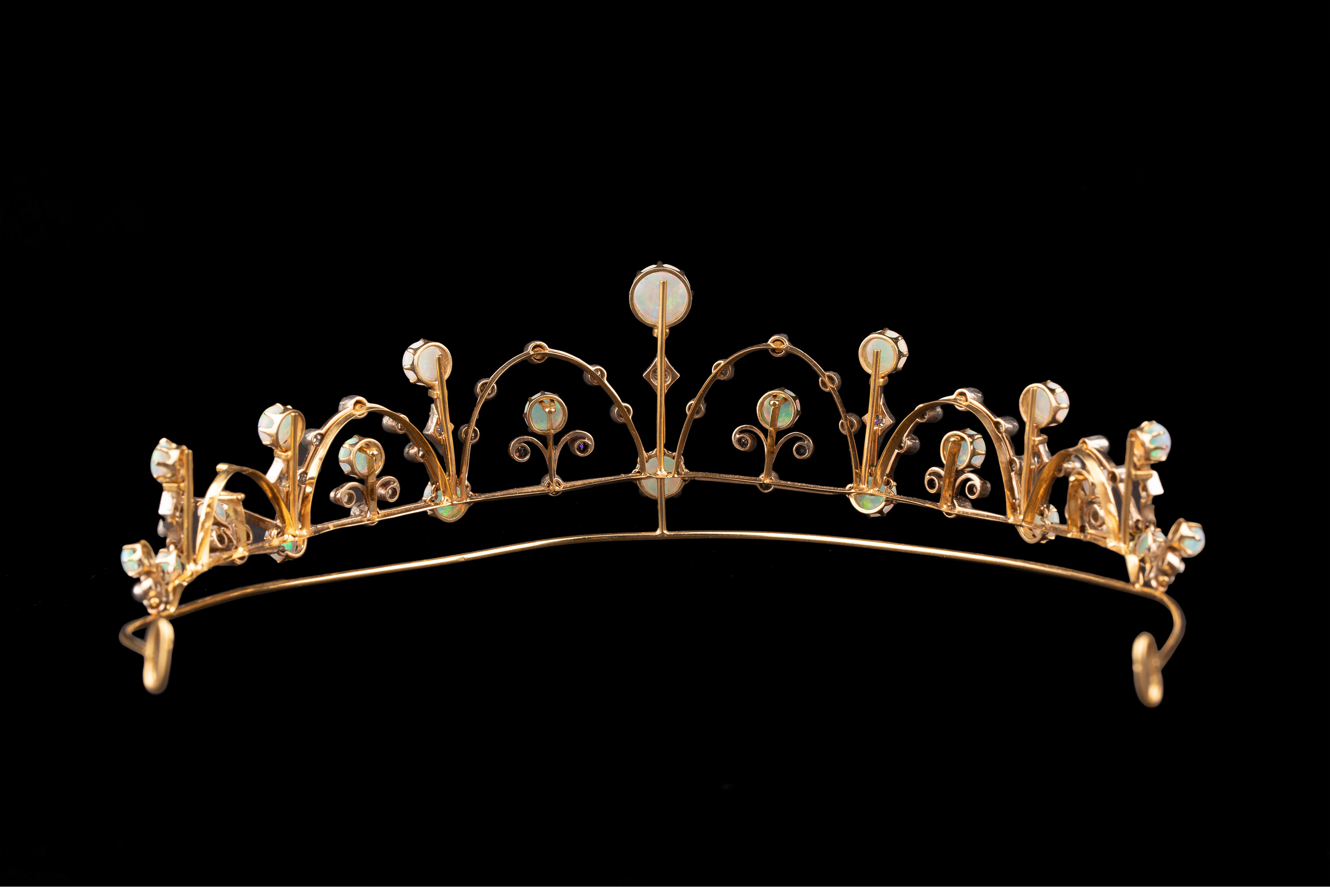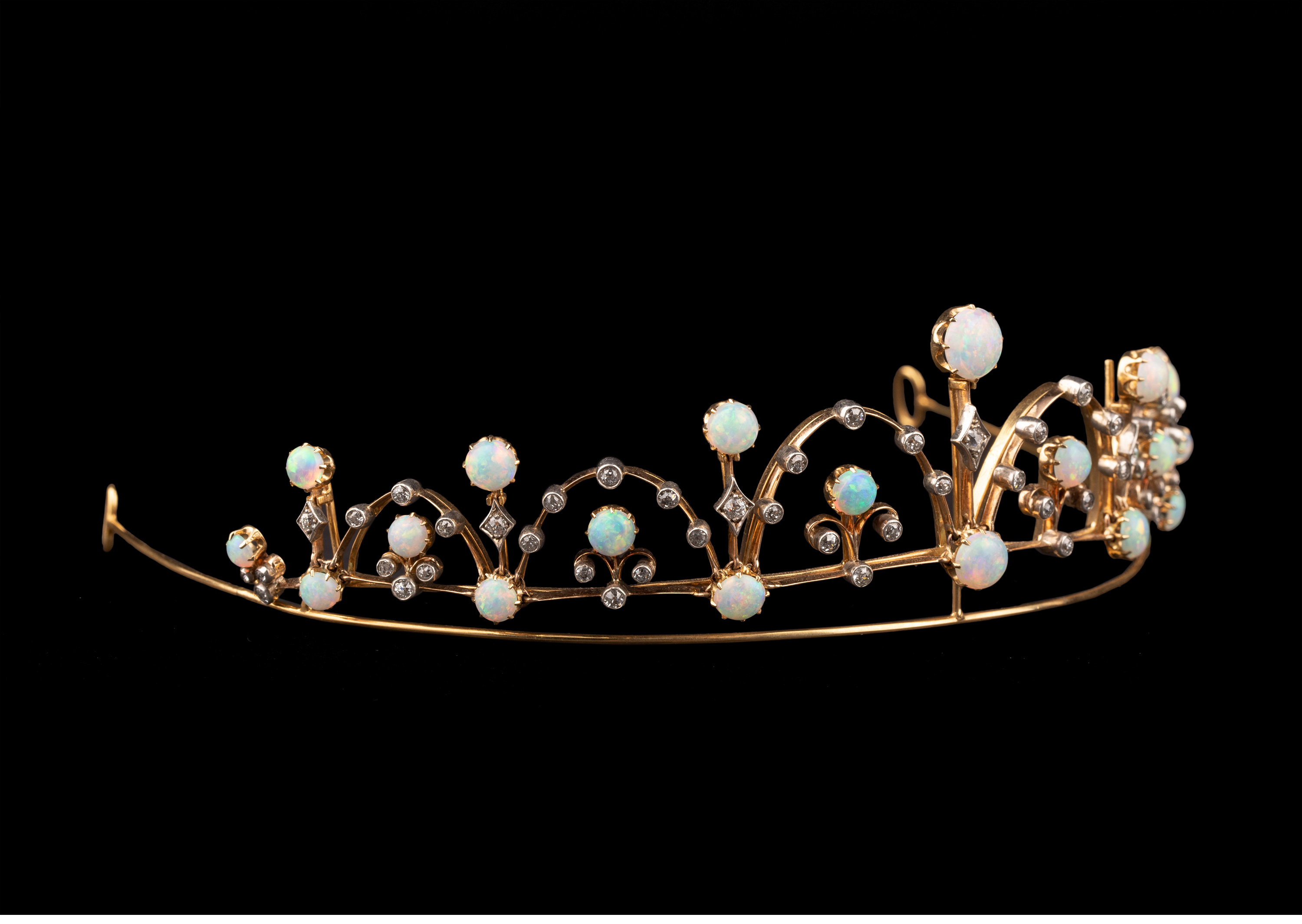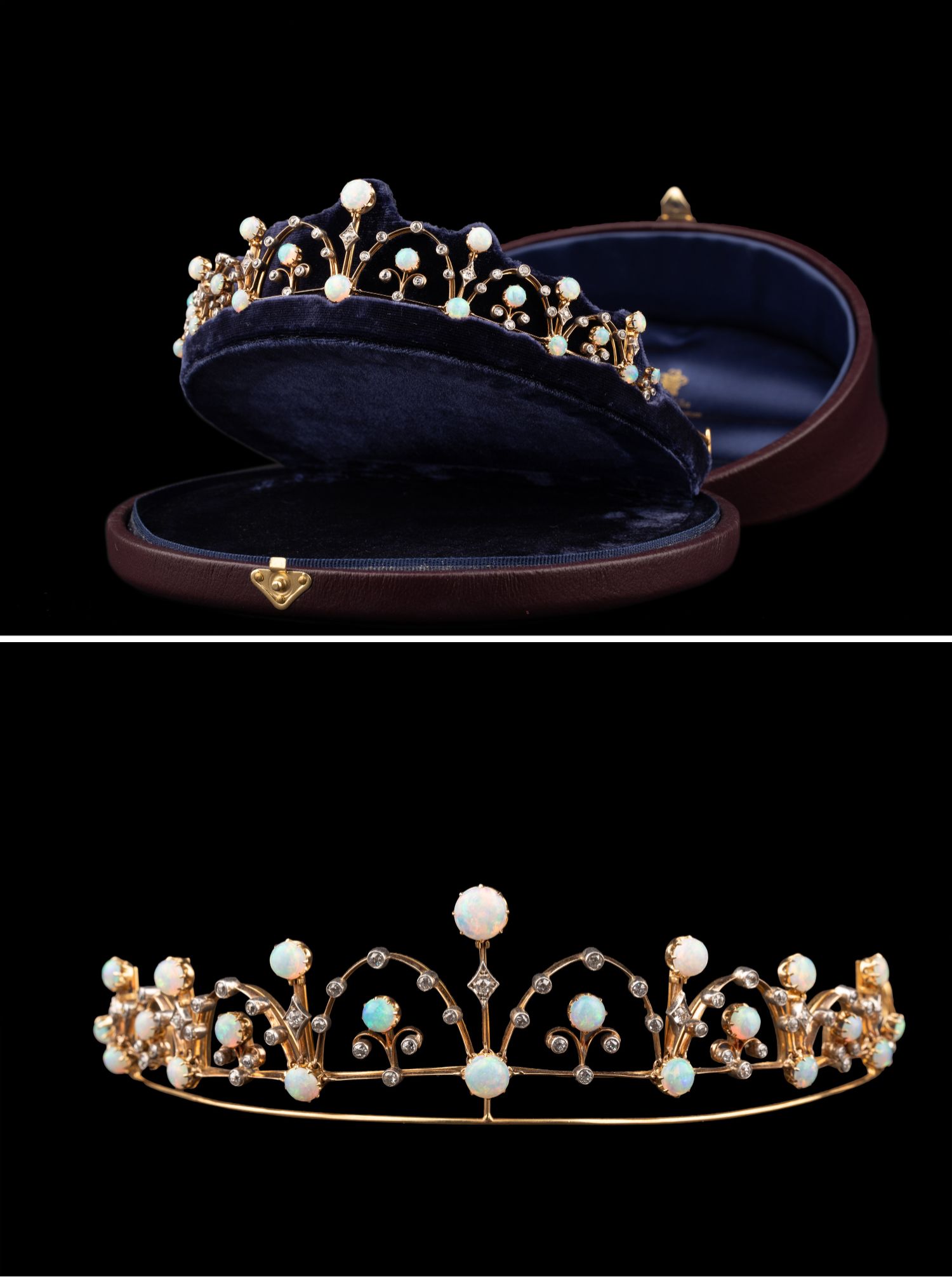 独角鹿西洋古董维多利亚时期15K黄金纯银镶嵌欧泊钻石冠冕项链