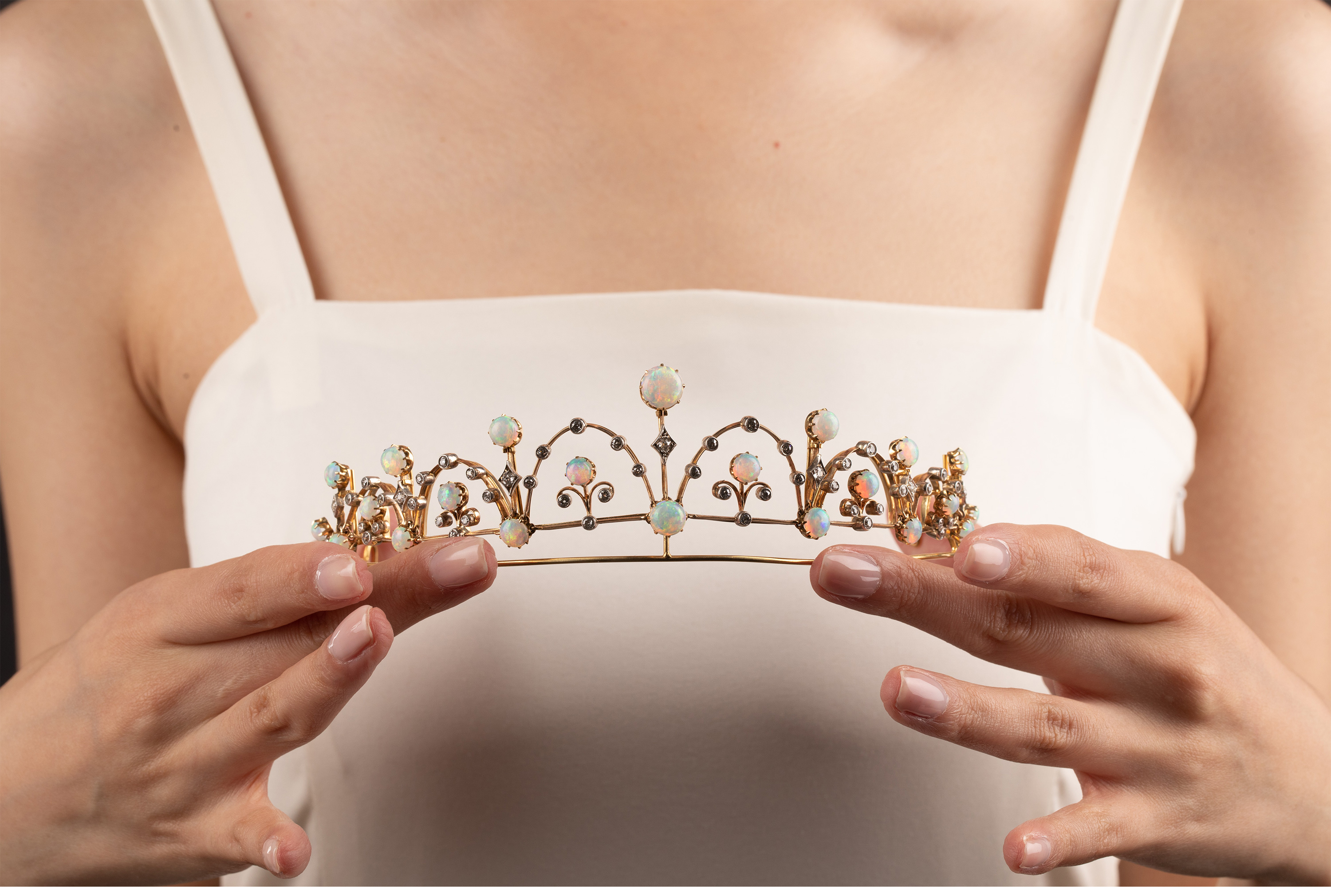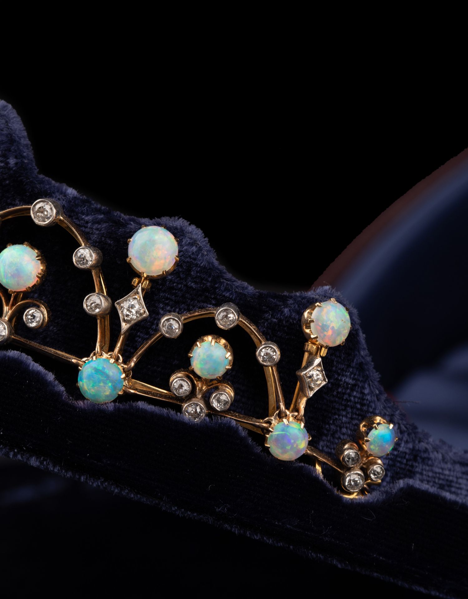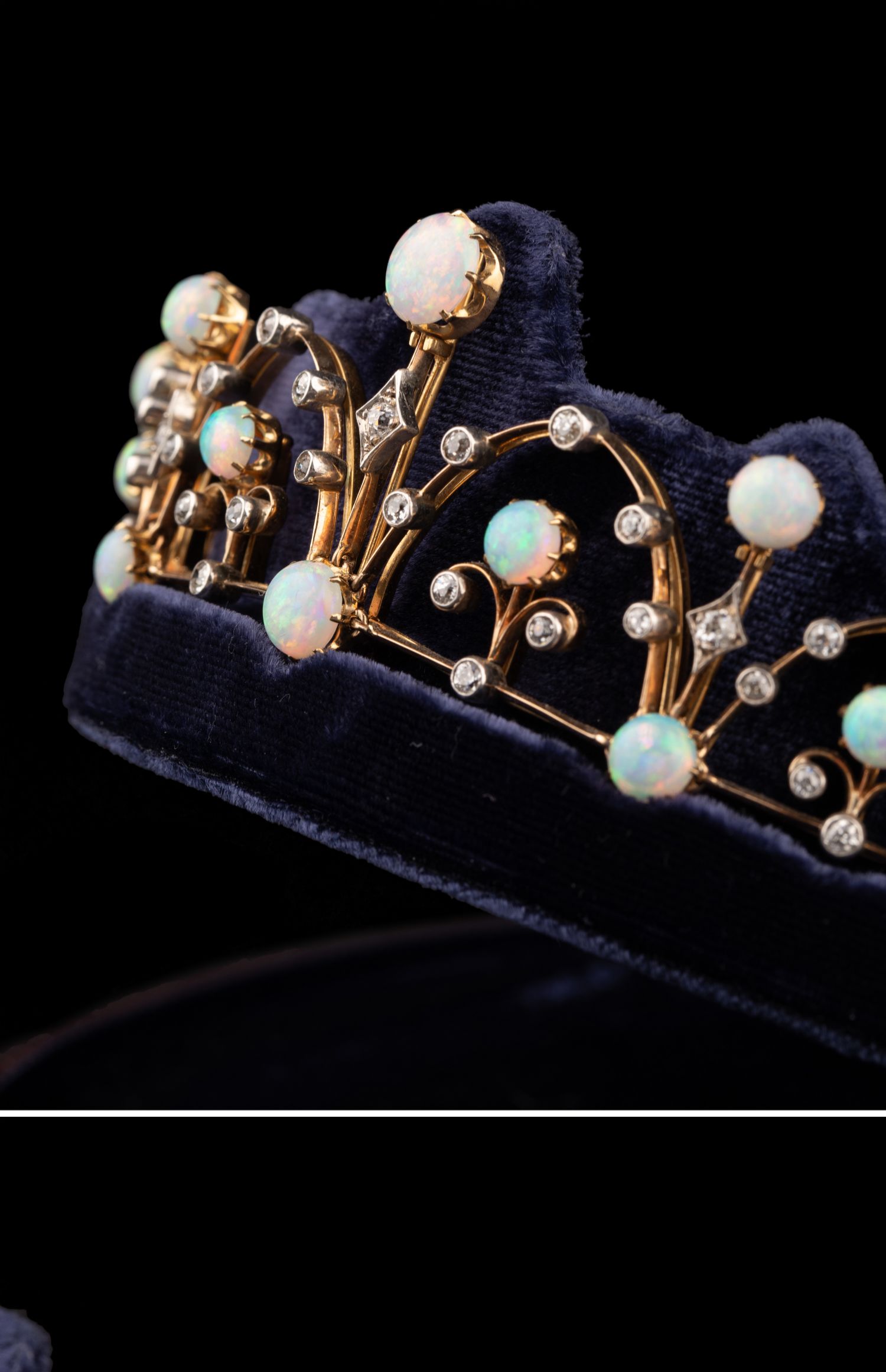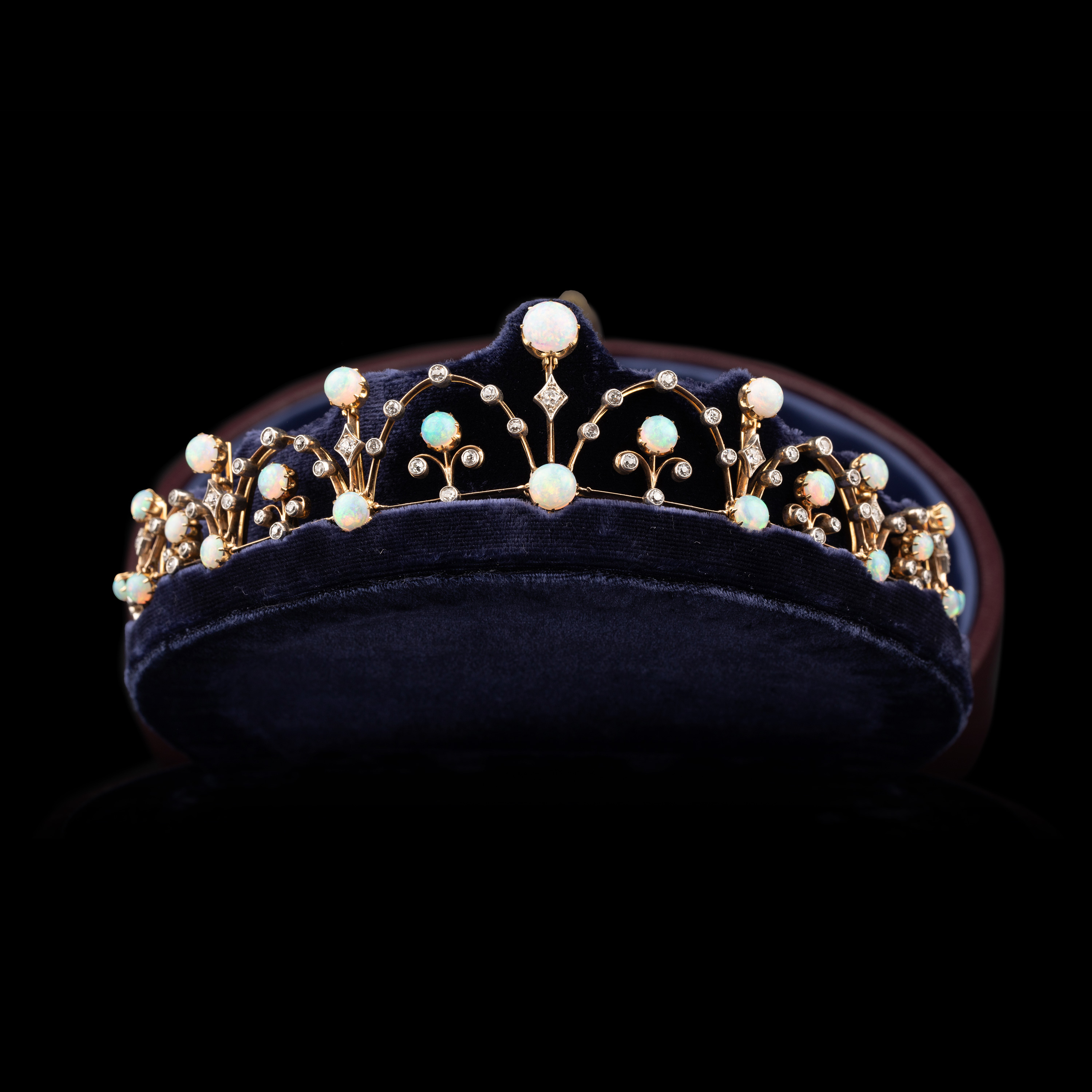 独角鹿西洋古董维多利亚时期15K黄金纯银镶嵌欧泊钻石冠冕项链