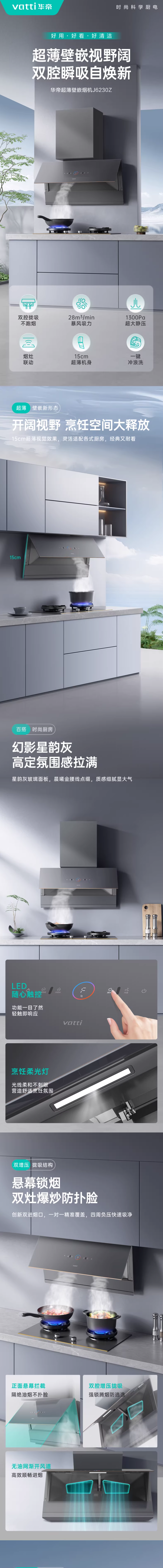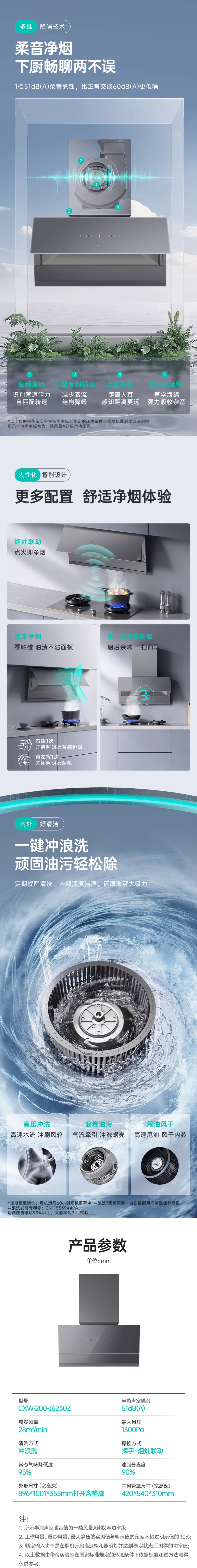 华帝(510864)家用油烟机CXW-200-J6230Z畅排1300Pa大吸力28m³/min智能联动