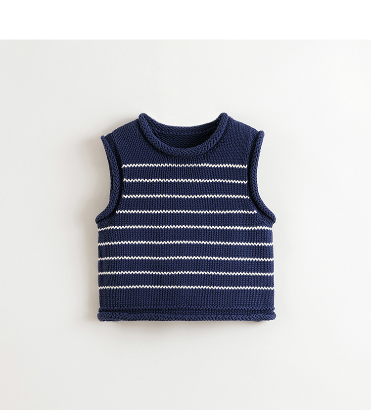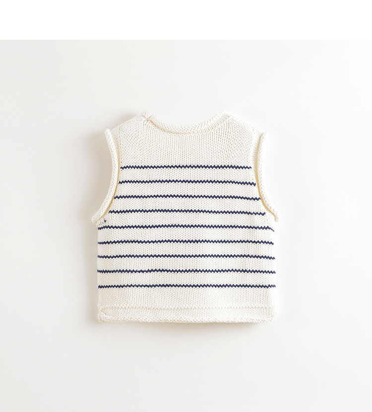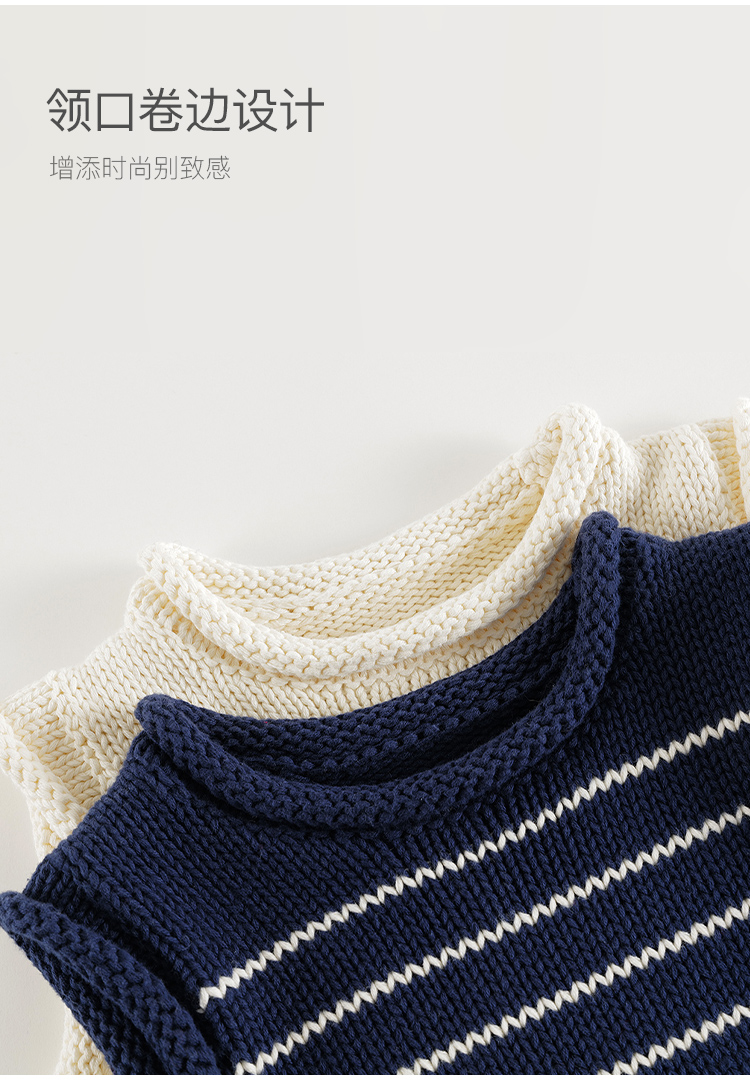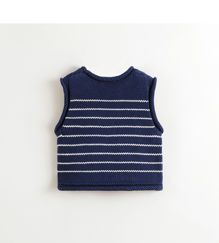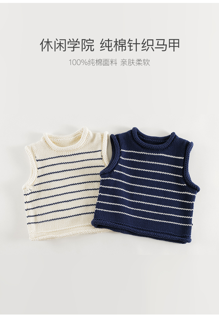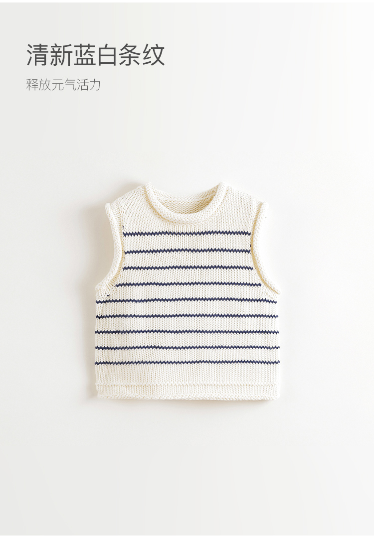 马克珍妮女童学院风蓝白条纹针织背心儿童毛衣马甲秋装新款541881