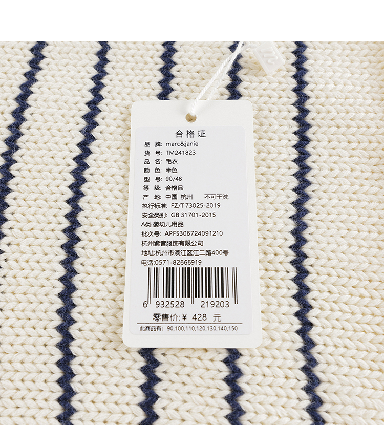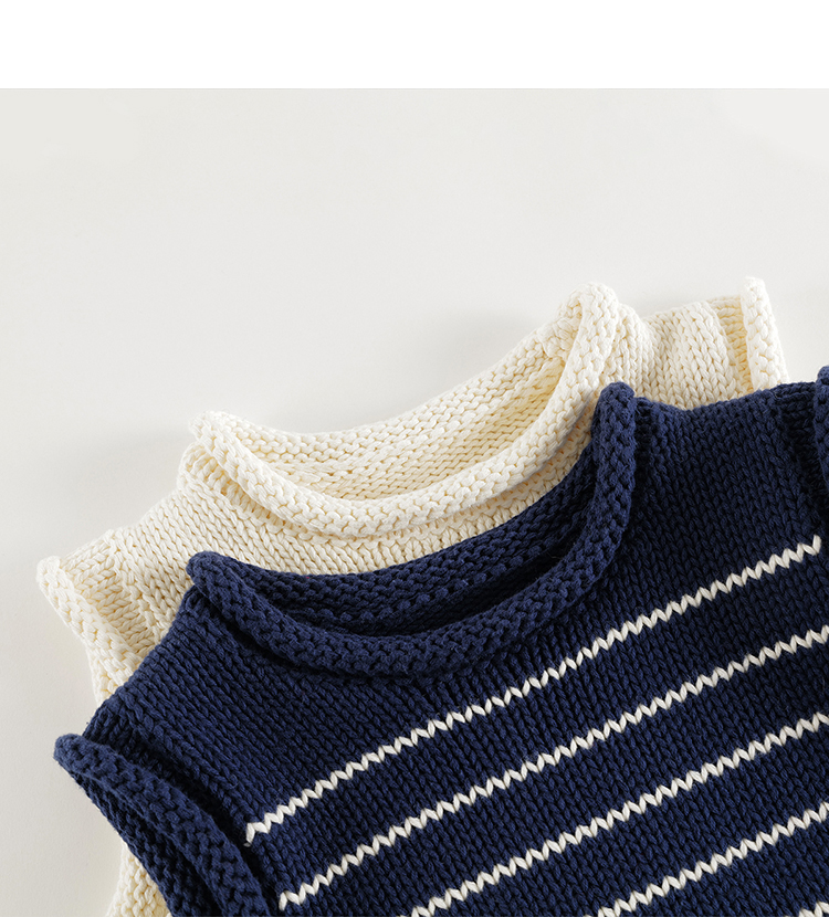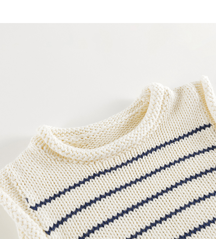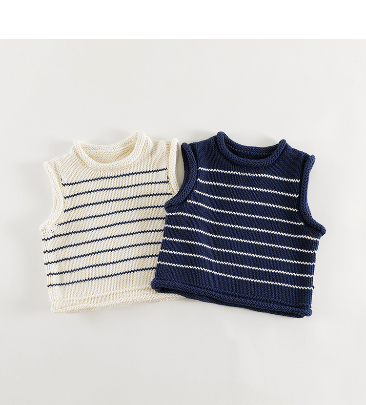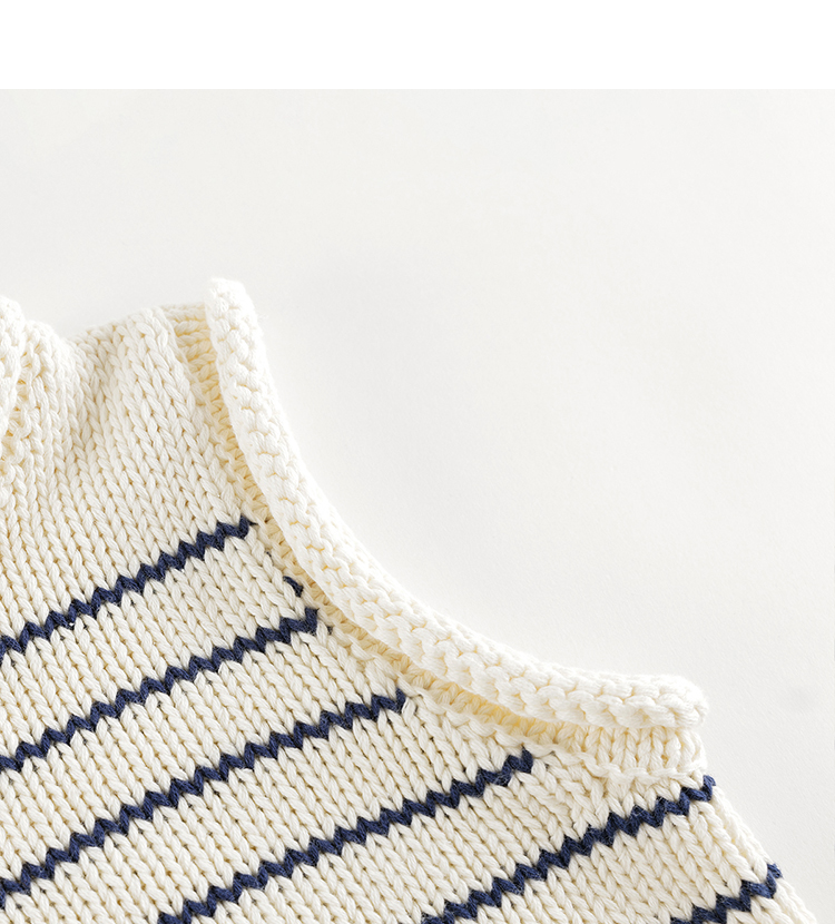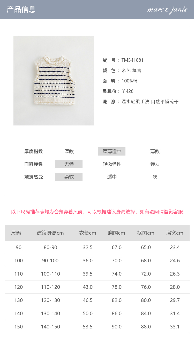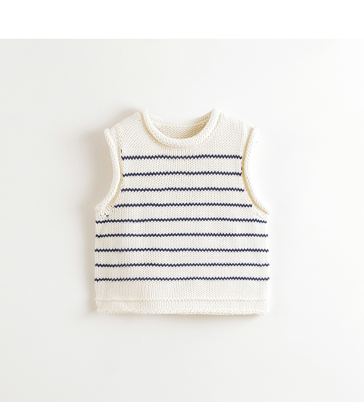 马克珍妮女童学院风蓝白条纹针织背心儿童毛衣马甲秋装新款541881