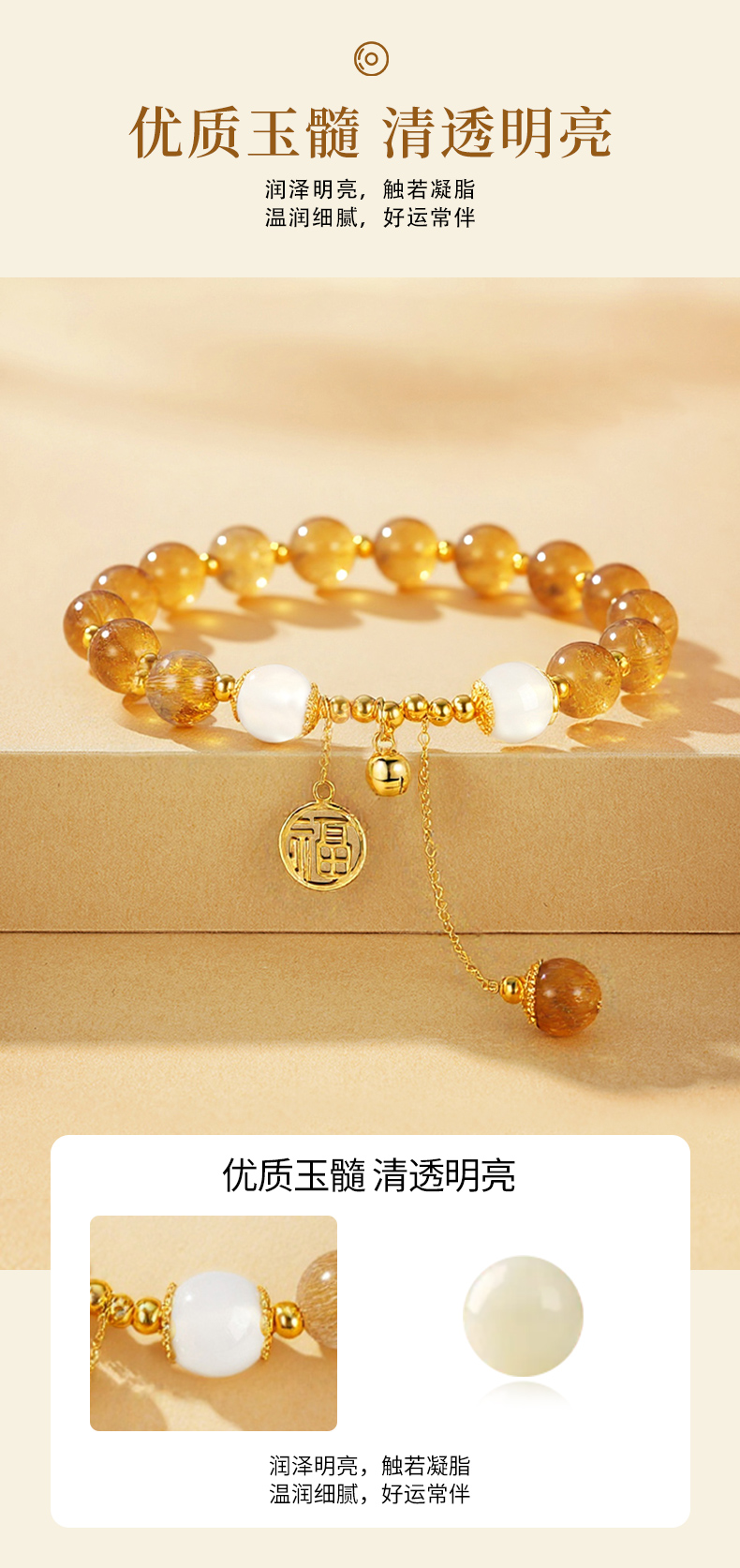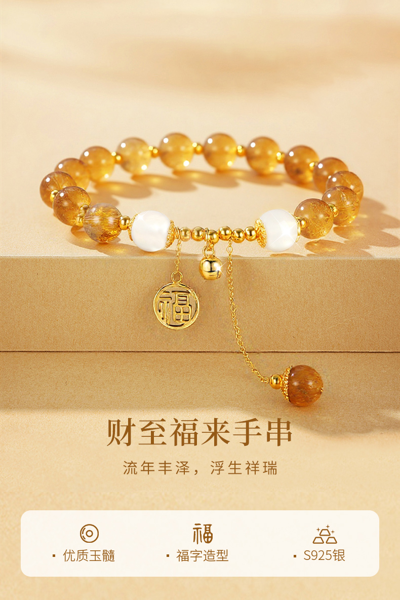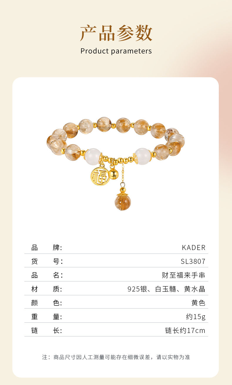 卡蒂罗/KADER 【招财进宝】财至福来水晶手串 时来运转好运黄水晶财源滚滚转运事业 财富之石时尚百搭
