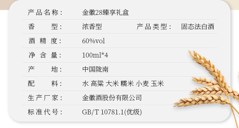 【金徽28小酒礼盒】金徽酒 60度金徽28小酒礼盒 浓香型白酒