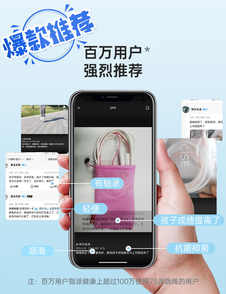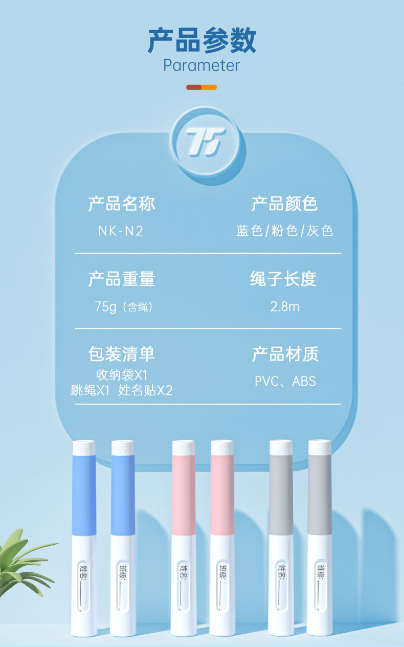 75派跳绳儿童小学专用两节绳竞速绳幼儿园中考初学可调节绳子N2
