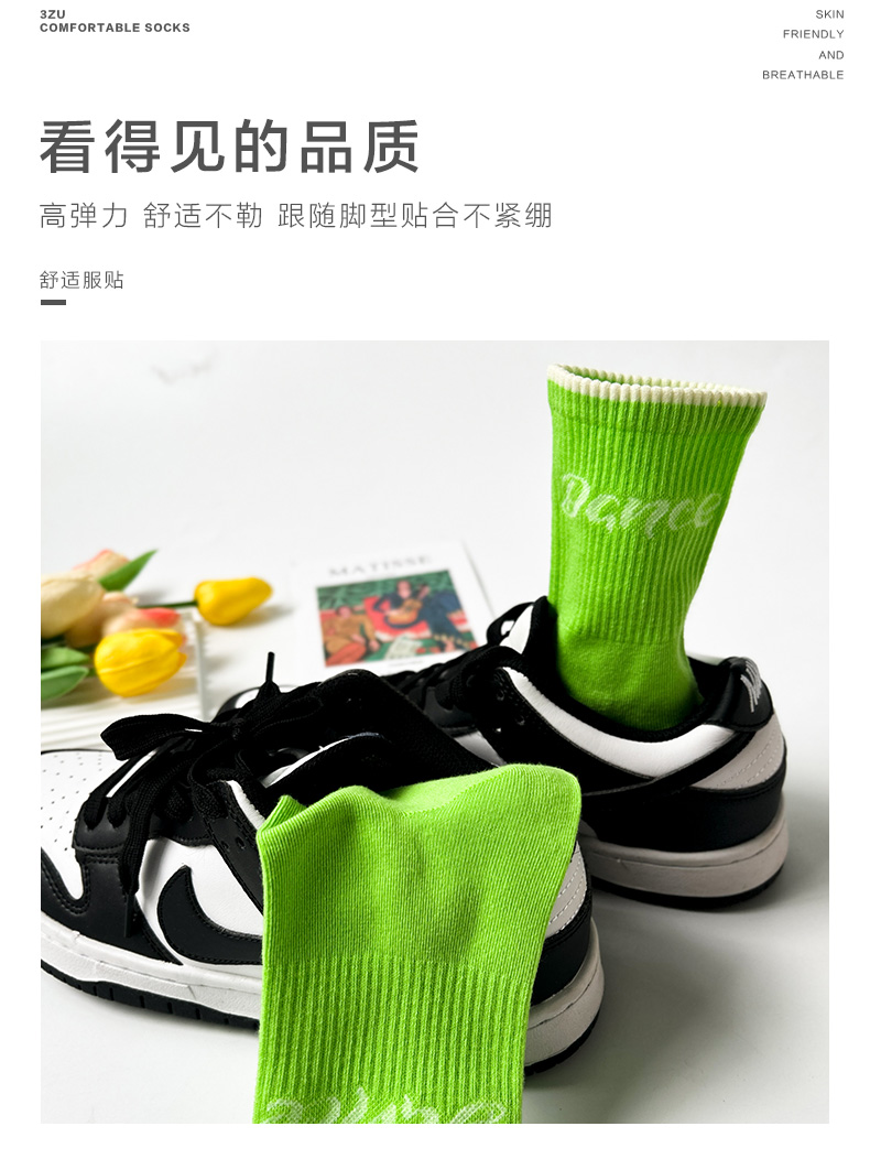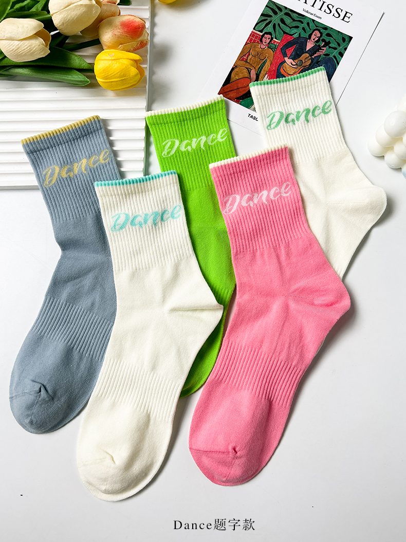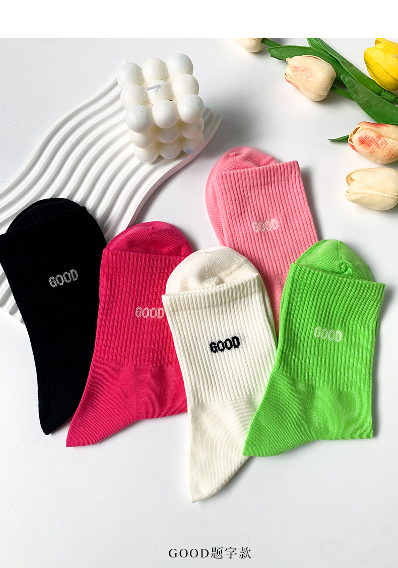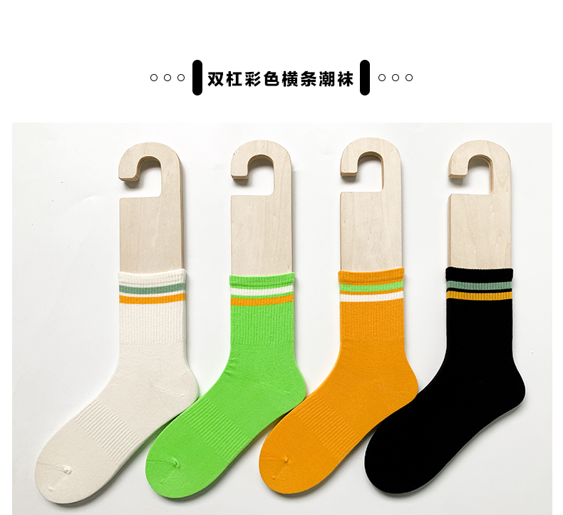 24春夏新品女士中筒棉质学院风街头运动横杠字母中邦女袜